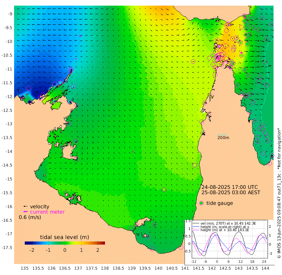 24cm/s -78T +3cm/s rms + 7cm/s -42T. ARA-GOC87 57m 22cm/s 168T +3cm/s rms + 2cm/s -2T. ARA-GOC87 60m 32cm/s -85T +2cm/s rms + 3cm/s 61T. ARA-GOC87 47m 21cm Daru 7cm Bobo Island -35cm Meer Island Barge -39cm Bramble Cay -16cm Unnamed Cay -10cm Pearce Cay -17cm Stephens Island -27cm Merrie England Shoals 6cm Mutacomal Reef -14cm Darnley Island Barge -40cm East Cay 6cm Yorke Island Barge 4cm Rennel Island 10cm Aureed Island 32cm Dungeness Reef 76cm Zagai Island 81cm Yam Island 118cm Dauan Island 114cm Saibai Island 102cm Phipi Reef 91cm Warrior Reef - West 88cm Mabuiag Island Barge 8cm Half Way Island 26cm Coconut Island 24cm Dugong Islet 51cm Poll Island 55cm Kirkcaldie Reef 72cm Suarji Island 61cm Sue Islet 58cm Hawkesbury Island 70cm Alert Patches 71cm Twin Island 57cm Badu Island 89cm St Pauls (Moa Island) 65cm Kubin (Moa Island) 76cm Ince Point 72cm Thursday Island 74cm Nardana Patches 61cm Turtle Head 55cm Round Island 42cm Goods Island 43cm Booby Island 28cm White Rocks Area 55cm Carpentaria 73cm Papou Point 34cm Bampfield Head 46cm Crab Island 48cm Red Wallis Island 57cm Packe Island 25cm Harrington Reef 71cm Herald Camp 39cm Sharp Point 60cm Red Island Point 63cm Possession Island 59cm Alpha Rock 52cm Frederick Point 12cm Wyborn Reef Light 24cm Tetley Island -18cm Triangle Reef 10cm Turtle Head Island -25cm Maclennan Cay -44cm Raine Island -10cm Mcsweeny Reef -18cm Collette Reef -30cm Shadwell Reef -28cm Hannibal Island -44cm Round Point 50cm Vrilya Point -36cm Cape Grenville -34cm Hicks Island -30cm Sir Charles Hardy Island -8cm Harvey Island -51cm Kay Reef -44cm Rocky Island -52cm Chapman Island -42cm Ham Reef -41cm Jubilee Reef -35cm Night Island -45cm Unnamed Reef No. 3 -49cm Morris Island -44cm 1st 3 Mile Opening -41cm Creech Reef -43cm Fife Island -65cm Eden Reef -51cm Stanley Island -60cm Normanby River -197cm Yabooma Island -219cm Hutchison River -195cm Elcho Island -182cm North West Crocodile Island -124cm Cape Wessel -183cm Stevens Island -98cm Guluwuru Island -171cm Hopeful Bay -143cm Auster Point -130cm Two Island Bay -165cm Cadell Strait -81cm Mallison Island -101cm Melville Bay (Gove Harbour) -103cm Truant Island -62cm Cape Arnhem -49cm Cape Grey -39cm Hawk Island -35cm Milner Bay (Groote Eylandt) -21cm Cape Beatrice 8cm West Island 9cm Centre Island 13cm Mornington Island 7cm West Wellesley Islands -17cm Bountiful Island -38cm Albert River Mouth -56cm Sweers Island -17cm Karumba 24cm Nassau River Offshore 39cm Christmas Creek 27cm Archer River 41cm Boyd Point 29cm Weipa (Humbug Point) 36cm Pennefather River 52cm Cullen Point