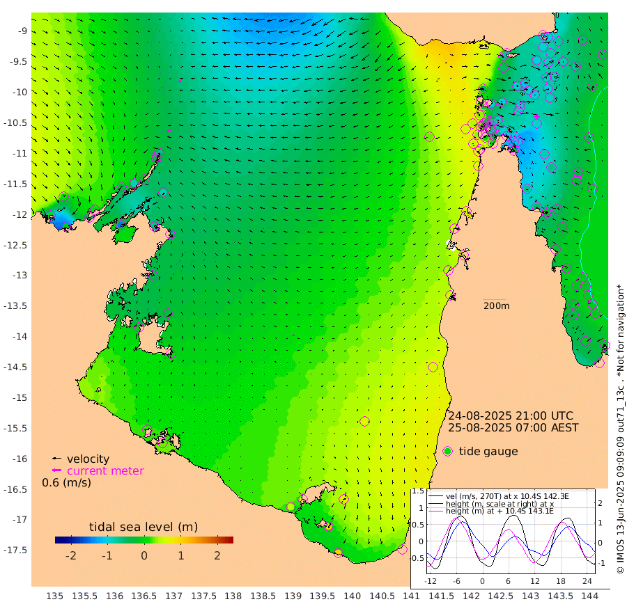 21cm/s -97T +3cm/s rms + 7cm/s -42T. ARA-GOC87 57m 11cm/s -78T +3cm/s rms + 2cm/s -2T. ARA-GOC87 60m 19cm/s -107T +2cm/s rms + 3cm/s 61T. ARA-GOC87 47m -98cm Daru -102cm Bobo Island -34cm Meer Island Barge -51cm Bramble Cay -78cm Unnamed Cay -88cm Pearce Cay -75cm Stephens Island -69cm Merrie England Shoals -92cm Mutacomal Reef -70cm Darnley Island Barge -34cm East Cay -87cm Yorke Island Barge -85cm Rennel Island -98cm Aureed Island -91cm Dungeness Reef -106cm Zagai Island -94cm Yam Island -69cm Dauan Island -73cm Saibai Island -52cm Phipi Reef -102cm Warrior Reef - West -49cm Mabuiag Island Barge -84cm Half Way Island -101cm Coconut Island -95cm Dugong Islet -100cm Poll Island -86cm Kirkcaldie Reef -103cm Suarji Island -97cm Sue Islet 34cm Hawkesbury Island -75cm Alert Patches -87cm Twin Island 17cm Badu Island -93cm St Pauls (Moa Island) -11cm Kubin (Moa Island) -56cm Ince Point -37cm Thursday Island -42cm Nardana Patches -7cm Turtle Head 7cm Round Island 35cm Goods Island 58cm Booby Island 45cm White Rocks Area 29cm Carpentaria -76cm Papou Point 30cm Bampfield Head 63cm Crab Island 47cm Red Wallis Island 11cm Packe Island -109cm Harrington Reef 36cm Herald Camp -27cm Sharp Point 9cm Red Island Point -46cm Possession Island -91cm Alpha Rock -98cm Frederick Point -107cm Wyborn Reef Light -109cm Tetley Island -41cm Triangle Reef -102cm Turtle Head Island -35cm Maclennan Cay -6cm Raine Island -79cm Mcsweeny Reef -63cm Collette Reef -29cm Shadwell Reef -66cm Hannibal Island -51cm Round Point 66cm Vrilya Point -41cm Cape Grenville -38cm Hicks Island -40cm Sir Charles Hardy Island -14cm Harvey Island -24cm Kay Reef -17cm Rocky Island -9cm Chapman Island -10cm Ham Reef -16cm Jubilee Reef -19cm Night Island -10cm Unnamed Reef No. 3 -17cm Morris Island -12cm 1st 3 Mile Opening -15cm Creech Reef -26cm Fife Island -10cm Eden Reef -11cm Stanley Island -19cm Normanby River 5cm Yabooma Island -13cm Hutchison River 0cm Elcho Island 9cm North West Crocodile Island -66cm Cape Wessel -28cm Stevens Island -89cm Guluwuru Island -11cm Hopeful Bay -42cm Auster Point -45cm Two Island Bay -46cm Cadell Strait -145cm Mallison Island -73cm Melville Bay (Gove Harbour) -85cm Truant Island -63cm Cape Arnhem -38cm Cape Grey -23cm Hawk Island -4cm Milner Bay (Groote Eylandt) 8cm Cape Beatrice 20cm West Island 28cm Centre Island 55cm Mornington Island 51cm West Wellesley Islands 70cm Bountiful Island 101cm Albert River Mouth 91cm Sweers Island 110cm Karumba 69cm Nassau River Offshore 62cm Christmas Creek 67cm Archer River 42cm Boyd Point 62cm Weipa (Humbug Point) 59cm Pennefather River 55cm Cullen Point