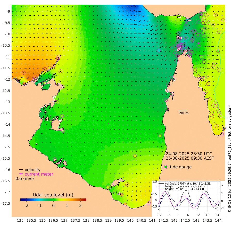 16cm/s 101T +3cm/s rms + 7cm/s -42T. ARA-GOC87 57m 16cm/s -51T +3cm/s rms + 2cm/s -2T. ARA-GOC87 60m 22cm/s 85T +2cm/s rms + 3cm/s 61T. ARA-GOC87 47m 15cm Daru 25cm Bobo Island 40cm Meer Island Barge 53cm Bramble Cay 34cm Unnamed Cay 40cm Pearce Cay 37cm Stephens Island 47cm Merrie England Shoals 23cm Mutacomal Reef 30cm Darnley Island Barge 51cm East Cay 16cm Yorke Island Barge 24cm Rennel Island 17cm Aureed Island 4cm Dungeness Reef -39cm Zagai Island -41cm Yam Island -66cm Dauan Island -72cm Saibai Island -31cm Phipi Reef -38cm Warrior Reef - West -64cm Mabuiag Island Barge 17cm Half Way Island 6cm Coconut Island 3cm Dugong Islet -18cm Poll Island -15cm Kirkcaldie Reef -41cm Suarji Island -31cm Sue Islet -47cm Hawkesbury Island -40cm Alert Patches -41cm Twin Island -39cm Badu Island -57cm St Pauls (Moa Island) -52cm Kubin (Moa Island) -51cm Ince Point -53cm Thursday Island -54cm Nardana Patches -41cm Turtle Head -49cm Round Island -38cm Goods Island -53cm Booby Island -38cm White Rocks Area -94cm Carpentaria -46cm Papou Point -66cm Bampfield Head -38cm Crab Island -51cm Red Wallis Island -42cm Packe Island 5cm Harrington Reef -67cm Herald Camp -23cm Sharp Point -28cm Red Island Point -43cm Possession Island -41cm Alpha Rock -21cm Frederick Point 10cm Wyborn Reef Light 0cm Tetley Island 27cm Triangle Reef 11cm Turtle Head Island 32cm Maclennan Cay 47cm Raine Island 29cm Mcsweeny Reef 36cm Collette Reef 39cm Shadwell Reef 45cm Hannibal Island 59cm Round Point -48cm Vrilya Point 45cm Cape Grenville 45cm Hicks Island 34cm Sir Charles Hardy Island 12cm Harvey Island 54cm Kay Reef 48cm Rocky Island 55cm Chapman Island 42cm Ham Reef 44cm Jubilee Reef 41cm Night Island 48cm Unnamed Reef No. 3 52cm Morris Island 41cm 1st 3 Mile Opening 44cm Creech Reef 53cm Fife Island 65cm Eden Reef 52cm Stanley Island 63cm Normanby River 140cm Yabooma Island 162cm Hutchison River 140cm Elcho Island 136cm North West Crocodile Island 66cm Cape Wessel 129cm Stevens Island 57cm Guluwuru Island 122cm Hopeful Bay 89cm Auster Point 76cm Two Island Bay 133cm Cadell Strait 54cm Mallison Island 64cm Melville Bay (Gove Harbour) 59cm Truant Island 36cm Cape Arnhem 34cm Cape Grey 36cm Hawk Island 27cm Milner Bay (Groote Eylandt) 28cm Cape Beatrice 3cm West Island 5cm Centre Island 59cm Mornington Island 57cm West Wellesley Islands 88cm Bountiful Island 127cm Albert River Mouth 134cm Sweers Island 124cm Karumba 58cm Nassau River Offshore 32cm Christmas Creek 14cm Archer River -23cm Boyd Point -7cm Weipa (Humbug Point) -17cm Pennefather River -50cm Cullen Point