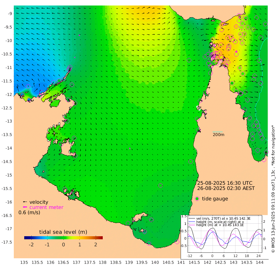 10cm/s -50T +3cm/s rms + 7cm/s -42T. ARA-GOC87 57m 21cm/s 166T +3cm/s rms + 2cm/s -2T. ARA-GOC87 60m 17cm/s -63T +2cm/s rms + 3cm/s 61T. ARA-GOC87 47m 59cm Daru 53cm Bobo Island -3cm Meer Island Barge 2cm Bramble Cay 26cm Unnamed Cay 36cm Pearce Cay 26cm Stephens Island 15cm Merrie England Shoals 46cm Mutacomal Reef 26cm Darnley Island Barge -3cm East Cay 45cm Yorke Island Barge 42cm Rennel Island 52cm Aureed Island 60cm Dungeness Reef 95cm Zagai Island 94cm Yam Island 109cm Dauan Island 109cm Saibai Island 90cm Phipi Reef 108cm Warrior Reef - West 71cm Mabuiag Island Barge 43cm Half Way Island 60cm Coconut Island 57cm Dugong Islet 75cm Poll Island 71cm Kirkcaldie Reef 82cm Suarji Island 80cm Sue Islet 16cm Hawkesbury Island 68cm Alert Patches 77cm Twin Island 18cm Badu Island 90cm St Pauls (Moa Island) 40cm Kubin (Moa Island) 65cm Ince Point 52cm Thursday Island 57cm Nardana Patches 33cm Turtle Head 25cm Round Island 0cm Goods Island -12cm Booby Island -18cm White Rocks Area 6cm Carpentaria 75cm Papou Point -8cm Bampfield Head -7cm Crab Island 1cm Red Wallis Island 27cm Packe Island 62cm Harrington Reef 27cm Herald Camp 36cm Sharp Point 30cm Red Island Point 53cm Possession Island 73cm Alpha Rock 73cm Frederick Point 54cm Wyborn Reef Light 62cm Tetley Island 12cm Triangle Reef 46cm Turtle Head Island 4cm Maclennan Cay -21cm Raine Island 30cm Mcsweeny Reef 19cm Collette Reef -2cm Shadwell Reef 14cm Hannibal Island 0cm Round Point -7cm Vrilya Point -1cm Cape Grenville 0cm Hicks Island 6cm Sir Charles Hardy Island 3cm Harvey Island -17cm Kay Reef -15cm Rocky Island -22cm Chapman Island -15cm Ham Reef -14cm Jubilee Reef -8cm Night Island -17cm Unnamed Reef No. 3 -19cm Morris Island -22cm 1st 3 Mile Opening -15cm Creech Reef -8cm Fife Island -30cm Eden Reef -22cm Stanley Island -22cm Normanby River -137cm Yabooma Island -144cm Hutchison River -134cm Elcho Island -127cm North West Crocodile Island -53cm Cape Wessel -111cm Stevens Island -23cm Guluwuru Island -108cm Hopeful Bay -80cm Auster Point -65cm Two Island Bay -83cm Cadell Strait 43cm Mallison Island -34cm Melville Bay (Gove Harbour) -31cm Truant Island -13cm Cape Arnhem -21cm Cape Grey -15cm Hawk Island -29cm Milner Bay (Groote Eylandt) -21cm Cape Beatrice -11cm West Island -14cm Centre Island -5cm Mornington Island -11cm West Wellesley Islands -36cm Bountiful Island -59cm Albert River Mouth -72cm Sweers Island -44cm Karumba 0cm Nassau River Offshore 13cm Christmas Creek -6cm Archer River 9cm Boyd Point -7cm Weipa (Humbug Point) -7cm Pennefather River 7cm Cullen Point