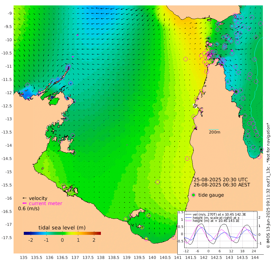28cm/s -91T +3cm/s rms + 7cm/s -42T. ARA-GOC87 57m 5cm/s -82T +3cm/s rms + 2cm/s -2T. ARA-GOC87 60m 27cm/s -101T +2cm/s rms + 3cm/s 61T. ARA-GOC87 47m -97cm Daru -105cm Bobo Island -50cm Meer Island Barge -70cm Bramble Cay -87cm Unnamed Cay -97cm Pearce Cay -84cm Stephens Island -82cm Merrie England Shoals -95cm Mutacomal Reef -78cm Darnley Island Barge -54cm East Cay -88cm Yorke Island Barge -88cm Rennel Island -99cm Aureed Island -85cm Dungeness Reef -89cm Zagai Island -73cm Yam Island -50cm Dauan Island -53cm Saibai Island -42cm Phipi Reef -86cm Warrior Reef - West -27cm Mabuiag Island Barge -81cm Half Way Island -97cm Coconut Island -86cm Dugong Islet -86cm Poll Island -70cm Kirkcaldie Reef -84cm Suarji Island -79cm Sue Islet 51cm Hawkesbury Island -54cm Alert Patches -64cm Twin Island 24cm Badu Island -65cm St Pauls (Moa Island) 8cm Kubin (Moa Island) -33cm Ince Point -14cm Thursday Island -20cm Nardana Patches 8cm Turtle Head 26cm Round Island 44cm Goods Island 73cm Booby Island 54cm White Rocks Area 63cm Carpentaria -52cm Papou Point 50cm Bampfield Head 77cm Crab Island 63cm Red Wallis Island 26cm Packe Island -100cm Harrington Reef 63cm Herald Camp -15cm Sharp Point 22cm Red Island Point -24cm Possession Island -70cm Alpha Rock -82cm Frederick Point -105cm Wyborn Reef Light -103cm Tetley Island -53cm Triangle Reef -95cm Turtle Head Island -47cm Maclennan Cay -28cm Raine Island -86cm Mcsweeny Reef -74cm Collette Reef -46cm Shadwell Reef -81cm Hannibal Island -72cm Round Point 88cm Vrilya Point -56cm Cape Grenville -54cm Hicks Island -57cm Sir Charles Hardy Island -17cm Harvey Island -46cm Kay Reef -38cm Rocky Island -36cm Chapman Island -31cm Ham Reef -36cm Jubilee Reef -35cm Night Island -32cm Unnamed Reef No. 3 -40cm Morris Island -31cm 1st 3 Mile Opening -34cm Creech Reef -49cm Fife Island -39cm Eden Reef -33cm Stanley Island -44cm Normanby River -68cm Yabooma Island -102cm Hutchison River -76cm Elcho Island -63cm North West Crocodile Island -106cm Cape Wessel -96cm Stevens Island -129cm Guluwuru Island -76cm Hopeful Bay -91cm Auster Point -85cm Two Island Bay -115cm Cadell Strait -193cm Mallison Island -114cm Melville Bay (Gove Harbour) -124cm Truant Island -88cm Cape Arnhem -58cm Cape Grey -41cm Hawk Island -14cm Milner Bay (Groote Eylandt) -2cm Cape Beatrice 27cm West Island 36cm Centre Island 35cm Mornington Island 31cm West Wellesley Islands 31cm Bountiful Island 45cm Albert River Mouth 36cm Sweers Island 62cm Karumba 47cm Nassau River Offshore 49cm Christmas Creek 58cm Archer River 47cm Boyd Point 58cm Weipa (Humbug Point) 69cm Pennefather River 74cm Cullen Point