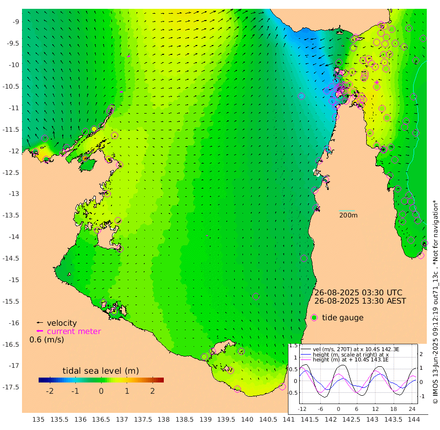 27cm/s 80T +3cm/s rms + 7cm/s -42T. ARA-GOC87 57m 9cm/s 23T +3cm/s rms + 2cm/s -2T. ARA-GOC87 60m 28cm/s 70T +2cm/s rms + 3cm/s 61T. ARA-GOC87 47m 55cm Daru 63cm Bobo Island 8cm Meer Island Barge 18cm Bramble Cay 31cm Unnamed Cay 49cm Pearce Cay 33cm Stephens Island 26cm Merrie England Shoals 40cm Mutacomal Reef 34cm Darnley Island Barge 8cm East Cay 46cm Yorke Island Barge 37cm Rennel Island 58cm Aureed Island 46cm Dungeness Reef 66cm Zagai Island 42cm Yam Island 33cm Dauan Island 40cm Saibai Island 41cm Phipi Reef 63cm Warrior Reef - West 1cm Mabuiag Island Barge 35cm Half Way Island 58cm Coconut Island 37cm Dugong Islet 47cm Poll Island 37cm Kirkcaldie Reef 51cm Suarji Island 47cm Sue Islet -115cm Hawkesbury Island 19cm Alert Patches 28cm Twin Island -68cm Badu Island 33cm St Pauls (Moa Island) -64cm Kubin (Moa Island) -5cm Ince Point -25cm Thursday Island -19cm Nardana Patches -54cm Turtle Head -80cm Round Island -102cm Goods Island -128cm Booby Island -118cm White Rocks Area -103cm Carpentaria 23cm Papou Point -125cm Bampfield Head -105cm Crab Island -118cm Red Wallis Island -82cm Packe Island 53cm Harrington Reef -125cm Herald Camp 17cm Sharp Point -48cm Red Island Point -12cm Possession Island 27cm Alpha Rock 41cm Frederick Point 49cm Wyborn Reef Light 49cm Tetley Island 12cm Triangle Reef 41cm Turtle Head Island 3cm Maclennan Cay -9cm Raine Island 36cm Mcsweeny Reef 29cm Collette Reef 6cm Shadwell Reef 30cm Hannibal Island 16cm Round Point -104cm Vrilya Point 6cm Cape Grenville 7cm Hicks Island 0cm Sir Charles Hardy Island 3cm Harvey Island -4cm Kay Reef -5cm Rocky Island -8cm Chapman Island -11cm Ham Reef -5cm Jubilee Reef -1cm Night Island -9cm Unnamed Reef No. 3 -6cm Morris Island -11cm 1st 3 Mile Opening -7cm Creech Reef 6cm Fife Island -11cm Eden Reef -13cm Stanley Island -9cm Normanby River -44cm Yabooma Island -22cm Hutchison River -27cm Elcho Island -34cm North West Crocodile Island 27cm Cape Wessel 0cm Stevens Island 65cm Guluwuru Island -11cm Hopeful Bay 10cm Auster Point 2cm Two Island Bay 28cm Cadell Strait 145cm Mallison Island 55cm Melville Bay (Gove Harbour) 58cm Truant Island 53cm Cape Arnhem 48cm Cape Grey 41cm Hawk Island 41cm Milner Bay (Groote Eylandt) 31cm Cape Beatrice 31cm West Island 30cm Centre Island 41cm Mornington Island 36cm West Wellesley Islands 37cm Bountiful Island 45cm Albert River Mouth 68cm Sweers Island 37cm Karumba 7cm Nassau River Offshore -19cm Christmas Creek -52cm Archer River -60cm Boyd Point -75cm Weipa (Humbug Point) -64cm Pennefather River -97cm Cullen Point