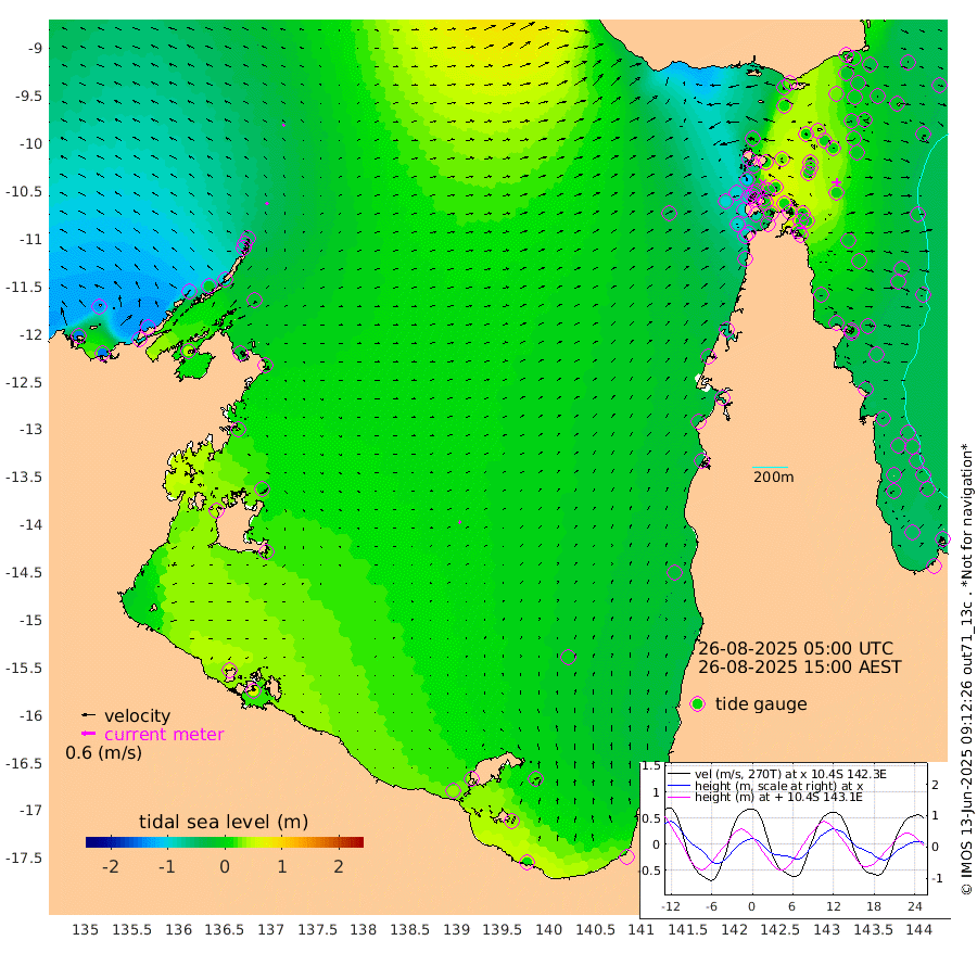 11cm/s 48T +3cm/s rms + 7cm/s -42T. ARA-GOC87 57m 12cm/s 43T +3cm/s rms + 2cm/s -2T. ARA-GOC87 60m 10cm/s 44T +2cm/s rms + 3cm/s 61T. ARA-GOC87 47m -2cm Daru 2cm Bobo Island -28cm Meer Island Barge -36cm Bramble Cay -25cm Unnamed Cay -15cm Pearce Cay -20cm Stephens Island -32cm Merrie England Shoals -18cm Mutacomal Reef -12cm Darnley Island Barge -37cm East Cay -2cm Yorke Island Barge -18cm Rennel Island 7cm Aureed Island -1cm Dungeness Reef 33cm Zagai Island 12cm Yam Island 15cm Dauan Island 28cm Saibai Island 10cm Phipi Reef 24cm Warrior Reef - West -2cm Mabuiag Island Barge -12cm Half Way Island 6cm Coconut Island -7cm Dugong Islet 7cm Poll Island 0cm Kirkcaldie Reef 23cm Suarji Island 16cm Sue Islet -105cm Hawkesbury Island -2cm Alert Patches 3cm Twin Island -68cm Badu Island 14cm St Pauls (Moa Island) -63cm Kubin (Moa Island) -14cm Ince Point -26cm Thursday Island -23cm Nardana Patches -54cm Turtle Head -73cm Round Island -89cm Goods Island -94cm Booby Island -96cm White Rocks Area -39cm Carpentaria 4cm Papou Point -92cm Bampfield Head -78cm Crab Island -90cm Red Wallis Island -78cm Packe Island 2cm Harrington Reef -98cm Herald Camp 15cm Sharp Point -51cm Red Island Point -21cm Possession Island 3cm Alpha Rock 3cm Frederick Point -9cm Wyborn Reef Light -5cm Tetley Island -23cm Triangle Reef -13cm Turtle Head Island -29cm Maclennan Cay -39cm Raine Island -15cm Mcsweeny Reef -21cm Collette Reef -30cm Shadwell Reef -24cm Hannibal Island -42cm Round Point -64cm Vrilya Point -37cm Cape Grenville -35cm Hicks Island -37cm Sir Charles Hardy Island -9cm Harvey Island -44cm Kay Reef -40cm Rocky Island -44cm Chapman Island -39cm Ham Reef -37cm Jubilee Reef -32cm Night Island -40cm Unnamed Reef No. 3 -42cm Morris Island -37cm 1st 3 Mile Opening -37cm Creech Reef -36cm Fife Island -50cm Eden Reef -46cm Stanley Island -51cm Normanby River -148cm Yabooma Island -149cm Hutchison River -130cm Elcho Island -132cm North West Crocodile Island -46cm Cape Wessel -106cm Stevens Island -11cm Guluwuru Island -104cm Hopeful Bay -70cm Auster Point -74cm Two Island Bay -94cm Cadell Strait 43cm Mallison Island -20cm Melville Bay (Gove Harbour) -18cm Truant Island 4cm Cape Arnhem 16cm Cape Grey 12cm Hawk Island 38cm Milner Bay (Groote Eylandt) 30cm Cape Beatrice 59cm West Island 61cm Centre Island 33cm Mornington Island 32cm West Wellesley Islands 19cm Bountiful Island 14cm Albert River Mouth 35cm Sweers Island 5cm Karumba -5cm Nassau River Offshore -24cm Christmas Creek -47cm Archer River -42cm Boyd Point -61cm Weipa (Humbug Point) -42cm Pennefather River -61cm Cullen Point