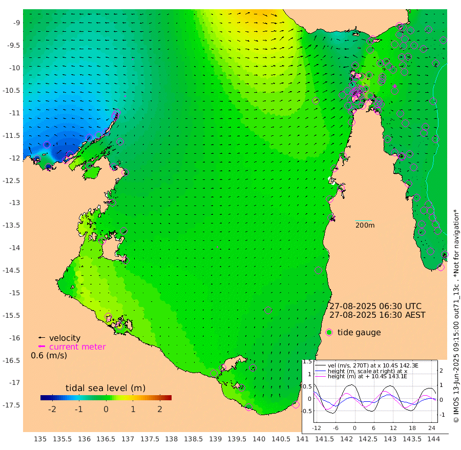8cm/s -48T +3cm/s rms + 7cm/s -42T. ARA-GOC87 57m 10cm/s 74T +3cm/s rms + 2cm/s -2T. ARA-GOC87 60m 8cm/s -81T +2cm/s rms + 3cm/s 61T. ARA-GOC87 47m -36cm Daru -32cm Bobo Island -24cm Meer Island Barge -42cm Bramble Cay -42cm Unnamed Cay -39cm Pearce Cay -35cm Stephens Island -47cm Merrie England Shoals -46cm Mutacomal Reef -24cm Darnley Island Barge -34cm East Cay -23cm Yorke Island Barge -40cm Rennel Island -21cm Aureed Island -30cm Dungeness Reef -10cm Zagai Island -23cm Yam Island -20cm Dauan Island -3cm Saibai Island -27cm Phipi Reef -20cm Warrior Reef - West -15cm Mabuiag Island Barge -32cm Half Way Island -27cm Coconut Island -29cm Dugong Islet -25cm Poll Island -26cm Kirkcaldie Reef -10cm Suarji Island -12cm Sue Islet -64cm Hawkesbury Island -20cm Alert Patches -20cm Twin Island -47cm Badu Island -15cm St Pauls (Moa Island) -47cm Kubin (Moa Island) -23cm Ince Point -23cm Thursday Island -24cm Nardana Patches -37cm Turtle Head -50cm Round Island -47cm Goods Island -34cm Booby Island -44cm White Rocks Area 25cm Carpentaria -17cm Papou Point -36cm Bampfield Head -29cm Crab Island -37cm Red Wallis Island -49cm Packe Island -28cm Harrington Reef -51cm Herald Camp 4cm Sharp Point -35cm Red Island Point -25cm Possession Island -20cm Alpha Rock -25cm Frederick Point -42cm Wyborn Reef Light -39cm Tetley Island -25cm Triangle Reef -40cm Turtle Head Island -24cm Maclennan Cay -27cm Raine Island -33cm Mcsweeny Reef -33cm Collette Reef -27cm Shadwell Reef -37cm Hannibal Island -49cm Round Point -9cm Vrilya Point -35cm Cape Grenville -35cm Hicks Island -30cm Sir Charles Hardy Island -10cm Harvey Island -34cm Kay Reef -29cm Rocky Island -30cm Chapman Island -24cm Ham Reef -25cm Jubilee Reef -24cm Night Island -25cm Unnamed Reef No. 3 -30cm Morris Island -22cm 1st 3 Mile Opening -23cm Creech Reef -32cm Fife Island -33cm Eden Reef -30cm Stanley Island -38cm Normanby River -178cm Yabooma Island -194cm Hutchison River -165cm Elcho Island -166cm North West Crocodile Island -84cm Cape Wessel -151cm Stevens Island -61cm Guluwuru Island -138cm Hopeful Bay -106cm Auster Point -110cm Two Island Bay -152cm Cadell Strait -31cm Mallison Island -66cm Melville Bay (Gove Harbour) -67cm Truant Island -32cm Cape Arnhem -12cm Cape Grey -15cm Hawk Island 17cm Milner Bay (Groote Eylandt) 15cm Cape Beatrice 54cm West Island 58cm Centre Island 17cm Mornington Island 20cm West Wellesley Islands 3cm Bountiful Island -19cm Albert River Mouth -4cm Sweers Island -24cm Karumba -6cm Nassau River Offshore -10cm Christmas Creek -15cm Archer River -6cm Boyd Point -21cm Weipa (Humbug Point) -5cm Pennefather River -11cm Cullen Point