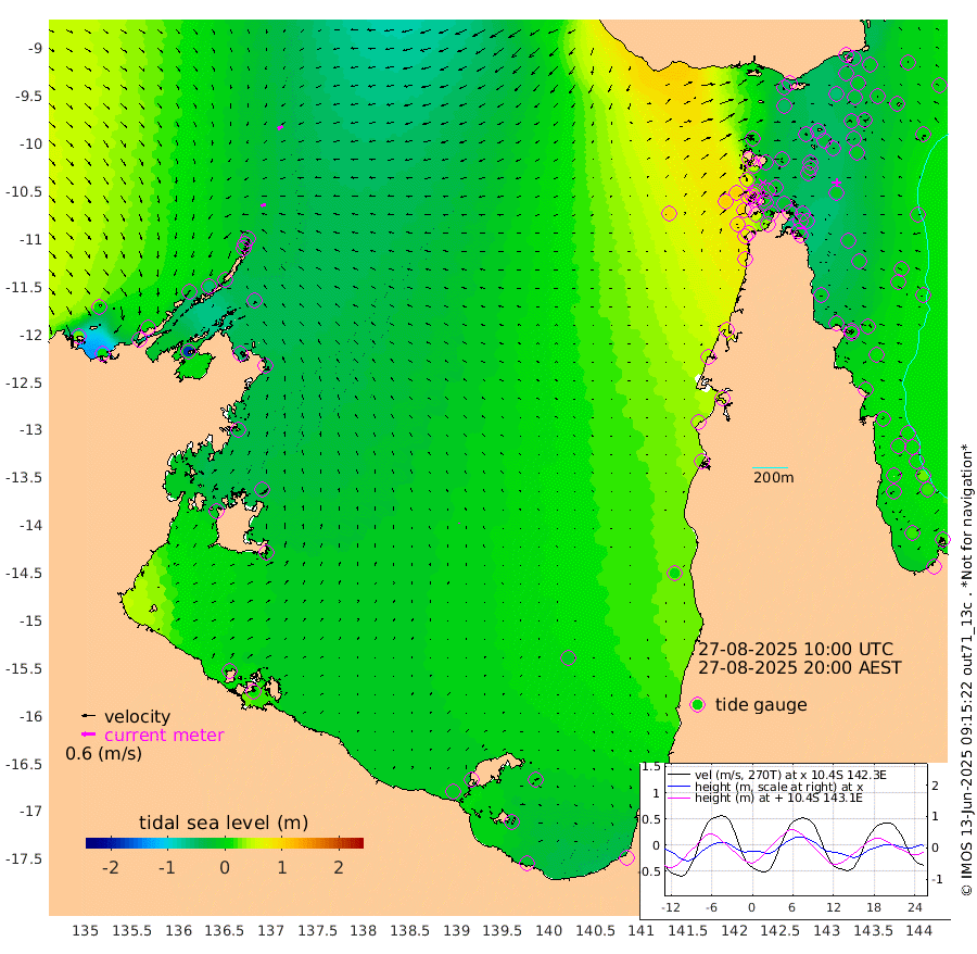 23cm/s -101T +3cm/s rms + 7cm/s -42T. ARA-GOC87 57m 2cm/s -4T +3cm/s rms + 2cm/s -2T. ARA-GOC87 60m 23cm/s -119T +2cm/s rms + 3cm/s 61T. ARA-GOC87 47m -36cm Daru -41cm Bobo Island 3cm Meer Island Barge -6cm Bramble Cay -12cm Unnamed Cay -26cm Pearce Cay -13cm Stephens Island -9cm Merrie England Shoals -24cm Mutacomal Reef -15cm Darnley Island Barge 1cm East Cay -25cm Yorke Island Barge -18cm Rennel Island -32cm Aureed Island -24cm Dungeness Reef -50cm Zagai Island -35cm Yam Island -44cm Dauan Island -49cm Saibai Island -45cm Phipi Reef -57cm Warrior Reef - West -5cm Mabuiag Island Barge -14cm Half Way Island -33cm Coconut Island -15cm Dugong Islet -29cm Poll Island -21cm Kirkcaldie Reef -20cm Suarji Island -31cm Sue Islet 71cm Hawkesbury Island -3cm Alert Patches -13cm Twin Island 49cm Badu Island -18cm St Pauls (Moa Island) 41cm Kubin (Moa Island) 8cm Ince Point 25cm Thursday Island 20cm Nardana Patches 44cm Turtle Head 50cm Round Island 80cm Goods Island 103cm Booby Island 102cm White Rocks Area 93cm Carpentaria -14cm Papou Point 100cm Bampfield Head 75cm Crab Island 89cm Red Wallis Island 54cm Packe Island -23cm Harrington Reef 74cm Herald Camp -14cm Sharp Point 31cm Red Island Point 12cm Possession Island -16cm Alpha Rock -22cm Frederick Point -30cm Wyborn Reef Light -32cm Tetley Island -5cm Triangle Reef -16cm Turtle Head Island 8cm Maclennan Cay 15cm Raine Island -15cm Mcsweeny Reef -13cm Collette Reef 2cm Shadwell Reef -12cm Hannibal Island -5cm Round Point 76cm Vrilya Point 5cm Cape Grenville 2cm Hicks Island 8cm Sir Charles Hardy Island 0cm Harvey Island 13cm Kay Reef 12cm Rocky Island 11cm Chapman Island 13cm Ham Reef 12cm Jubilee Reef 8cm Night Island 12cm Unnamed Reef No. 3 15cm Morris Island 25cm 1st 3 Mile Opening 16cm Creech Reef 0cm Fife Island 19cm Eden Reef 20cm Stanley Island 16cm Normanby River 23cm Yabooma Island 8cm Hutchison River 12cm Elcho Island 13cm North West Crocodile Island -29cm Cape Wessel -15cm Stevens Island -58cm Guluwuru Island -9cm Hopeful Bay -14cm Auster Point -20cm Two Island Bay -48cm Cadell Strait -181cm Mallison Island -48cm Melville Bay (Gove Harbour) -51cm Truant Island -43cm Cape Arnhem -24cm Cape Grey -29cm Hawk Island -8cm Milner Bay (Groote Eylandt) -4cm Cape Beatrice 11cm West Island 8cm Centre Island -24cm Mornington Island -10cm West Wellesley Islands -5cm Bountiful Island -20cm Albert River Mouth -28cm Sweers Island -28cm Karumba -11cm Nassau River Offshore 3cm Christmas Creek 30cm Archer River 40cm Boyd Point 51cm Weipa (Humbug Point) 44cm Pennefather River 63cm Cullen Point