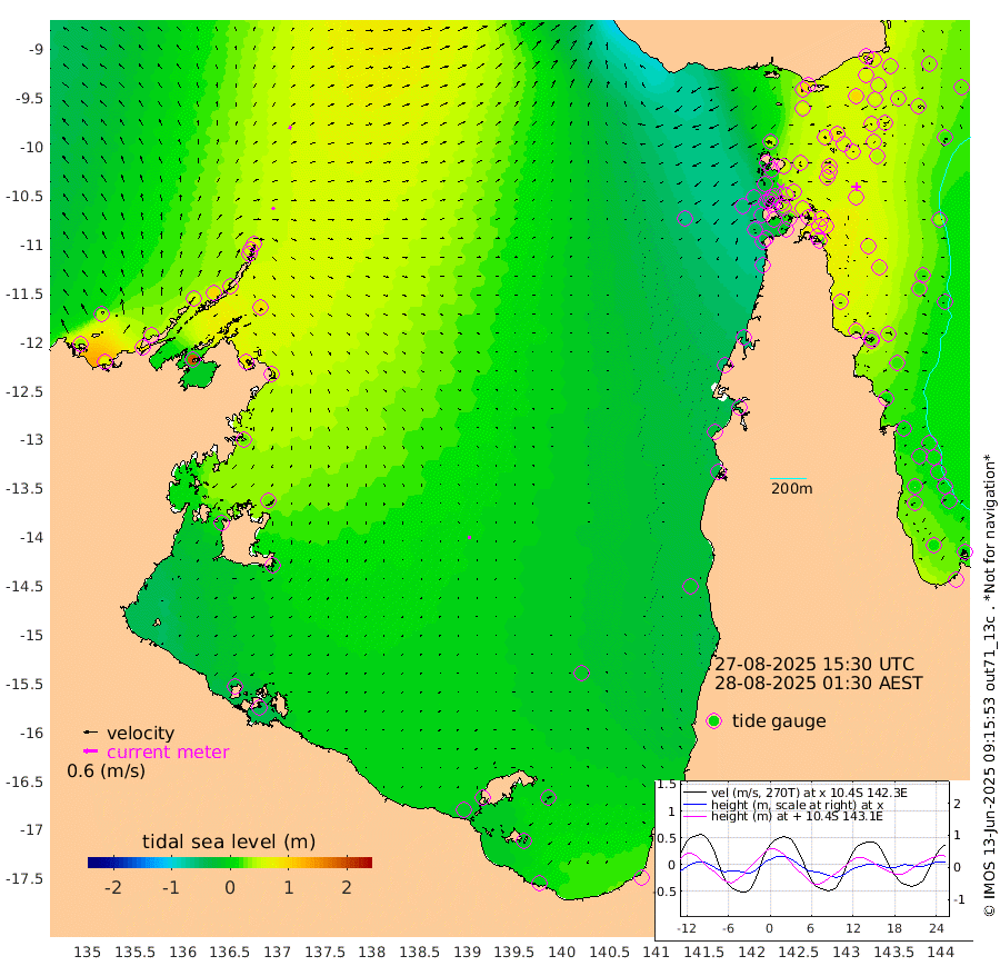11cm/s 61T +3cm/s rms + 7cm/s -42T. ARA-GOC87 57m 13cm/s -172T +3cm/s rms + 2cm/s -2T. ARA-GOC87 60m 13cm/s 34T +2cm/s rms + 3cm/s 61T. ARA-GOC87 47m 68cm Daru 67cm Bobo Island 19cm Meer Island Barge 35cm Bramble Cay 49cm Unnamed Cay 53cm Pearce Cay 43cm Stephens Island 42cm Merrie England Shoals 64cm Mutacomal Reef 41cm Darnley Island Barge 23cm East Cay 53cm Yorke Island Barge 54cm Rennel Island 59cm Aureed Island 57cm Dungeness Reef 81cm Zagai Island 74cm Yam Island 86cm Dauan Island 85cm Saibai Island 67cm Phipi Reef 93cm Warrior Reef - West 42cm Mabuiag Island Barge 45cm Half Way Island 62cm Coconut Island 53cm Dugong Islet 64cm Poll Island 51cm Kirkcaldie Reef 61cm Suarji Island 63cm Sue Islet -23cm Hawkesbury Island 39cm Alert Patches 49cm Twin Island -8cm Badu Island 55cm St Pauls (Moa Island) 7cm Kubin (Moa Island) 31cm Ince Point 14cm Thursday Island 20cm Nardana Patches 1cm Turtle Head -8cm Round Island -31cm Goods Island -59cm Booby Island -49cm White Rocks Area -63cm Carpentaria 44cm Papou Point -47cm Bampfield Head -57cm Crab Island -44cm Red Wallis Island -7cm Packe Island 56cm Harrington Reef -25cm Herald Camp 19cm Sharp Point -10cm Red Island Point 16cm Possession Island 58cm Alpha Rock 57cm Frederick Point 69cm Wyborn Reef Light 72cm Tetley Island 31cm Triangle Reef 45cm Turtle Head Island 20cm Maclennan Cay 5cm Raine Island 47cm Mcsweeny Reef 40cm Collette Reef 21cm Shadwell Reef 41cm Hannibal Island 35cm Round Point -72cm Vrilya Point 23cm Cape Grenville 23cm Hicks Island 33cm Sir Charles Hardy Island 7cm Harvey Island 15cm Kay Reef 13cm Rocky Island 12cm Chapman Island 10cm Ham Reef 11cm Jubilee Reef 12cm Night Island 10cm Unnamed Reef No. 3 11cm Morris Island 1cm 1st 3 Mile Opening 7cm Creech Reef 22cm Fife Island 8cm Eden Reef 5cm Stanley Island 11cm Normanby River 37cm Yabooma Island 61cm Hutchison River 43cm Elcho Island 39cm North West Crocodile Island 68cm Cape Wessel 59cm Stevens Island 94cm Guluwuru Island 47cm Hopeful Bay 49cm Auster Point 56cm Two Island Bay 83cm Cadell Strait 191cm Mallison Island 78cm Melville Bay (Gove Harbour) 84cm Truant Island 61cm Cape Arnhem 30cm Cape Grey 27cm Hawk Island -7cm Milner Bay (Groote Eylandt) -7cm Cape Beatrice -34cm West Island -43cm Centre Island -9cm Mornington Island -10cm West Wellesley Islands -9cm Bountiful Island -5cm Albert River Mouth -22cm Sweers Island -13cm Karumba -9cm Nassau River Offshore -9cm Christmas Creek -31cm Archer River -25cm Boyd Point -31cm Weipa (Humbug Point) -57cm Pennefather River -47cm Cullen Point