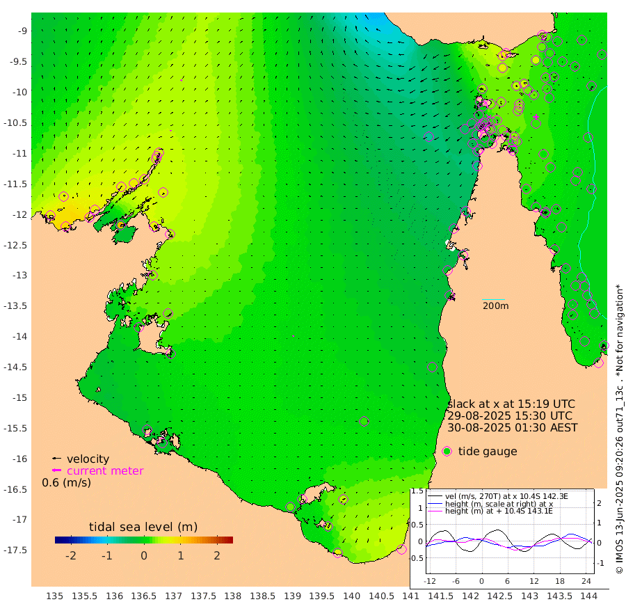 7cm/s 37T +3cm/s rms + 7cm/s -42T. ARA-GOC87 57m 10cm/s -133T +3cm/s rms + 2cm/s -2T. ARA-GOC87 60m 10cm/s 23T +2cm/s rms + 3cm/s 61T. ARA-GOC87 47m 33cm Daru 25cm Bobo Island -3cm Meer Island Barge 7cm Bramble Cay 17cm Unnamed Cay 13cm Pearce Cay 8cm Stephens Island 9cm Merrie England Shoals 27cm Mutacomal Reef 8cm Darnley Island Barge -4cm East Cay 18cm Yorke Island Barge 19cm Rennel Island 18cm Aureed Island 27cm Dungeness Reef 55cm Zagai Island 49cm Yam Island 82cm Dauan Island 76cm Saibai Island 68cm Phipi Reef 67cm Warrior Reef - West 38cm Mabuiag Island Barge 9cm Half Way Island 25cm Coconut Island 17cm Dugong Islet 32cm Poll Island 24cm Kirkcaldie Reef 35cm Suarji Island 34cm Sue Islet -18cm Hawkesbury Island 19cm Alert Patches 22cm Twin Island 6cm Badu Island 32cm St Pauls (Moa Island) 2cm Kubin (Moa Island) 16cm Ince Point 4cm Thursday Island 10cm Nardana Patches 1cm Turtle Head -11cm Round Island -21cm Goods Island -46cm Booby Island -39cm White Rocks Area -68cm Carpentaria 24cm Papou Point -48cm Bampfield Head -44cm Crab Island -40cm Red Wallis Island -15cm Packe Island 13cm Harrington Reef -28cm Herald Camp 12cm Sharp Point -9cm Red Island Point 0cm Possession Island 28cm Alpha Rock 22cm Frederick Point 29cm Wyborn Reef Light 32cm Tetley Island 5cm Triangle Reef 7cm Turtle Head Island -4cm Maclennan Cay -8cm Raine Island 13cm Mcsweeny Reef 10cm Collette Reef 1cm Shadwell Reef 8cm Hannibal Island 2cm Round Point -63cm Vrilya Point -5cm Cape Grenville -2cm Hicks Island 6cm Sir Charles Hardy Island -2cm Harvey Island -9cm Kay Reef -6cm Rocky Island -8cm Chapman Island -9cm Ham Reef -6cm Jubilee Reef -9cm Night Island -11cm Unnamed Reef No. 3 -8cm Morris Island -11cm 1st 3 Mile Opening -12cm Creech Reef -4cm Fife Island -12cm Eden Reef -14cm Stanley Island -13cm Normanby River 68cm Yabooma Island 95cm Hutchison River 75cm Elcho Island 72cm North West Crocodile Island 55cm Cape Wessel 73cm Stevens Island 82cm Guluwuru Island 59cm Hopeful Bay 51cm Auster Point 53cm Two Island Bay 92cm Cadell Strait 123cm Mallison Island 71cm Melville Bay (Gove Harbour) 70cm Truant Island 51cm Cape Arnhem 37cm Cape Grey 30cm Hawk Island 9cm Milner Bay (Groote Eylandt) 12cm Cape Beatrice -13cm West Island -23cm Centre Island 23cm Mornington Island 23cm West Wellesley Islands 47cm Bountiful Island 72cm Albert River Mouth 51cm Sweers Island 57cm Karumba 18cm Nassau River Offshore 7cm Christmas Creek -18cm Archer River -21cm Boyd Point -18cm Weipa (Humbug Point) -49cm Pennefather River -45cm Cullen Point