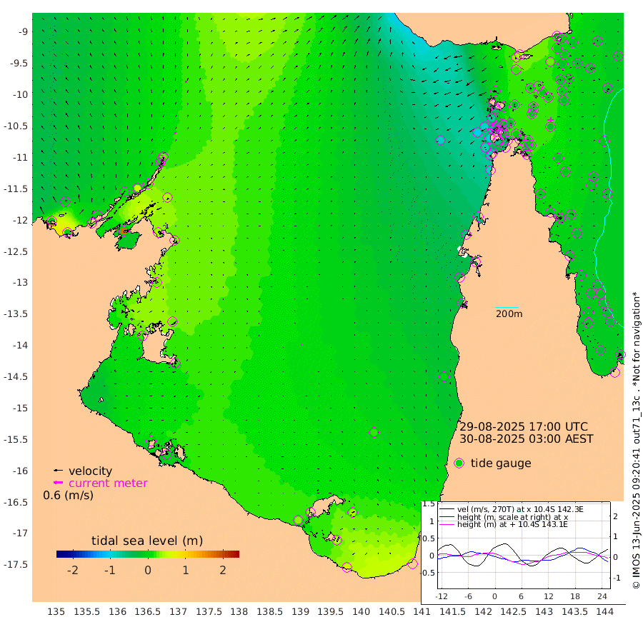 12cm/s 16T +3cm/s rms + 7cm/s -42T. ARA-GOC87 57m 6cm/s -133T +3cm/s rms + 2cm/s -2T. ARA-GOC87 60m 15cm/s 9T +2cm/s rms + 3cm/s 61T. ARA-GOC87 47m 1cm Daru -2cm Bobo Island -16cm Meer Island Barge -14cm Bramble Cay -12cm Unnamed Cay -18cm Pearce Cay -17cm Stephens Island -16cm Merrie England Shoals -4cm Mutacomal Reef -10cm Darnley Island Barge -18cm East Cay -5cm Yorke Island Barge -13cm Rennel Island -6cm Aureed Island -11cm Dungeness Reef 22cm Zagai Island 12cm Yam Island 35cm Dauan Island 44cm Saibai Island 15cm Phipi Reef 30cm Warrior Reef - West -5cm Mabuiag Island Barge -19cm Half Way Island -7cm Coconut Island -15cm Dugong Islet -5cm Poll Island -13cm Kirkcaldie Reef -10cm Suarji Island 4cm Sue Islet -81cm Hawkesbury Island -28cm Alert Patches -20cm Twin Island -59cm Badu Island -13cm St Pauls (Moa Island) -54cm Kubin (Moa Island) -30cm Ince Point -45cm Thursday Island -39cm Nardana Patches -55cm Turtle Head -65cm Round Island -82cm Goods Island -100cm Booby Island -97cm White Rocks Area -83cm Carpentaria -16cm Papou Point -103cm Bampfield Head -84cm Crab Island -88cm Red Wallis Island -66cm Packe Island -21cm Harrington Reef -78cm Herald Camp 6cm Sharp Point -56cm Red Island Point -46cm Possession Island -4cm Alpha Rock -16cm Frederick Point -5cm Wyborn Reef Light -3cm Tetley Island -10cm Triangle Reef -35cm Turtle Head Island -19cm Maclennan Cay -20cm Raine Island -13cm Mcsweeny Reef -11cm Collette Reef -13cm Shadwell Reef -13cm Hannibal Island -20cm Round Point -89cm Vrilya Point -21cm Cape Grenville -20cm Hicks Island -9cm Sir Charles Hardy Island -7cm Harvey Island -20cm Kay Reef -18cm Rocky Island -18cm Chapman Island -15cm Ham Reef -17cm Jubilee Reef -18cm Night Island -18cm Unnamed Reef No. 3 -22cm Morris Island -27cm 1st 3 Mile Opening -23cm Creech Reef -15cm Fife Island -23cm Eden Reef -24cm Stanley Island -25cm Normanby River -20cm Yabooma Island -6cm Hutchison River -6cm Elcho Island -8cm North West Crocodile Island 24cm Cape Wessel 9cm Stevens Island 58cm Guluwuru Island 4cm Hopeful Bay 3cm Auster Point 9cm Two Island Bay 24cm Cadell Strait 179cm Mallison Island 41cm Melville Bay (Gove Harbour) 41cm Truant Island 37cm Cape Arnhem 24cm Cape Grey 25cm Hawk Island 16cm Milner Bay (Groote Eylandt) 19cm Cape Beatrice 10cm West Island 5cm Centre Island 36cm Mornington Island 35cm West Wellesley Islands 40cm Bountiful Island 66cm Albert River Mouth 49cm Sweers Island 50cm Karumba 17cm Nassau River Offshore 1cm Christmas Creek -33cm Archer River -37cm Boyd Point -44cm Weipa (Humbug Point) -64cm Pennefather River -66cm Cullen Point