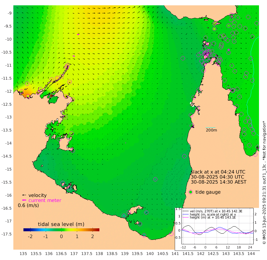 35cm/s 105T +3cm/s rms + 7cm/s -42T. ARA-GOC87 57m 7cm/s 122T +3cm/s rms + 2cm/s -2T. ARA-GOC87 60m 31cm/s 94T +2cm/s rms + 3cm/s 61T. ARA-GOC87 47m 10cm Daru 11cm Bobo Island 5cm Meer Island Barge 4cm Bramble Cay 3cm Unnamed Cay 3cm Pearce Cay -1cm Stephens Island 0cm Merrie England Shoals 1cm Mutacomal Reef 7cm Darnley Island Barge -1cm East Cay 8cm Yorke Island Barge -5cm Rennel Island 4cm Aureed Island 0cm Dungeness Reef 22cm Zagai Island 4cm Yam Island 29cm Dauan Island 35cm Saibai Island 28cm Phipi Reef 20cm Warrior Reef - West 12cm Mabuiag Island Barge -8cm Half Way Island 8cm Coconut Island -11cm Dugong Islet 1cm Poll Island -6cm Kirkcaldie Reef -4cm Suarji Island 10cm Sue Islet -16cm Hawkesbury Island -3cm Alert Patches -4cm Twin Island 3cm Badu Island 1cm St Pauls (Moa Island) -12cm Kubin (Moa Island) -7cm Ince Point -11cm Thursday Island -9cm Nardana Patches -14cm Turtle Head -8cm Round Island -21cm Goods Island -27cm Booby Island -37cm White Rocks Area -25cm Carpentaria -1cm Papou Point -12cm Bampfield Head -19cm Crab Island -33cm Red Wallis Island -21cm Packe Island -10cm Harrington Reef -25cm Herald Camp 1cm Sharp Point -14cm Red Island Point -3cm Possession Island -1cm Alpha Rock -1cm Frederick Point 11cm Wyborn Reef Light 12cm Tetley Island 7cm Triangle Reef 6cm Turtle Head Island -5cm Maclennan Cay 2cm Raine Island 3cm Mcsweeny Reef 7cm Collette Reef 8cm Shadwell Reef 7cm Hannibal Island 3cm Round Point -19cm Vrilya Point -4cm Cape Grenville -1cm Hicks Island -2cm Sir Charles Hardy Island -2cm Harvey Island -2cm Kay Reef 1cm Rocky Island 4cm Chapman Island 2cm Ham Reef 2cm Jubilee Reef -1cm Night Island 0cm Unnamed Reef No. 3 -1cm Morris Island -1cm 1st 3 Mile Opening -2cm Creech Reef 0cm Fife Island 1cm Eden Reef -4cm Stanley Island -9cm Normanby River 41cm Yabooma Island 63cm Hutchison River 49cm Elcho Island 38cm North West Crocodile Island 61cm Cape Wessel 69cm Stevens Island 92cm Guluwuru Island 61cm Hopeful Bay 61cm Auster Point 59cm Two Island Bay 92cm Cadell Strait 213cm Mallison Island 80cm Melville Bay (Gove Harbour) 86cm Truant Island 62cm Cape Arnhem 34cm Cape Grey 24cm Hawk Island -7cm Milner Bay (Groote Eylandt) -23cm Cape Beatrice -55cm West Island -53cm Centre Island -44cm Mornington Island -56cm West Wellesley Islands -53cm Bountiful Island -60cm Albert River Mouth -43cm Sweers Island -57cm Karumba -40cm Nassau River Offshore -28cm Christmas Creek -14cm Archer River -12cm Boyd Point -17cm Weipa (Humbug Point) -5cm Pennefather River -19cm Cullen Point