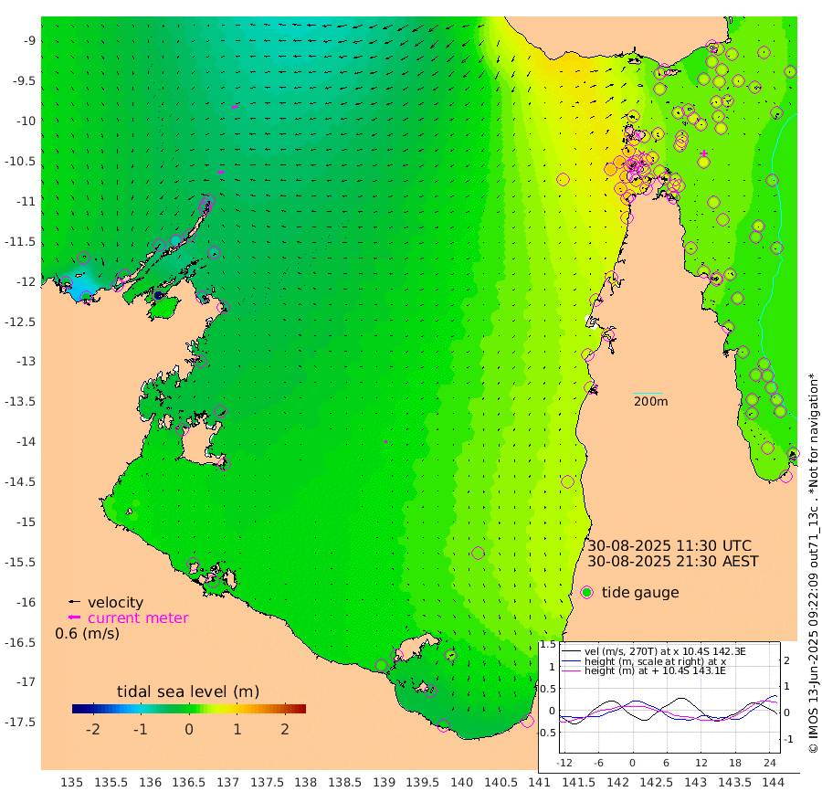 29cm/s -97T +3cm/s rms + 7cm/s -42T. ARA-GOC87 57m 12cm/s -169T +3cm/s rms + 2cm/s -2T. ARA-GOC87 60m 31cm/s -106T +2cm/s rms + 3cm/s 61T. ARA-GOC87 47m 42cm Daru 38cm Bobo Island 29cm Meer Island Barge 34cm Bramble Cay 44cm Unnamed Cay 52cm Pearce Cay 45cm Stephens Island 41cm Merrie England Shoals 45cm Mutacomal Reef 35cm Darnley Island Barge 35cm East Cay 39cm Yorke Island Barge 53cm Rennel Island 45cm Aureed Island 58cm Dungeness Reef 33cm Zagai Island 47cm Yam Island 38cm Dauan Island 23cm Saibai Island 50cm Phipi Reef 39cm Warrior Reef - West 54cm Mabuiag Island Barge 53cm Half Way Island 48cm Coconut Island 61cm Dugong Islet 54cm Poll Island 60cm Kirkcaldie Reef 74cm Suarji Island 45cm Sue Islet 105cm Hawkesbury Island 77cm Alert Patches 69cm Twin Island 91cm Badu Island 67cm St Pauls (Moa Island) 88cm Kubin (Moa Island) 76cm Ince Point 83cm Thursday Island 81cm Nardana Patches 95cm Turtle Head 86cm Round Island 108cm Goods Island 112cm Booby Island 118cm White Rocks Area 79cm Carpentaria 59cm Papou Point 106cm Bampfield Head 83cm Crab Island 105cm Red Wallis Island 94cm Packe Island 64cm Harrington Reef 100cm Herald Camp 11cm Sharp Point 85cm Red Island Point 75cm Possession Island 50cm Alpha Rock 62cm Frederick Point 42cm Wyborn Reef Light 42cm Tetley Island 29cm Triangle Reef 60cm Turtle Head Island 39cm Maclennan Cay 28cm Raine Island 43cm Mcsweeny Reef 36cm Collette Reef 27cm Shadwell Reef 37cm Hannibal Island 39cm Round Point 74cm Vrilya Point 38cm Cape Grenville 37cm Hicks Island 38cm Sir Charles Hardy Island 12cm Harvey Island 33cm Kay Reef 32cm Rocky Island 28cm Chapman Island 26cm Ham Reef 29cm Jubilee Reef 28cm Night Island 29cm Unnamed Reef No. 3 34cm Morris Island 37cm 1st 3 Mile Opening 34cm Creech Reef 28cm Fife Island 32cm Eden Reef 33cm Stanley Island 37cm Normanby River -15cm Yabooma Island -24cm Hutchison River -27cm Elcho Island -20cm North West Crocodile Island -54cm Cape Wessel -53cm Stevens Island -75cm Guluwuru Island -46cm Hopeful Bay -42cm Auster Point -50cm Two Island Bay -65cm Cadell Strait -236cm Mallison Island -60cm Melville Bay (Gove Harbour) -66cm Truant Island -50cm Cape Arnhem -27cm Cape Grey -28cm Hawk Island -21cm Milner Bay (Groote Eylandt) -8cm Cape Beatrice 9cm West Island 5cm Centre Island 7cm Mornington Island 16cm West Wellesley Islands 29cm Bountiful Island -2cm Albert River Mouth -9cm Sweers Island 7cm Karumba 30cm Nassau River Offshore 41cm Christmas Creek 50cm Archer River 55cm Boyd Point 65cm Weipa (Humbug Point) 48cm Pennefather River 65cm Cullen Point