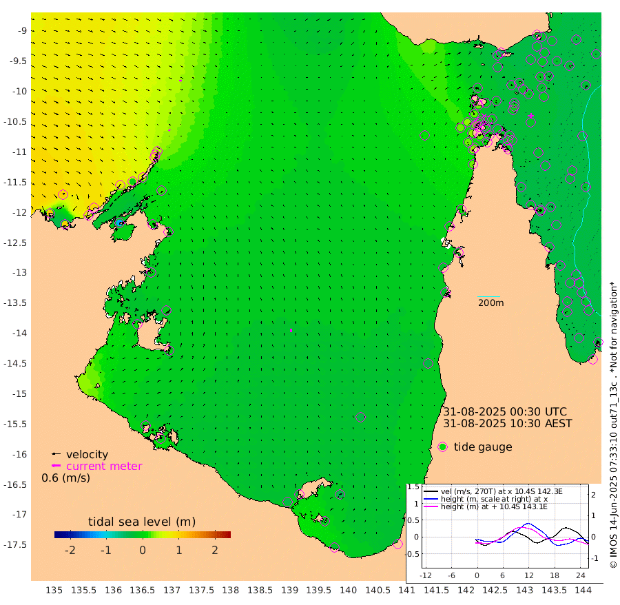 12cm/s 124T +3cm/s rms + 7cm/s -42T. ARA-GOC87 57m 21cm/s 0T +3cm/s rms + 2cm/s -2T. ARA-GOC87 60m 17cm/s 116T +2cm/s rms + 3cm/s 61T. ARA-GOC87 47m -18cm Daru -18cm Bobo Island -25cm Meer Island Barge -24cm Bramble Cay -22cm Unnamed Cay -13cm Pearce Cay -17cm Stephens Island -20cm Merrie England Shoals -19cm Mutacomal Reef -28cm Darnley Island Barge -24cm East Cay -26cm Yorke Island Barge -13cm Rennel Island -21cm Aureed Island -11cm Dungeness Reef -21cm Zagai Island -12cm Yam Island -30cm Dauan Island -46cm Saibai Island -24cm Phipi Reef -28cm Warrior Reef - West -10cm Mabuiag Island Barge -7cm Half Way Island -12cm Coconut Island -11cm Dugong Islet -6cm Poll Island -6cm Kirkcaldie Reef -7cm Suarji Island -23cm Sue Islet 24cm Hawkesbury Island -2cm Alert Patches 1cm Twin Island 14cm Badu Island 2cm St Pauls (Moa Island) 23cm Kubin (Moa Island) 6cm Ince Point 12cm Thursday Island 10cm Nardana Patches 13cm Turtle Head 26cm Round Island 23cm Goods Island 29cm Booby Island 35cm White Rocks Area 12cm Carpentaria 6cm Papou Point 31cm Bampfield Head 31cm Crab Island 30cm Red Wallis Island 24cm Packe Island -4cm Harrington Reef 25cm Herald Camp -5cm Sharp Point 12cm Red Island Point 15cm Possession Island -8cm Alpha Rock -4cm Frederick Point -13cm Wyborn Reef Light -12cm Tetley Island -24cm Triangle Reef 5cm Turtle Head Island -22cm Maclennan Cay -22cm Raine Island -20cm Mcsweeny Reef -26cm Collette Reef -29cm Shadwell Reef -27cm Hannibal Island -19cm Round Point 28cm Vrilya Point -24cm Cape Grenville -20cm Hicks Island -37cm Sir Charles Hardy Island -6cm Harvey Island -30cm Kay Reef -28cm Rocky Island -32cm Chapman Island -32cm Ham Reef -28cm Jubilee Reef -20cm Night Island -30cm Unnamed Reef No. 3 -26cm Morris Island -22cm 1st 3 Mile Opening -26cm Creech Reef -22cm Fife Island -32cm Eden Reef -27cm Stanley Island -23cm Normanby River 107cm Yabooma Island 104cm Hutchison River 96cm Elcho Island 98cm North West Crocodile Island 42cm Cape Wessel 82cm Stevens Island -1cm Guluwuru Island 69cm Hopeful Bay 63cm Auster Point 69cm Two Island Bay 71cm Cadell Strait -127cm Mallison Island 14cm Melville Bay (Gove Harbour) 17cm Truant Island 2cm Cape Arnhem -2cm Cape Grey 0cm Hawk Island 10cm Milner Bay (Groote Eylandt) 2cm Cape Beatrice -4cm West Island -1cm Centre Island -30cm Mornington Island -33cm West Wellesley Islands -42cm Bountiful Island -19cm Albert River Mouth -14cm Sweers Island -17cm Karumba -33cm Nassau River Offshore -37cm Christmas Creek -21cm Archer River -16cm Boyd Point -13cm Weipa (Humbug Point) 11cm Pennefather River 13cm Cullen Point