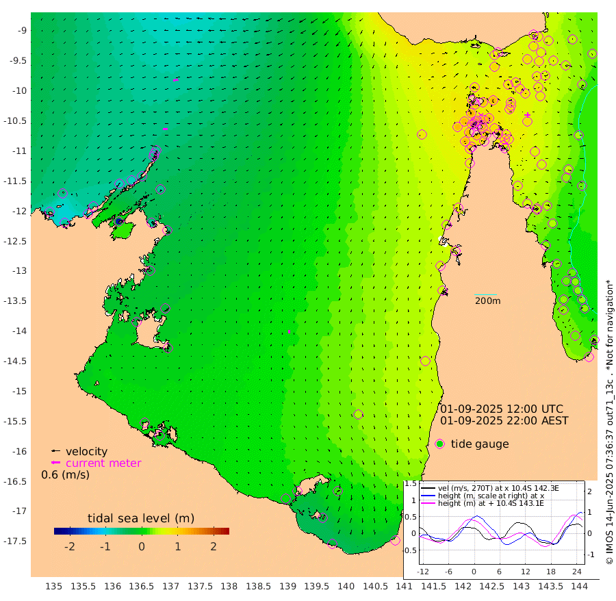 32cm/s -95T +3cm/s rms + 7cm/s -42T. ARA-GOC87 57m 21cm/s -177T +3cm/s rms + 2cm/s -2T. ARA-GOC87 60m 36cm/s -100T +2cm/s rms + 3cm/s 61T. ARA-GOC87 47m 75cm Daru 71cm Bobo Island 34cm Meer Island Barge 47cm Bramble Cay 64cm Unnamed Cay 79cm Pearce Cay 64cm Stephens Island 61cm Merrie England Shoals 77cm Mutacomal Reef 52cm Darnley Island Barge 44cm East Cay 63cm Yorke Island Barge 80cm Rennel Island 77cm Aureed Island 90cm Dungeness Reef 74cm Zagai Island 85cm Yam Island 82cm Dauan Island 67cm Saibai Island 94cm Phipi Reef 87cm Warrior Reef - West 86cm Mabuiag Island Barge 75cm Half Way Island 84cm Coconut Island 87cm Dugong Islet 92cm Poll Island 92cm Kirkcaldie Reef 117cm Suarji Island 80cm Sue Islet 120cm Hawkesbury Island 115cm Alert Patches 108cm Twin Island 107cm Badu Island 108cm St Pauls (Moa Island) 110cm Kubin (Moa Island) 108cm Ince Point 110cm Thursday Island 109cm Nardana Patches 116cm Turtle Head 108cm Round Island 116cm Goods Island 113cm Booby Island 120cm White Rocks Area 79cm Carpentaria 91cm Papou Point 117cm Bampfield Head 85cm Crab Island 113cm Red Wallis Island 118cm Packe Island 99cm Harrington Reef 118cm Herald Camp 25cm Sharp Point 104cm Red Island Point 107cm Possession Island 87cm Alpha Rock 102cm Frederick Point 78cm Wyborn Reef Light 81cm Tetley Island 44cm Triangle Reef 87cm Turtle Head Island 46cm Maclennan Cay 27cm Raine Island 66cm Mcsweeny Reef 55cm Collette Reef 35cm Shadwell Reef 56cm Hannibal Island 55cm Round Point 72cm Vrilya Point 50cm Cape Grenville 46cm Hicks Island 47cm Sir Charles Hardy Island 15cm Harvey Island 39cm Kay Reef 35cm Rocky Island 33cm Chapman Island 29cm Ham Reef 29cm Jubilee Reef 33cm Night Island 33cm Unnamed Reef No. 3 35cm Morris Island 32cm 1st 3 Mile Opening 35cm Creech Reef 37cm Fife Island 29cm Eden Reef 33cm Stanley Island 37cm Normanby River -61cm Yabooma Island -71cm Hutchison River -71cm Elcho Island -63cm North West Crocodile Island -69cm Cape Wessel -84cm Stevens Island -88cm Guluwuru Island -73cm Hopeful Bay -65cm Auster Point -75cm Two Island Bay -95cm Cadell Strait -202cm Mallison Island -70cm Melville Bay (Gove Harbour) -74cm Truant Island -53cm Cape Arnhem -37cm Cape Grey -28cm Hawk Island -33cm Milner Bay (Groote Eylandt) -18cm Cape Beatrice -1cm West Island -3cm Centre Island 10cm Mornington Island 14cm West Wellesley Islands 20cm Bountiful Island -23cm Albert River Mouth -25cm Sweers Island -2cm Karumba 38cm Nassau River Offshore 54cm Christmas Creek 58cm Archer River 63cm Boyd Point 70cm Weipa (Humbug Point) 50cm Pennefather River 72cm Cullen Point