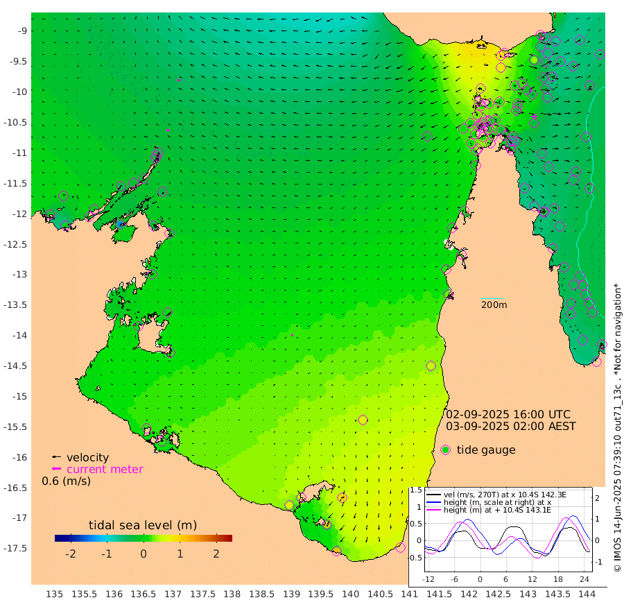23cm/s -78T +3cm/s rms + 7cm/s -42T. ARA-GOC87 57m 15cm/s -125T +3cm/s rms + 2cm/s -2T. ARA-GOC87 60m 21cm/s -75T +2cm/s rms + 3cm/s 61T. ARA-GOC87 47m -32cm Daru -41cm Bobo Island -39cm Meer Island Barge -55cm Bramble Cay -55cm Unnamed Cay -45cm Pearce Cay -50cm Stephens Island -69cm Merrie England Shoals -54cm Mutacomal Reef -45cm Darnley Island Barge -46cm East Cay -38cm Yorke Island Barge -41cm Rennel Island -36cm Aureed Island -16cm Dungeness Reef 16cm Zagai Island 14cm Yam Island 81cm Dauan Island 64cm Saibai Island 82cm Phipi Reef 34cm Warrior Reef - West 39cm Mabuiag Island Barge -46cm Half Way Island -33cm Coconut Island -36cm Dugong Islet -13cm Poll Island -14cm Kirkcaldie Reef 14cm Suarji Island -9cm Sue Islet 23cm Hawkesbury Island 3cm Alert Patches -3cm Twin Island 35cm Badu Island 14cm St Pauls (Moa Island) 22cm Kubin (Moa Island) 12cm Ince Point 13cm Thursday Island 15cm Nardana Patches 23cm Turtle Head 22cm Round Island 20cm Goods Island 13cm Booby Island 3cm White Rocks Area -20cm Carpentaria 8cm Papou Point 3cm Bampfield Head 13cm Crab Island 5cm Red Wallis Island 9cm Packe Island -45cm Harrington Reef 31cm Herald Camp 8cm Sharp Point 21cm Red Island Point 12cm Possession Island -19cm Alpha Rock -20cm Frederick Point -51cm Wyborn Reef Light -45cm Tetley Island -33cm Triangle Reef -50cm Turtle Head Island -36cm Maclennan Cay -33cm Raine Island -49cm Mcsweeny Reef -50cm Collette Reef -39cm Shadwell Reef -59cm Hannibal Island -62cm Round Point -4cm Vrilya Point -57cm Cape Grenville -42cm Hicks Island -40cm Sir Charles Hardy Island -14cm Harvey Island -59cm Kay Reef -38cm Rocky Island -43cm Chapman Island -38cm Ham Reef -39cm Jubilee Reef -38cm Night Island -44cm Unnamed Reef No. 3 -43cm Morris Island -33cm 1st 3 Mile Opening -39cm Creech Reef -44cm Fife Island -50cm Eden Reef -50cm Stanley Island -56cm Normanby River -12cm Yabooma Island -3cm Hutchison River -8cm Elcho Island -1cm North West Crocodile Island -44cm Cape Wessel -38cm Stevens Island -29cm Guluwuru Island -29cm Hopeful Bay -33cm Auster Point -28cm Two Island Bay -14cm Cadell Strait -136cm Mallison Island -23cm Melville Bay (Gove Harbour) -32cm Truant Island -16cm Cape Arnhem 1cm Cape Grey 6cm Hawk Island 5cm Milner Bay (Groote Eylandt) 16cm Cape Beatrice 21cm West Island 19cm Centre Island 70cm Mornington Island 61cm West Wellesley Islands 102cm Bountiful Island 120cm Albert River Mouth 112cm Sweers Island 128cm Karumba 65cm Nassau River Offshore 51cm Christmas Creek 27cm Archer River 19cm Boyd Point 30cm Weipa (Humbug Point) -1cm Pennefather River 9cm Cullen Point