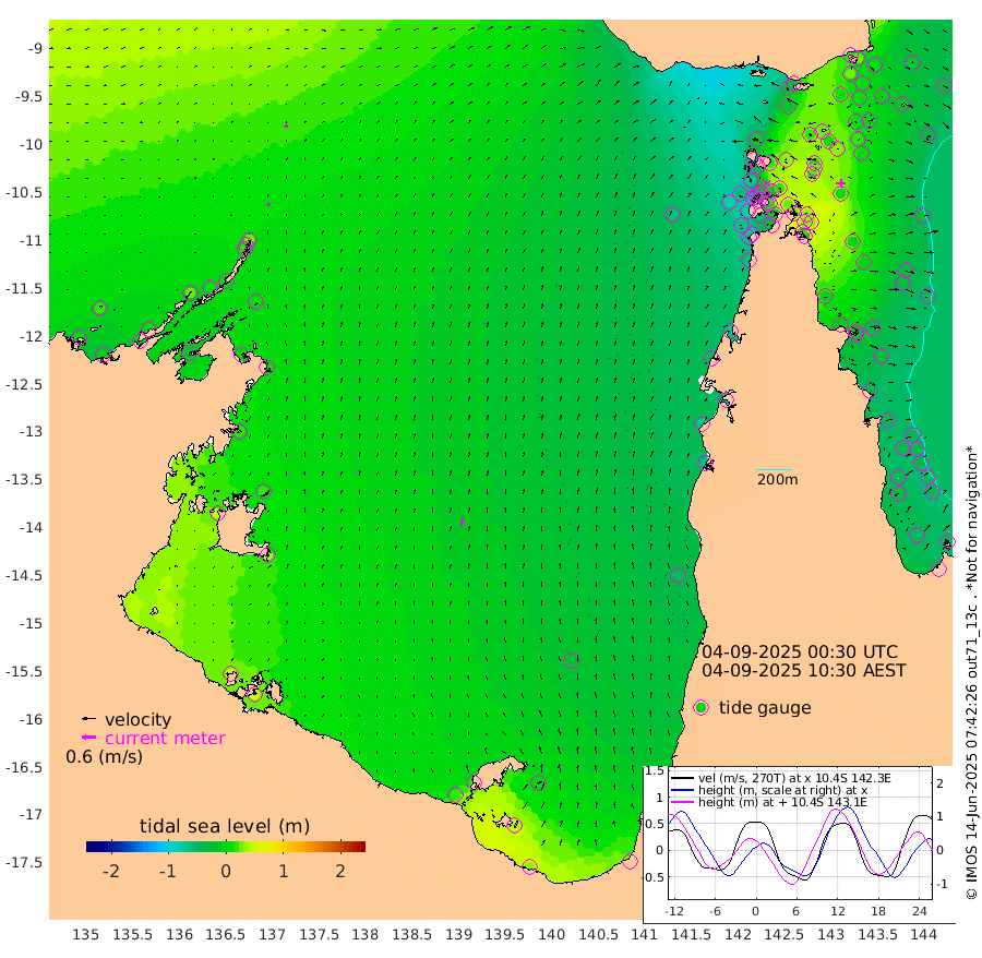 13cm/s 50T +3cm/s rms + 7cm/s -42T. ARA-GOC87 57m 31cm/s 7T +3cm/s rms + 2cm/s -2T. ARA-GOC87 60m 17cm/s 67T +2cm/s rms + 3cm/s 61T. ARA-GOC87 47m 19cm Daru 25cm Bobo Island -32cm Meer Island Barge -12cm Bramble Cay 5cm Unnamed Cay 13cm Pearce Cay -1cm Stephens Island 9cm Merrie England Shoals 25cm Mutacomal Reef -12cm Darnley Island Barge -24cm East Cay 3cm Yorke Island Barge 13cm Rennel Island 16cm Aureed Island 12cm Dungeness Reef 23cm Zagai Island 19cm Yam Island -24cm Dauan Island -10cm Saibai Island -18cm Phipi Reef 12cm Warrior Reef - West -4cm Mabuiag Island Barge 12cm Half Way Island 30cm Coconut Island 14cm Dugong Islet 27cm Poll Island 20cm Kirkcaldie Reef 30cm Suarji Island 20cm Sue Islet -69cm Hawkesbury Island 13cm Alert Patches 22cm Twin Island -50cm Badu Island 21cm St Pauls (Moa Island) -44cm Kubin (Moa Island) -1cm Ince Point -13cm Thursday Island -10cm Nardana Patches -40cm Turtle Head -50cm Round Island -70cm Goods Island -82cm Booby Island -59cm White Rocks Area -60cm Carpentaria 21cm Papou Point -81cm Bampfield Head -65cm Crab Island -67cm Red Wallis Island -53cm Packe Island 35cm Harrington Reef -87cm Herald Camp 13cm Sharp Point -22cm Red Island Point -6cm Possession Island 27cm Alpha Rock 28cm Frederick Point 31cm Wyborn Reef Light 33cm Tetley Island -21cm Triangle Reef 21cm Turtle Head Island -28cm Maclennan Cay -40cm Raine Island 5cm Mcsweeny Reef -3cm Collette Reef -29cm Shadwell Reef -4cm Hannibal Island -9cm Round Point -62cm Vrilya Point -17cm Cape Grenville -24cm Hicks Island -38cm Sir Charles Hardy Island -6cm Harvey Island -27cm Kay Reef -37cm Rocky Island -38cm Chapman Island -41cm Ham Reef -39cm Jubilee Reef -32cm Night Island -36cm Unnamed Reef No. 3 -38cm Morris Island -48cm 1st 3 Mile Opening -41cm Creech Reef -29cm Fife Island -52cm Eden Reef -42cm Stanley Island -33cm Normanby River 9cm Yabooma Island 6cm Hutchison River 11cm Elcho Island 15cm North West Crocodile Island 28cm Cape Wessel 29cm Stevens Island 2cm Guluwuru Island 14cm Hopeful Bay 21cm Auster Point 11cm Two Island Bay 7cm Cadell Strait -15cm Mallison Island 9cm Melville Bay (Gove Harbour) 11cm Truant Island 8cm Cape Arnhem 21cm Cape Grey 20cm Hawk Island 49cm Milner Bay (Groote Eylandt) 40cm Cape Beatrice 56cm West Island 56cm Centre Island 19cm Mornington Island 22cm West Wellesley Islands 13cm Bountiful Island 31cm Albert River Mouth 50cm Sweers Island 23cm Karumba -20cm Nassau River Offshore -51cm Christmas Creek -64cm Archer River -68cm Boyd Point -80cm Weipa (Humbug Point) -52cm Pennefather River -70cm Cullen Point