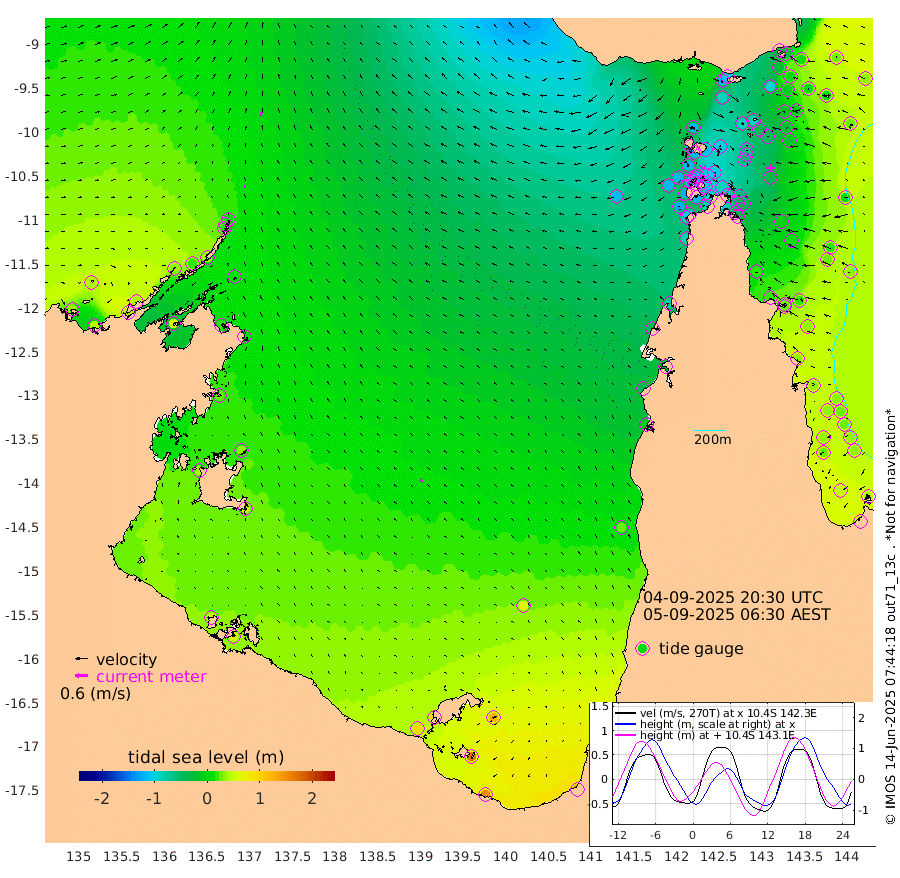 12cm/s 2T +3cm/s rms + 7cm/s -42T. ARA-GOC87 57m 18cm/s -42T +3cm/s rms + 2cm/s -2T. ARA-GOC87 60m 17cm/s 22T +2cm/s rms + 3cm/s 61T. ARA-GOC87 47m -29cm Daru -23cm Bobo Island 28cm Meer Island Barge 24cm Bramble Cay 1cm Unnamed Cay -14cm Pearce Cay 5cm Stephens Island 11cm Merrie England Shoals -24cm Mutacomal Reef 11cm Darnley Island Barge 30cm East Cay -10cm Yorke Island Barge -19cm Rennel Island -26cm Aureed Island -44cm Dungeness Reef -85cm Zagai Island -86cm Yam Island -115cm Dauan Island -108cm Saibai Island -85cm Phipi Reef -90cm Warrior Reef - West -114cm Mabuiag Island Barge -19cm Half Way Island -51cm Coconut Island -35cm Dugong Islet -73cm Poll Island -58cm Kirkcaldie Reef -104cm Suarji Island -65cm Sue Islet -114cm Hawkesbury Island -101cm Alert Patches -103cm Twin Island -121cm Badu Island -116cm St Pauls (Moa Island) -117cm Kubin (Moa Island) -112cm Ince Point -116cm Thursday Island -116cm Nardana Patches -111cm Turtle Head -104cm Round Island -111cm Goods Island -118cm Booby Island -117cm White Rocks Area -119cm Carpentaria -98cm Papou Point -120cm Bampfield Head -93cm Crab Island -123cm Red Wallis Island -119cm Packe Island -47cm Harrington Reef -107cm Herald Camp -31cm Sharp Point -88cm Red Island Point -93cm Possession Island -89cm Alpha Rock -80cm Frederick Point -43cm Wyborn Reef Light -56cm Tetley Island 1cm Triangle Reef -38cm Turtle Head Island 16cm Maclennan Cay 32cm Raine Island -7cm Mcsweeny Reef 8cm Collette Reef 24cm Shadwell Reef 16cm Hannibal Island 21cm Round Point -87cm Vrilya Point 25cm Cape Grenville 26cm Hicks Island 20cm Sir Charles Hardy Island 8cm Harvey Island 37cm Kay Reef 34cm Rocky Island 33cm Chapman Island 32cm Ham Reef 32cm Jubilee Reef 26cm Night Island 30cm Unnamed Reef No. 3 36cm Morris Island 32cm 1st 3 Mile Opening 33cm Creech Reef 30cm Fife Island 52cm Eden Reef 44cm Stanley Island 48cm Normanby River 37cm Yabooma Island 39cm Hutchison River 38cm Elcho Island 38cm North West Crocodile Island 4cm Cape Wessel 32cm Stevens Island 20cm Guluwuru Island 42cm Hopeful Bay 20cm Auster Point 20cm Two Island Bay 38cm Cadell Strait 53cm Mallison Island 17cm Melville Bay (Gove Harbour) 9cm Truant Island 8cm Cape Arnhem 29cm Cape Grey 35cm Hawk Island 45cm Milner Bay (Groote Eylandt) 48cm Cape Beatrice 50cm West Island 54cm Centre Island 92cm Mornington Island 91cm West Wellesley Islands 120cm Bountiful Island 153cm Albert River Mouth 170cm Sweers Island 152cm Karumba 62cm Nassau River Offshore 25cm Christmas Creek -9cm Archer River -43cm Boyd Point -36cm Weipa (Humbug Point) -43cm Pennefather River -79cm Cullen Point