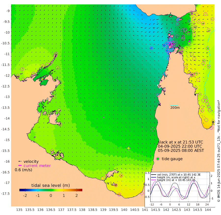 17cm/s 35T +3cm/s rms + 7cm/s -42T. ARA-GOC87 57m 22cm/s -18T +3cm/s rms + 2cm/s -2T. ARA-GOC87 60m 23cm/s 42T +2cm/s rms + 3cm/s 61T. ARA-GOC87 47m 36cm Daru 43cm Bobo Island 44cm Meer Island Barge 63cm Bramble Cay 60cm Unnamed Cay 44cm Pearce Cay 54cm Stephens Island 73cm Merrie England Shoals 50cm Mutacomal Reef 51cm Darnley Island Barge 54cm East Cay 40cm Yorke Island Barge 41cm Rennel Island 31cm Aureed Island 12cm Dungeness Reef -33cm Zagai Island -34cm Yam Island -103cm Dauan Island -88cm Saibai Island -67cm Phipi Reef -44cm Warrior Reef - West -90cm Mabuiag Island Barge 39cm Half Way Island 18cm Coconut Island 26cm Dugong Islet -11cm Poll Island 1cm Kirkcaldie Reef -45cm Suarji Island -9cm Sue Islet -124cm Hawkesbury Island -49cm Alert Patches -46cm Twin Island -124cm Badu Island -63cm St Pauls (Moa Island) -112cm Kubin (Moa Island) -76cm Ince Point -90cm Thursday Island -88cm Nardana Patches -103cm Turtle Head -105cm Round Island -126cm Goods Island -145cm Booby Island -129cm White Rocks Area -139cm Carpentaria -51cm Papou Point -139cm Bampfield Head -117cm Crab Island -140cm Red Wallis Island -119cm Packe Island 29cm Harrington Reef -133cm Herald Camp -14cm Sharp Point -77cm Red Island Point -63cm Possession Island -28cm Alpha Rock -15cm Frederick Point 34cm Wyborn Reef Light 21cm Tetley Island 23cm Triangle Reef 33cm Turtle Head Island 33cm Maclennan Cay 35cm Raine Island 47cm Mcsweeny Reef 54cm Collette Reef 43cm Shadwell Reef 66cm Hannibal Island 64cm Round Point -111cm Vrilya Point 58cm Cape Grenville 50cm Hicks Island 38cm Sir Charles Hardy Island 17cm Harvey Island 62cm Kay Reef 44cm Rocky Island 41cm Chapman Island 37cm Ham Reef 40cm Jubilee Reef 36cm Night Island 38cm Unnamed Reef No. 3 47cm Morris Island 33cm 1st 3 Mile Opening 39cm Creech Reef 45cm Fife Island 56cm Eden Reef 54cm Stanley Island 65cm Normanby River 40cm Yabooma Island 44cm Hutchison River 40cm Elcho Island 40cm North West Crocodile Island 27cm Cape Wessel 54cm Stevens Island 37cm Guluwuru Island 52cm Hopeful Bay 37cm Auster Point 29cm Two Island Bay 48cm Cadell Strait 102cm Mallison Island 35cm Melville Bay (Gove Harbour) 30cm Truant Island 22cm Cape Arnhem 41cm Cape Grey 44cm Hawk Island 57cm Milner Bay (Groote Eylandt) 55cm Cape Beatrice 59cm West Island 60cm Centre Island 80cm Mornington Island 82cm West Wellesley Islands 100cm Bountiful Island 125cm Albert River Mouth 151cm Sweers Island 121cm Karumba 40cm Nassau River Offshore -2cm Christmas Creek -37cm Archer River -70cm Boyd Point -72cm Weipa (Humbug Point) -63cm Pennefather River -109cm Cullen Point