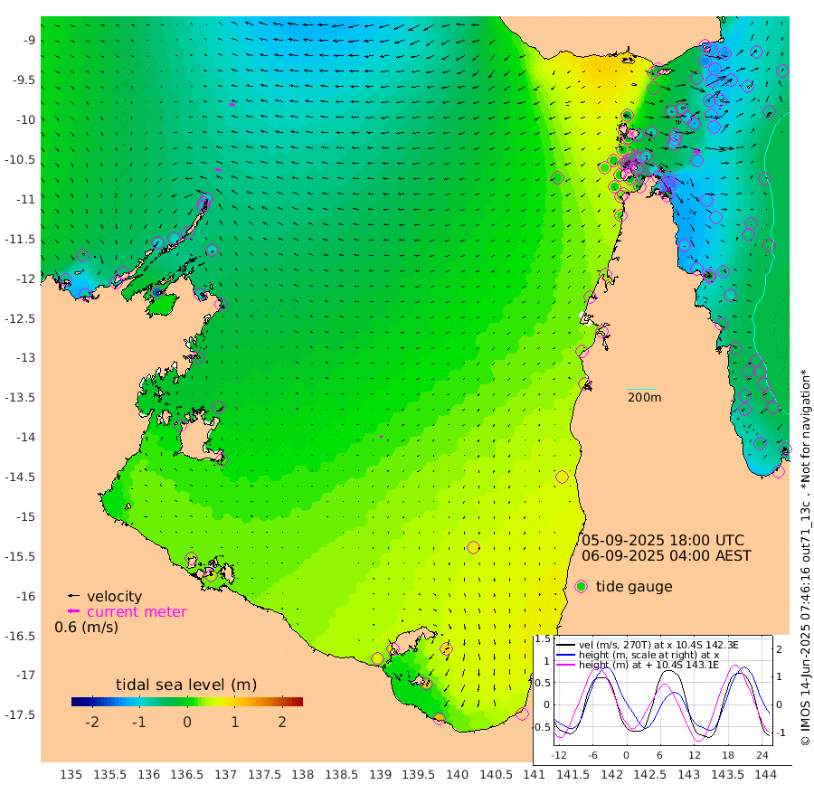 31cm/s -81T +3cm/s rms + 7cm/s -42T. ARA-GOC87 57m 14cm/s -113T +3cm/s rms + 2cm/s -2T. ARA-GOC87 60m 29cm/s -83T +2cm/s rms + 3cm/s 61T. ARA-GOC87 47m -119cm Daru -121cm Bobo Island -60cm Meer Island Barge -96cm Bramble Cay -121cm Unnamed Cay -116cm Pearce Cay -108cm Stephens Island -129cm Merrie England Shoals -135cm Mutacomal Reef -95cm Darnley Island Barge -70cm East Cay -105cm Yorke Island Barge -115cm Rennel Island -106cm Aureed Island -99cm Dungeness Reef -78cm Zagai Island -79cm Yam Island -6cm Dauan Island -18cm Saibai Island -7cm Phipi Reef -64cm Warrior Reef - West -31cm Mabuiag Island Barge -115cm Half Way Island -117cm Coconut Island -116cm Dugong Islet -101cm Poll Island -101cm Kirkcaldie Reef -80cm Suarji Island -95cm Sue Islet -3cm Hawkesbury Island -79cm Alert Patches -87cm Twin Island -7cm Badu Island -77cm St Pauls (Moa Island) -20cm Kubin (Moa Island) -56cm Ince Point -43cm Thursday Island -45cm Nardana Patches -19cm Turtle Head -6cm Round Island 5cm Goods Island 20cm Booby Island -1cm White Rocks Area 9cm Carpentaria -72cm Papou Point 7cm Bampfield Head 26cm Crab Island 11cm Red Wallis Island -10cm Packe Island -134cm Harrington Reef 28cm Herald Camp -18cm Sharp Point -18cm Red Island Point -45cm Possession Island -97cm Alpha Rock -107cm Frederick Point -138cm Wyborn Reef Light -134cm Tetley Island -60cm Triangle Reef -139cm Turtle Head Island -59cm Maclennan Cay -38cm Raine Island -111cm Mcsweeny Reef -99cm Collette Reef -61cm Shadwell Reef -111cm Hannibal Island -102cm Round Point 22cm Vrilya Point -86cm Cape Grenville -72cm Hicks Island -67cm Sir Charles Hardy Island -24cm Harvey Island -76cm Kay Reef -49cm Rocky Island -44cm Chapman Island -41cm Ham Reef -49cm Jubilee Reef -45cm Night Island -45cm Unnamed Reef No. 3 -54cm Morris Island -41cm 1st 3 Mile Opening -46cm Creech Reef -55cm Fife Island -52cm Eden Reef -55cm Stanley Island -68cm Normanby River -64cm Yabooma Island -76cm Hutchison River -58cm Elcho Island -52cm North West Crocodile Island -87cm Cape Wessel -91cm Stevens Island -89cm Guluwuru Island -64cm Hopeful Bay -77cm Auster Point -71cm Two Island Bay -85cm Cadell Strait -163cm Mallison Island -75cm Melville Bay (Gove Harbour) -86cm Truant Island -52cm Cape Arnhem -33cm Cape Grey -11cm Hawk Island 2cm Milner Bay (Groote Eylandt) 15cm Cape Beatrice 33cm West Island 42cm Centre Island 81cm Mornington Island 72cm West Wellesley Islands 96cm Bountiful Island 125cm Albert River Mouth 118cm Sweers Island 134cm Karumba 78cm Nassau River Offshore 66cm Christmas Creek 48cm Archer River 35cm Boyd Point 50cm Weipa (Humbug Point) 24cm Pennefather River 36cm Cullen Point