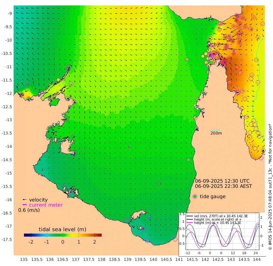 8cm/s 144T +3cm/s rms + 7cm/s -42T. ARA-GOC87 57m 33cm/s 169T +3cm/s rms + 2cm/s -2T. ARA-GOC87 60m 7cm/s -126T +2cm/s rms + 3cm/s 61T. ARA-GOC87 47m 188cm Daru 175cm Bobo Island 92cm Meer Island Barge 136cm Bramble Cay 175cm Unnamed Cay 171cm Pearce Cay 158cm Stephens Island 179cm Merrie England Shoals 201cm Mutacomal Reef 140cm Darnley Island Barge 104cm East Cay 158cm Yorke Island Barge 178cm Rennel Island 163cm Aureed Island 174cm Dungeness Reef 153cm Zagai Island 164cm Yam Island 122cm Dauan Island 111cm Saibai Island 122cm Phipi Reef 165cm Warrior Reef - West 108cm Mabuiag Island Barge 173cm Half Way Island 180cm Coconut Island 185cm Dugong Islet 176cm Poll Island 177cm Kirkcaldie Reef 162cm Suarji Island 164cm Sue Islet 97cm Hawkesbury Island 163cm Alert Patches 167cm Twin Island 93cm Badu Island 164cm St Pauls (Moa Island) 114cm Kubin (Moa Island) 141cm Ince Point 126cm Thursday Island 130cm Nardana Patches 113cm Turtle Head 90cm Round Island 84cm Goods Island 57cm Booby Island 73cm White Rocks Area 30cm Carpentaria 139cm Papou Point 62cm Bampfield Head 39cm Crab Island 71cm Red Wallis Island 110cm Packe Island 198cm Harrington Reef 74cm Herald Camp 44cm Sharp Point 90cm Red Island Point 118cm Possession Island 167cm Alpha Rock 181cm Frederick Point 200cm Wyborn Reef Light 199cm Tetley Island 99cm Triangle Reef 195cm Turtle Head Island 97cm Maclennan Cay 63cm Raine Island 162cm Mcsweeny Reef 146cm Collette Reef 97cm Shadwell Reef 157cm Hannibal Island 144cm Round Point 29cm Vrilya Point 125cm Cape Grenville 109cm Hicks Island 112cm Sir Charles Hardy Island 37cm Harvey Island 105cm Kay Reef 79cm Rocky Island 71cm Chapman Island 66cm Ham Reef 76cm Jubilee Reef 76cm Night Island 72cm Unnamed Reef No. 3 83cm Morris Island 69cm 1st 3 Mile Opening 76cm Creech Reef 89cm Fife Island 79cm Eden Reef 84cm Stanley Island 93cm Normanby River -10cm Yabooma Island 2cm Hutchison River -17cm Elcho Island -18cm North West Crocodile Island 16cm Cape Wessel 10cm Stevens Island 41cm Guluwuru Island -7cm Hopeful Bay 4cm Auster Point 4cm Two Island Bay 19cm Cadell Strait 130cm Mallison Island 29cm Melville Bay (Gove Harbour) 35cm Truant Island 20cm Cape Arnhem -5cm Cape Grey -11cm Hawk Island -51cm Milner Bay (Groote Eylandt) -41cm Cape Beatrice -62cm West Island -74cm Centre Island -52cm Mornington Island -46cm West Wellesley Islands -73cm Bountiful Island -108cm Albert River Mouth -134cm Sweers Island -103cm Karumba -12cm Nassau River Offshore 19cm Christmas Creek 20cm Archer River 32cm Boyd Point 25cm Weipa (Humbug Point) 23cm Pennefather River 27cm Cullen Point