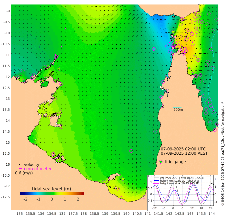 19cm/s 51T +3cm/s rms + 7cm/s -42T. ARA-GOC87 57m 26cm/s 11T +3cm/s rms + 2cm/s -2T. ARA-GOC87 60m 23cm/s 52T +2cm/s rms + 3cm/s 61T. ARA-GOC87 47m 66cm Daru 64cm Bobo Island -25cm Meer Island Barge 2cm Bramble Cay 37cm Unnamed Cay 37cm Pearce Cay 21cm Stephens Island 34cm Merrie England Shoals 64cm Mutacomal Reef 14cm Darnley Island Barge -22cm East Cay 40cm Yorke Island Barge 42cm Rennel Island 51cm Aureed Island 55cm Dungeness Reef 87cm Zagai Island 72cm Yam Island 45cm Dauan Island 61cm Saibai Island 61cm Phipi Reef 79cm Warrior Reef - West 39cm Mabuiag Island Barge 38cm Half Way Island 73cm Coconut Island 47cm Dugong Islet 71cm Poll Island 62cm Kirkcaldie Reef 84cm Suarji Island 74cm Sue Islet -82cm Hawkesbury Island 57cm Alert Patches 63cm Twin Island -46cm Badu Island 71cm St Pauls (Moa Island) -39cm Kubin (Moa Island) 29cm Ince Point 6cm Thursday Island 13cm Nardana Patches -34cm Turtle Head -41cm Round Island -91cm Goods Island -117cm Booby Island -100cm White Rocks Area -94cm Carpentaria 58cm Papou Point -93cm Bampfield Head -96cm Crab Island -107cm Red Wallis Island -66cm Packe Island 71cm Harrington Reef -95cm Herald Camp 34cm Sharp Point -22cm Red Island Point 28cm Possession Island 68cm Alpha Rock 69cm Frederick Point 75cm Wyborn Reef Light 80cm Tetley Island -10cm Triangle Reef 60cm Turtle Head Island -25cm Maclennan Cay -46cm Raine Island 33cm Mcsweeny Reef 23cm Collette Reef -16cm Shadwell Reef 22cm Hannibal Island 1cm Round Point -97cm Vrilya Point -9cm Cape Grenville -16cm Hicks Island -31cm Sir Charles Hardy Island -3cm Harvey Island -26cm Kay Reef -38cm Rocky Island -45cm Chapman Island -46cm Ham Reef -41cm Jubilee Reef -34cm Night Island -46cm Unnamed Reef No. 3 -41cm Morris Island -49cm 1st 3 Mile Opening -45cm Creech Reef -35cm Fife Island -61cm Eden Reef -47cm Stanley Island -44cm Normanby River -46cm Yabooma Island -41cm Hutchison River -39cm Elcho Island -37cm North West Crocodile Island 8cm Cape Wessel -4cm Stevens Island 21cm Guluwuru Island -16cm Hopeful Bay 0cm Auster Point -13cm Two Island Bay -15cm Cadell Strait 74cm Mallison Island 23cm Melville Bay (Gove Harbour) 25cm Truant Island 26cm Cape Arnhem 41cm Cape Grey 42cm Hawk Island 59cm Milner Bay (Groote Eylandt) 45cm Cape Beatrice 61cm West Island 63cm Centre Island 42cm Mornington Island 37cm West Wellesley Islands 41cm Bountiful Island 45cm Albert River Mouth 83cm Sweers Island 44cm Karumba -11cm Nassau River Offshore -45cm Christmas Creek -72cm Archer River -77cm Boyd Point -96cm Weipa (Humbug Point) -68cm Pennefather River -95cm Cullen Point