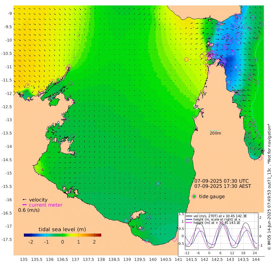 11cm/s 155T +3cm/s rms + 7cm/s -42T. ARA-GOC87 57m 9cm/s 31T +3cm/s rms + 2cm/s -2T. ARA-GOC87 60m 17cm/s 148T +2cm/s rms + 3cm/s 61T. ARA-GOC87 47m -142cm Daru -128cm Bobo Island -29cm Meer Island Barge -68cm Bramble Cay -109cm Unnamed Cay -108cm Pearce Cay -92cm Stephens Island -110cm Merrie England Shoals -141cm Mutacomal Reef -78cm Darnley Island Barge -38cm East Cay -104cm Yorke Island Barge -118cm Rennel Island -114cm Aureed Island -129cm Dungeness Reef -137cm Zagai Island -133cm Yam Island -113cm Dauan Island -103cm Saibai Island -138cm Phipi Reef -149cm Warrior Reef - West -72cm Mabuiag Island Barge -110cm Half Way Island -136cm Coconut Island -121cm Dugong Islet -134cm Poll Island -132cm Kirkcaldie Reef -135cm Suarji Island -126cm Sue Islet 18cm Hawkesbury Island -116cm Alert Patches -119cm Twin Island -6cm Badu Island -125cm St Pauls (Moa Island) -25cm Kubin (Moa Island) -85cm Ince Point -59cm Thursday Island -67cm Nardana Patches -33cm Turtle Head -15cm Round Island 27cm Goods Island 67cm Booby Island 51cm White Rocks Area 87cm Carpentaria -99cm Papou Point 56cm Bampfield Head 49cm Crab Island 49cm Red Wallis Island -11cm Packe Island -140cm Harrington Reef 24cm Herald Camp -48cm Sharp Point -27cm Red Island Point -75cm Possession Island -118cm Alpha Rock -131cm Frederick Point -141cm Wyborn Reef Light -143cm Tetley Island -42cm Triangle Reef -125cm Turtle Head Island -30cm Maclennan Cay -3cm Raine Island -100cm Mcsweeny Reef -88cm Collette Reef -40cm Shadwell Reef -92cm Hannibal Island -72cm Round Point 60cm Vrilya Point -56cm Cape Grenville -45cm Hicks Island -33cm Sir Charles Hardy Island -17cm Harvey Island -31cm Kay Reef -15cm Rocky Island -4cm Chapman Island 0cm Ham Reef -9cm Jubilee Reef -20cm Night Island -4cm Unnamed Reef No. 3 -14cm Morris Island -1cm 1st 3 Mile Opening -9cm Creech Reef -26cm Fife Island 0cm Eden Reef -12cm Stanley Island -15cm Normanby River 86cm Yabooma Island 78cm Hutchison River 80cm Elcho Island 75cm North West Crocodile Island 47cm Cape Wessel 50cm Stevens Island 12cm Guluwuru Island 56cm Hopeful Bay 51cm Auster Point 56cm Two Island Bay 47cm Cadell Strait -74cm Mallison Island 9cm Melville Bay (Gove Harbour) 13cm Truant Island -2cm Cape Arnhem -7cm Cape Grey -27cm Hawk Island -17cm Milner Bay (Groote Eylandt) -27cm Cape Beatrice -34cm West Island -34cm Centre Island -85cm Mornington Island -77cm West Wellesley Islands -74cm Bountiful Island -90cm Albert River Mouth -93cm Sweers Island -101cm Karumba -68cm Nassau River Offshore -45cm Christmas Creek 4cm Archer River 21cm Boyd Point 29cm Weipa (Humbug Point) 24cm Pennefather River 50cm Cullen Point