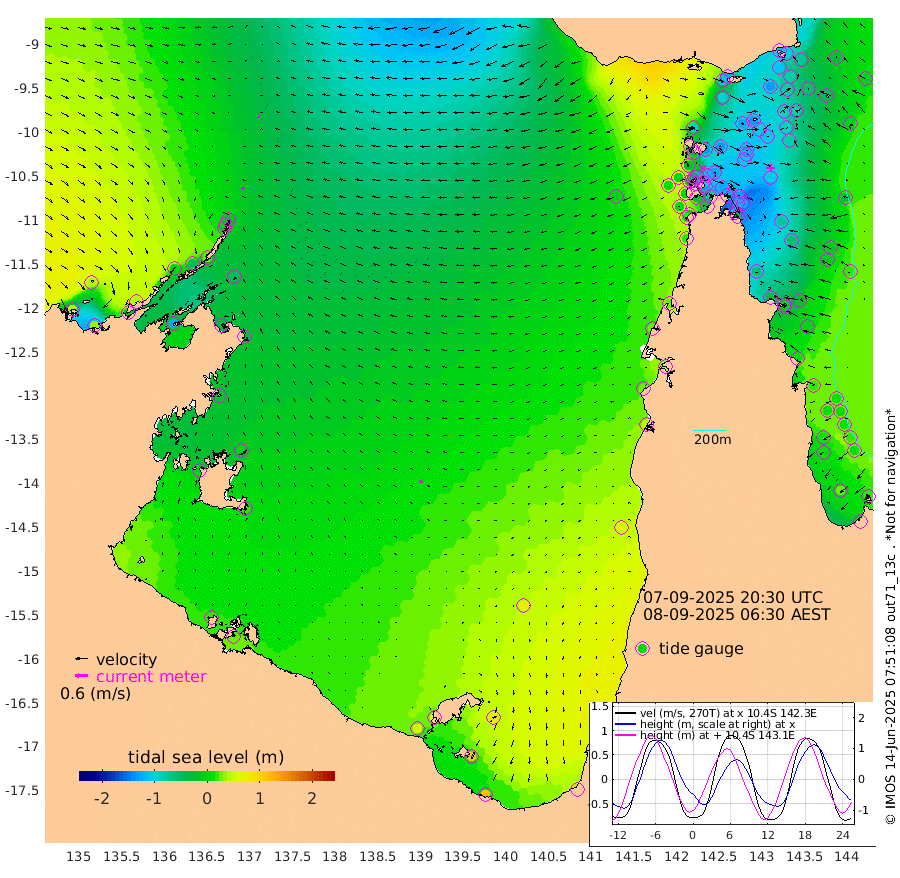 16cm/s -92T +3cm/s rms + 7cm/s -42T. ARA-GOC87 57m 15cm/s -74T +3cm/s rms + 2cm/s -2T. ARA-GOC87 60m 11cm/s -96T +2cm/s rms + 3cm/s 61T. ARA-GOC87 47m -106cm Daru -98cm Bobo Island -7cm Meer Island Barge -34cm Bramble Cay -76cm Unnamed Cay -75cm Pearce Cay -58cm Stephens Island -69cm Merrie England Shoals -106cm Mutacomal Reef -52cm Darnley Island Barge -8cm East Cay -80cm Yorke Island Barge -83cm Rennel Island -87cm Aureed Island -98cm Dungeness Reef -133cm Zagai Island -127cm Yam Island -110cm Dauan Island -123cm Saibai Island -93cm Phipi Reef -130cm Warrior Reef - West -104cm Mabuiag Island Barge -82cm Half Way Island -112cm Coconut Island -98cm Dugong Islet -119cm Poll Island -111cm Kirkcaldie Reef -130cm Suarji Island -125cm Sue Islet -22cm Hawkesbury Island -115cm Alert Patches -122cm Twin Island -43cm Badu Island -133cm St Pauls (Moa Island) -51cm Kubin (Moa Island) -98cm Ince Point -81cm Thursday Island -86cm Nardana Patches -48cm Turtle Head -32cm Round Island -7cm Goods Island 13cm Booby Island 1cm White Rocks Area -7cm Carpentaria -114cm Papou Point -1cm Bampfield Head 20cm Crab Island 3cm Red Wallis Island -26cm Packe Island -115cm Harrington Reef 2cm Herald Camp -45cm Sharp Point -42cm Red Island Point -77cm Possession Island -125cm Alpha Rock -122cm Frederick Point -120cm Wyborn Reef Light -128cm Tetley Island -25cm Triangle Reef -108cm Turtle Head Island -11cm Maclennan Cay 19cm Raine Island -71cm Mcsweeny Reef -55cm Collette Reef -13cm Shadwell Reef -55cm Hannibal Island -33cm Round Point 21cm Vrilya Point -23cm Cape Grenville -14cm Hicks Island -17cm Sir Charles Hardy Island -7cm Harvey Island -5cm Kay Reef 9cm Rocky Island 17cm Chapman Island 15cm Ham Reef 8cm Jubilee Reef 8cm Night Island 15cm Unnamed Reef No. 3 11cm Morris Island 17cm 1st 3 Mile Opening 14cm Creech Reef 8cm Fife Island 28cm Eden Reef 17cm Stanley Island 14cm Normanby River 39cm Yabooma Island 31cm Hutchison River 38cm Elcho Island 38cm North West Crocodile Island -29cm Cape Wessel 3cm Stevens Island -51cm Guluwuru Island 23cm Hopeful Bay -6cm Auster Point -4cm Two Island Bay -2cm Cadell Strait -123cm Mallison Island -37cm Melville Bay (Gove Harbour) -45cm Truant Island -33cm Cape Arnhem -22cm Cape Grey -5cm Hawk Island 6cm Milner Bay (Groote Eylandt) 15cm Cape Beatrice 18cm West Island 27cm Centre Island 64cm Mornington Island 60cm West Wellesley Islands 77cm Bountiful Island 115cm Albert River Mouth 112cm Sweers Island 120cm Karumba 68cm Nassau River Offshore 55cm Christmas Creek 49cm Archer River 25cm Boyd Point 46cm Weipa (Humbug Point) 29cm Pennefather River 25cm Cullen Point