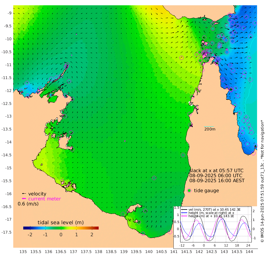 13cm/s -76T +3cm/s rms + 7cm/s -42T. ARA-GOC87 57m 20cm/s 24T +3cm/s rms + 2cm/s -2T. ARA-GOC87 60m 9cm/s -114T +2cm/s rms + 3cm/s 61T. ARA-GOC87 47m -149cm Daru -146cm Bobo Island -106cm Meer Island Barge -139cm Bramble Cay -153cm Unnamed Cay -154cm Pearce Cay -150cm Stephens Island -160cm Merrie England Shoals -154cm Mutacomal Reef -133cm Darnley Island Barge -119cm East Cay -133cm Yorke Island Barge -149cm Rennel Island -132cm Aureed Island -132cm Dungeness Reef -79cm Zagai Island -87cm Yam Island -39cm Dauan Island -15cm Saibai Island -64cm Phipi Reef -90cm Warrior Reef - West -10cm Mabuiag Island Barge -146cm Half Way Island -128cm Coconut Island -142cm Dugong Islet -110cm Poll Island -119cm Kirkcaldie Reef -74cm Suarji Island -91cm Sue Islet -12cm Hawkesbury Island -73cm Alert Patches -78cm Twin Island -8cm Badu Island -67cm St Pauls (Moa Island) -33cm Kubin (Moa Island) -50cm Ince Point -35cm Thursday Island -38cm Nardana Patches -34cm Turtle Head -16cm Round Island -10cm Goods Island 24cm Booby Island 8cm White Rocks Area 72cm Carpentaria -58cm Papou Point 27cm Bampfield Head 18cm Crab Island 14cm Red Wallis Island -30cm Packe Island -147cm Harrington Reef 1cm Herald Camp -12cm Sharp Point -25cm Red Island Point -45cm Possession Island -76cm Alpha Rock -107cm Frederick Point -143cm Wyborn Reef Light -134cm Tetley Island -92cm Triangle Reef -153cm Turtle Head Island -101cm Maclennan Cay -85cm Raine Island -140cm Mcsweeny Reef -132cm Collette Reef -102cm Shadwell Reef -147cm Hannibal Island -146cm Round Point 32cm Vrilya Point -125cm Cape Grenville -121cm Hicks Island -111cm Sir Charles Hardy Island -39cm Harvey Island -113cm Kay Reef -96cm Rocky Island -87cm Chapman Island -80cm Ham Reef -91cm Jubilee Reef -92cm Night Island -85cm Unnamed Reef No. 3 -103cm Morris Island -89cm 1st 3 Mile Opening -94cm Creech Reef -110cm Fife Island -112cm Eden Reef -105cm Stanley Island -120cm Normanby River -86cm Yabooma Island -113cm Hutchison River -82cm Elcho Island -79cm North West Crocodile Island -49cm Cape Wessel -87cm Stevens Island -77cm Guluwuru Island -70cm Hopeful Bay -60cm Auster Point -66cm Two Island Bay -117cm Cadell Strait -113cm Mallison Island -68cm Melville Bay (Gove Harbour) -68cm Truant Island -43cm Cape Arnhem -21cm Cape Grey -21cm Hawk Island 18cm Milner Bay (Groote Eylandt) 6cm Cape Beatrice 40cm West Island 47cm Centre Island -22cm Mornington Island -21cm West Wellesley Islands -20cm Bountiful Island -36cm Albert River Mouth -15cm Sweers Island -41cm Karumba -44cm Nassau River Offshore -43cm Christmas Creek -17cm Archer River 0cm Boyd Point -6cm Weipa (Humbug Point) 5cm Pennefather River 29cm Cullen Point