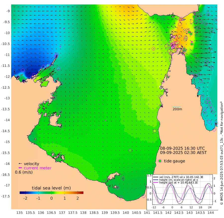 22cm/s -78T +3cm/s rms + 7cm/s -42T. ARA-GOC87 57m 20cm/s 166T +3cm/s rms + 2cm/s -2T. ARA-GOC87 60m 30cm/s -87T +2cm/s rms + 3cm/s 61T. ARA-GOC87 47m 5cm Daru -14cm Bobo Island -64cm Meer Island Barge -62cm Bramble Cay -35cm Unnamed Cay -37cm Pearce Cay -47cm Stephens Island -43cm Merrie England Shoals -2cm Mutacomal Reef -44cm Darnley Island Barge -71cm East Cay -19cm Yorke Island Barge -18cm Rennel Island -12cm Aureed Island 12cm Dungeness Reef 75cm Zagai Island 76cm Yam Island 126cm Dauan Island 127cm Saibai Island 96cm Phipi Reef 90cm Warrior Reef - West 97cm Mabuiag Island Barge -17cm Half Way Island 15cm Coconut Island 1cm Dugong Islet 43cm Poll Island 37cm Kirkcaldie Reef 67cm Suarji Island 52cm Sue Islet 46cm Hawkesbury Island 66cm Alert Patches 67cm Twin Island 60cm Badu Island 86cm St Pauls (Moa Island) 57cm Kubin (Moa Island) 74cm Ince Point 70cm Thursday Island 73cm Nardana Patches 57cm Turtle Head 42cm Round Island 36cm Goods Island 36cm Booby Island 27cm White Rocks Area 54cm Carpentaria 67cm Papou Point 18cm Bampfield Head 40cm Crab Island 49cm Red Wallis Island 55cm Packe Island 3cm Harrington Reef 46cm Herald Camp 41cm Sharp Point 48cm Red Island Point 46cm Possession Island 65cm Alpha Rock 43cm Frederick Point 5cm Wyborn Reef Light 20cm Tetley Island -35cm Triangle Reef -20cm Turtle Head Island -54cm Maclennan Cay -68cm Raine Island -31cm Mcsweeny Reef -38cm Collette Reef -51cm Shadwell Reef -50cm Hannibal Island -66cm Round Point 44cm Vrilya Point -60cm Cape Grenville -65cm Hicks Island -57cm Sir Charles Hardy Island -18cm Harvey Island -73cm Kay Reef -71cm Rocky Island -72cm Chapman Island -65cm Ham Reef -67cm Jubilee Reef -58cm Night Island -65cm Unnamed Reef No. 3 -76cm Morris Island -74cm 1st 3 Mile Opening -70cm Creech Reef -69cm Fife Island -97cm Eden Reef -79cm Stanley Island -93cm Normanby River -197cm Yabooma Island -217cm Hutchison River -188cm Elcho Island -177cm North West Crocodile Island -114cm Cape Wessel -166cm Stevens Island -93cm Guluwuru Island -161cm Hopeful Bay -141cm Auster Point -136cm Two Island Bay -169cm Cadell Strait -13cm Mallison Island -95cm Melville Bay (Gove Harbour) -97cm Truant Island -56cm Cape Arnhem -51cm Cape Grey -36cm Hawk Island -27cm Milner Bay (Groote Eylandt) -13cm Cape Beatrice 14cm West Island 13cm Centre Island 12cm Mornington Island 10cm West Wellesley Islands -24cm Bountiful Island -23cm Albert River Mouth -52cm Sweers Island -19cm Karumba 19cm Nassau River Offshore 30cm Christmas Creek 19cm Archer River 32cm Boyd Point 20cm Weipa (Humbug Point) 29cm Pennefather River 46cm Cullen Point