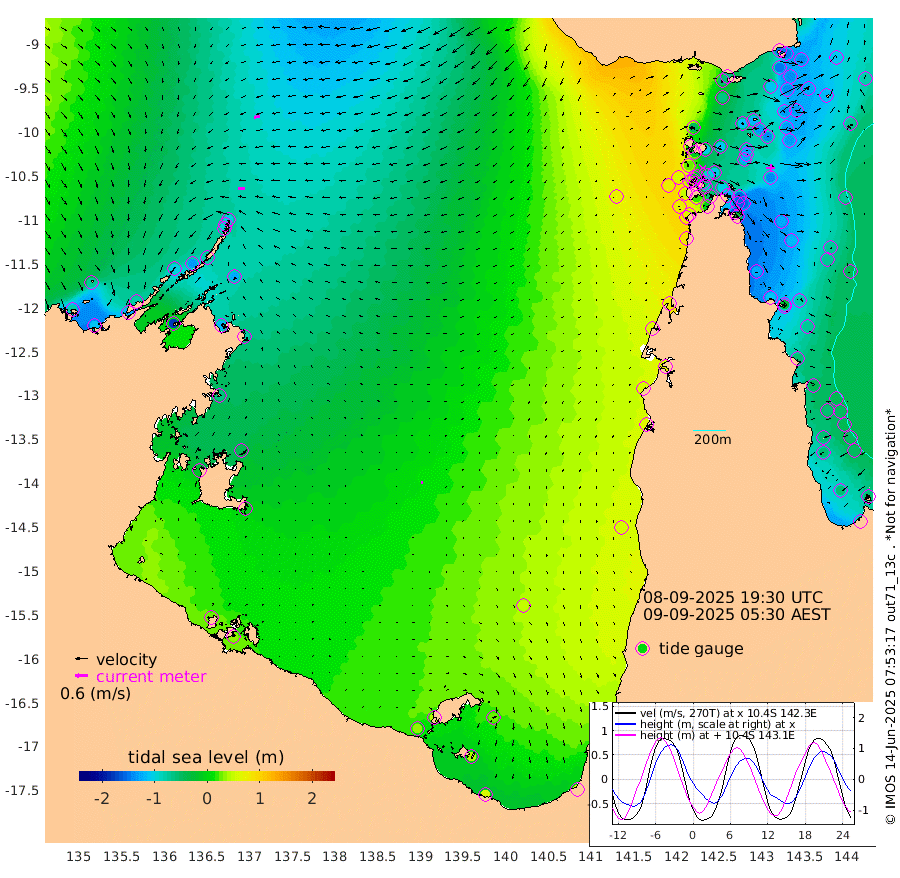 31cm/s -91T +3cm/s rms + 7cm/s -42T. ARA-GOC87 57m 7cm/s -104T +3cm/s rms + 2cm/s -2T. ARA-GOC87 60m 31cm/s -102T +2cm/s rms + 3cm/s 61T. ARA-GOC87 47m -148cm Daru -149cm Bobo Island -73cm Meer Island Barge -107cm Bramble Cay -139cm Unnamed Cay -138cm Pearce Cay -127cm Stephens Island -135cm Merrie England Shoals -149cm Mutacomal Reef -116cm Darnley Island Barge -79cm East Cay -132cm Yorke Island Barge -134cm Rennel Island -133cm Aureed Island -130cm Dungeness Reef -118cm Zagai Island -111cm Yam Island -56cm Dauan Island -62cm Saibai Island -67cm Phipi Reef -112cm Warrior Reef - West -46cm Mabuiag Island Barge -131cm Half Way Island -139cm Coconut Island -136cm Dugong Islet -125cm Poll Island -122cm Kirkcaldie Reef -112cm Suarji Island -123cm Sue Islet 28cm Hawkesbury Island -92cm Alert Patches -100cm Twin Island 11cm Badu Island -99cm St Pauls (Moa Island) -9cm Kubin (Moa Island) -59cm Ince Point -37cm Thursday Island -43cm Nardana Patches -6cm Turtle Head 6cm Round Island 39cm Goods Island 73cm Booby Island 54cm White Rocks Area 74cm Carpentaria -87cm Papou Point 46cm Bampfield Head 76cm Crab Island 69cm Red Wallis Island 22cm Packe Island -152cm Harrington Reef 50cm Herald Camp -27cm Sharp Point -4cm Red Island Point -56cm Possession Island -104cm Alpha Rock -124cm Frederick Point -156cm Wyborn Reef Light -152cm Tetley Island -69cm Triangle Reef -160cm Turtle Head Island -68cm Maclennan Cay -40cm Raine Island -127cm Mcsweeny Reef -113cm Collette Reef -70cm Shadwell Reef -125cm Hannibal Island -108cm Round Point 83cm Vrilya Point -90cm Cape Grenville -84cm Hicks Island -79cm Sir Charles Hardy Island -28cm Harvey Island -74cm Kay Reef -56cm Rocky Island -43cm Chapman Island -41cm Ham Reef -53cm Jubilee Reef -48cm Night Island -41cm Unnamed Reef No. 3 -58cm Morris Island -47cm 1st 3 Mile Opening -50cm Creech Reef -58cm Fife Island -55cm Eden Reef -54cm Stanley Island -68cm Normanby River -79cm Yabooma Island -110cm Hutchison River -77cm Elcho Island -70cm North West Crocodile Island -100cm Cape Wessel -103cm Stevens Island -131cm Guluwuru Island -79cm Hopeful Bay -96cm Auster Point -93cm Two Island Bay -126cm Cadell Strait -180cm Mallison Island -113cm Melville Bay (Gove Harbour) -122cm Truant Island -82cm Cape Arnhem -66cm Cape Grey -42cm Hawk Island -16cm Milner Bay (Groote Eylandt) -1cm Cape Beatrice 24cm West Island 34cm Centre Island 39cm Mornington Island 37cm West Wellesley Islands 28cm Bountiful Island 58cm Albert River Mouth 38cm Sweers Island 63cm Karumba 52cm Nassau River Offshore 55cm Christmas Creek 63cm Archer River 55cm Boyd Point 68cm Weipa (Humbug Point) 63cm Pennefather River 81cm Cullen Point