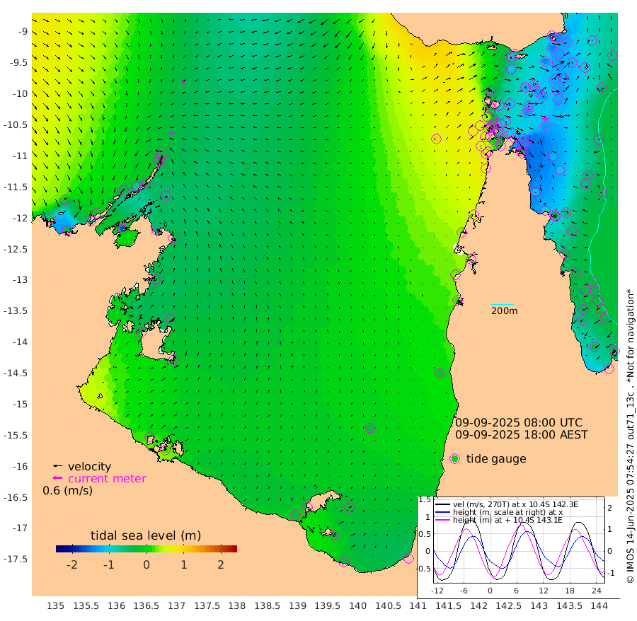21cm/s -95T +3cm/s rms + 7cm/s -42T. ARA-GOC87 57m 11cm/s 14T +3cm/s rms + 2cm/s -2T. ARA-GOC87 60m 18cm/s -122T +2cm/s rms + 3cm/s 61T. ARA-GOC87 47m -148cm Daru -140cm Bobo Island -56cm Meer Island Barge -90cm Bramble Cay -122cm Unnamed Cay -126cm Pearce Cay -113cm Stephens Island -122cm Merrie England Shoals -141cm Mutacomal Reef -100cm Darnley Island Barge -63cm East Cay -118cm Yorke Island Barge -127cm Rennel Island -123cm Aureed Island -131cm Dungeness Reef -127cm Zagai Island -122cm Yam Island -95cm Dauan Island -79cm Saibai Island -112cm Phipi Reef -137cm Warrior Reef - West -47cm Mabuiag Island Barge -125cm Half Way Island -135cm Coconut Island -129cm Dugong Islet -128cm Poll Island -129cm Kirkcaldie Reef -108cm Suarji Island -117cm Sue Islet 30cm Hawkesbury Island -92cm Alert Patches -101cm Twin Island 6cm Badu Island -105cm St Pauls (Moa Island) -16cm Kubin (Moa Island) -65cm Ince Point -41cm Thursday Island -48cm Nardana Patches -18cm Turtle Head 6cm Round Island 35cm Goods Island 76cm Booby Island 63cm White Rocks Area 97cm Carpentaria -87cm Papou Point 76cm Bampfield Head 54cm Crab Island 60cm Red Wallis Island 2cm Packe Island -142cm Harrington Reef 43cm Herald Camp -36cm Sharp Point -12cm Red Island Point -52cm Possession Island -99cm Alpha Rock -121cm Frederick Point -141cm Wyborn Reef Light -140cm Tetley Island -58cm Triangle Reef -138cm Turtle Head Island -52cm Maclennan Cay -28cm Raine Island -113cm Mcsweeny Reef -100cm Collette Reef -58cm Shadwell Reef -109cm Hannibal Island -92cm Round Point 64cm Vrilya Point -73cm Cape Grenville -68cm Hicks Island -56cm Sir Charles Hardy Island -24cm Harvey Island -51cm Kay Reef -37cm Rocky Island -24cm Chapman Island -22cm Ham Reef -35cm Jubilee Reef -41cm Night Island -26cm Unnamed Reef No. 3 -40cm Morris Island -29cm 1st 3 Mile Opening -34cm Creech Reef -51cm Fife Island -35cm Eden Reef -37cm Stanley Island -45cm Normanby River 5cm Yabooma Island -22cm Hutchison River -3cm Elcho Island -1cm North West Crocodile Island -21cm Cape Wessel -29cm Stevens Island -71cm Guluwuru Island -8cm Hopeful Bay -17cm Auster Point -23cm Two Island Bay -64cm Cadell Strait -163cm Mallison Island -56cm Melville Bay (Gove Harbour) -58cm Truant Island -46cm Cape Arnhem -28cm Cape Grey -29cm Hawk Island -2cm Milner Bay (Groote Eylandt) -7cm Cape Beatrice 14cm West Island 18cm Centre Island -36cm Mornington Island -27cm West Wellesley Islands -15cm Bountiful Island -39cm Albert River Mouth -26cm Sweers Island -42cm Karumba -32cm Nassau River Offshore -21cm Christmas Creek 17cm Archer River 29cm Boyd Point 38cm Weipa (Humbug Point) 28cm Pennefather River 60cm Cullen Point
