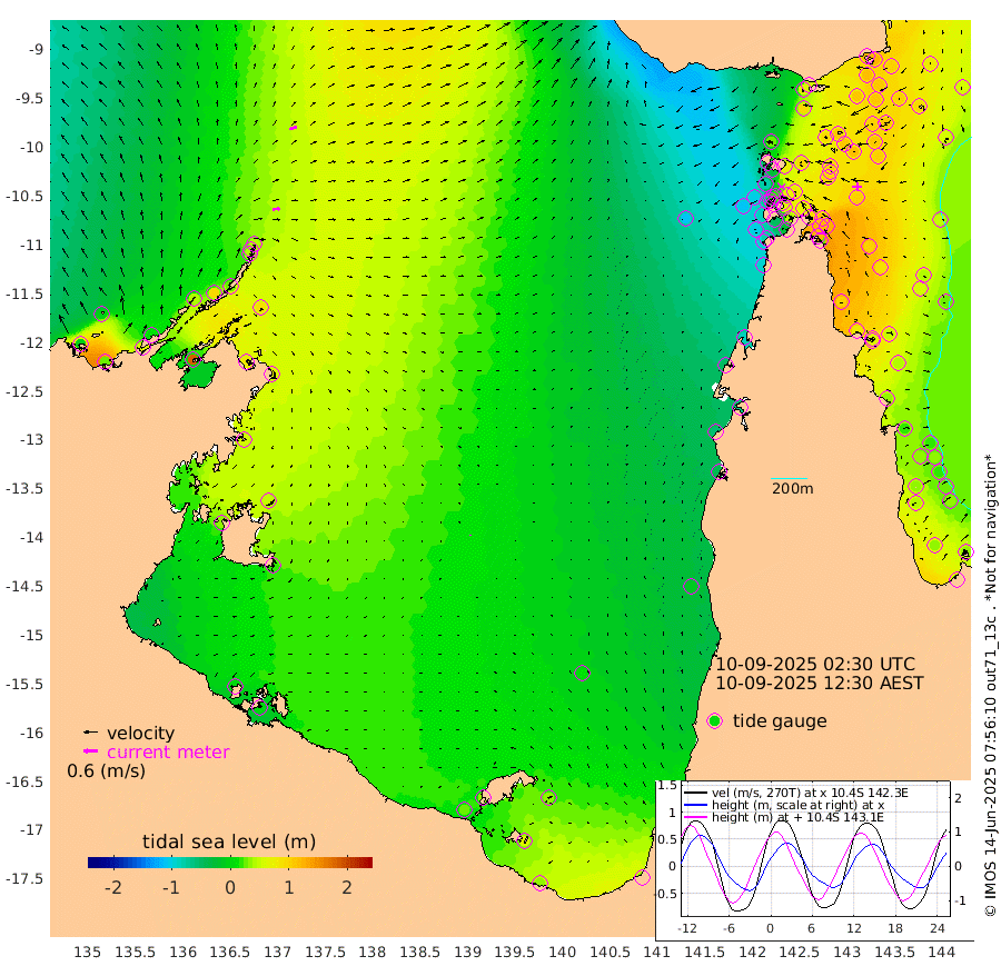 32cm/s 87T +3cm/s rms + 7cm/s -42T. ARA-GOC87 57m 4cm/s 19T +3cm/s rms + 2cm/s -2T. ARA-GOC87 60m 32cm/s 71T +2cm/s rms + 3cm/s 61T. ARA-GOC87 47m 126cm Daru 125cm Bobo Island 53cm Meer Island Barge 78cm Bramble Cay 106cm Unnamed Cay 109cm Pearce Cay 99cm Stephens Island 102cm Merrie England Shoals 115cm Mutacomal Reef 92cm Darnley Island Barge 54cm East Cay 107cm Yorke Island Barge 104cm Rennel Island 112cm Aureed Island 111cm Dungeness Reef 111cm Zagai Island 93cm Yam Island 64cm Dauan Island 58cm Saibai Island 91cm Phipi Reef 109cm Warrior Reef - West 25cm Mabuiag Island Barge 102cm Half Way Island 118cm Coconut Island 104cm Dugong Islet 103cm Poll Island 100cm Kirkcaldie Reef 96cm Suarji Island 99cm Sue Islet -77cm Hawkesbury Island 70cm Alert Patches 76cm Twin Island -40cm Badu Island 80cm St Pauls (Moa Island) -23cm Kubin (Moa Island) 36cm Ince Point 11cm Thursday Island 18cm Nardana Patches -17cm Turtle Head -30cm Round Island -73cm Goods Island -110cm Booby Island -100cm White Rocks Area -111cm Carpentaria 63cm Papou Point -84cm Bampfield Head -90cm Crab Island -105cm Red Wallis Island -47cm Packe Island 120cm Harrington Reef -78cm Herald Camp 28cm Sharp Point -23cm Red Island Point 39cm Possession Island 74cm Alpha Rock 96cm Frederick Point 121cm Wyborn Reef Light 118cm Tetley Island 50cm Triangle Reef 123cm Turtle Head Island 44cm Maclennan Cay 25cm Raine Island 99cm Mcsweeny Reef 89cm Collette Reef 53cm Shadwell Reef 98cm Hannibal Island 78cm Round Point -97cm Vrilya Point 62cm Cape Grenville 60cm Hicks Island 47cm Sir Charles Hardy Island 21cm Harvey Island 44cm Kay Reef 34cm Rocky Island 22cm Chapman Island 19cm Ham Reef 31cm Jubilee Reef 36cm Night Island 20cm Unnamed Reef No. 3 35cm Morris Island 30cm 1st 3 Mile Opening 31cm Creech Reef 41cm Fife Island 32cm Eden Reef 32cm Stanley Island 37cm Normanby River -2cm Yabooma Island 28cm Hutchison River 8cm Elcho Island -1cm North West Crocodile Island 39cm Cape Wessel 38cm Stevens Island 92cm Guluwuru Island 23cm Hopeful Bay 38cm Auster Point 34cm Two Island Bay 66cm Cadell Strait 181cm Mallison Island 80cm Melville Bay (Gove Harbour) 84cm Truant Island 68cm Cape Arnhem 56cm Cape Grey 51cm Hawk Island 34cm Milner Bay (Groote Eylandt) 22cm Cape Beatrice 6cm West Island 7cm Centre Island 36cm Mornington Island 26cm West Wellesley Islands 31cm Bountiful Island 37cm Albert River Mouth 61cm Sweers Island 37cm Karumba 9cm Nassau River Offshore -9cm Christmas Creek -43cm Archer River -53cm Boyd Point -64cm Weipa (Humbug Point) -52cm Pennefather River -89cm Cullen Point