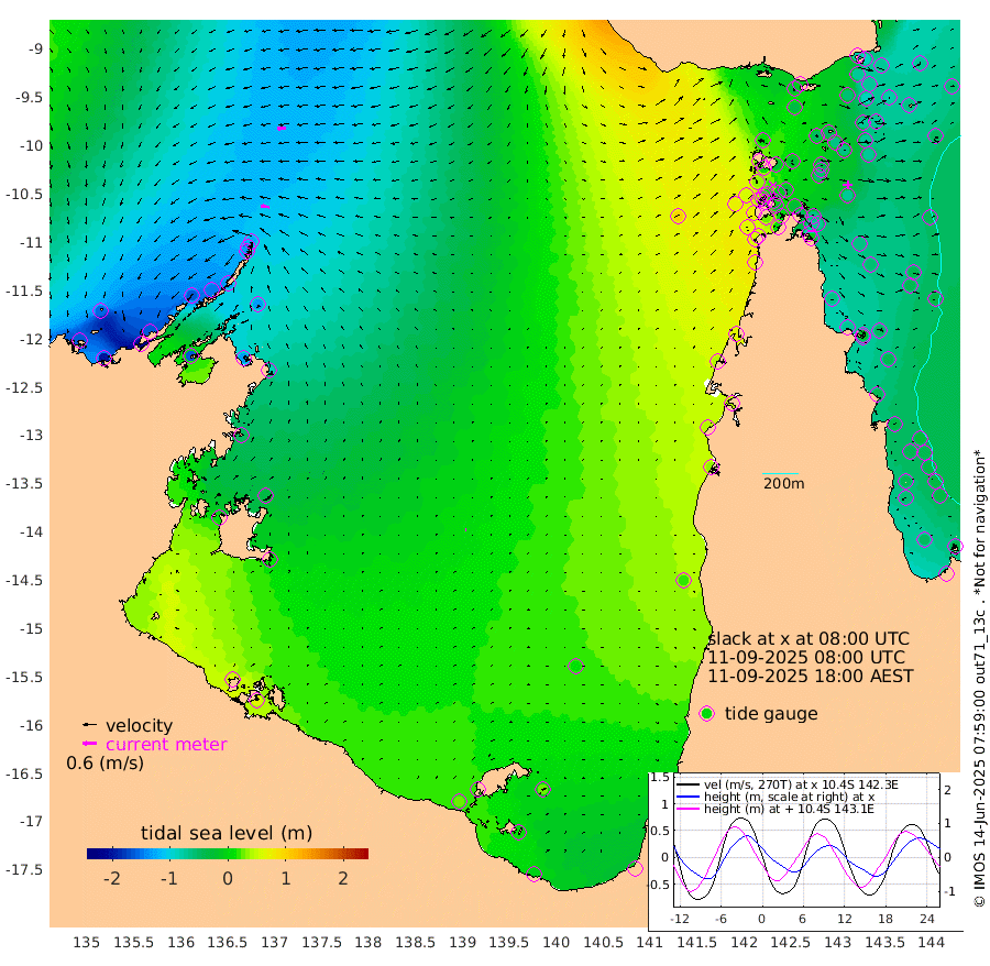 38cm/s -82T +3cm/s rms + 7cm/s -42T. ARA-GOC87 57m 5cm/s 73T +3cm/s rms + 2cm/s -2T. ARA-GOC87 60m 39cm/s -96T +2cm/s rms + 3cm/s 61T. ARA-GOC87 47m -80cm Daru -88cm Bobo Island -51cm Meer Island Barge -68cm Bramble Cay -70cm Unnamed Cay -88cm Pearce Cay -77cm Stephens Island -69cm Merrie England Shoals -70cm Mutacomal Reef -67cm Darnley Island Barge -57cm East Cay -69cm Yorke Island Barge -74cm Rennel Island -73cm Aureed Island -67cm Dungeness Reef -52cm Zagai Island -48cm Yam Island -26cm Dauan Island -12cm Saibai Island -32cm Phipi Reef -57cm Warrior Reef - West 9cm Mabuiag Island Barge -73cm Half Way Island -67cm Coconut Island -68cm Dugong Islet -56cm Poll Island -56cm Kirkcaldie Reef -25cm Suarji Island -42cm Sue Islet 36cm Hawkesbury Island -14cm Alert Patches -27cm Twin Island 24cm Badu Island -25cm St Pauls (Moa Island) 10cm Kubin (Moa Island) -4cm Ince Point 11cm Thursday Island 7cm Nardana Patches 18cm Turtle Head 33cm Round Island 41cm Goods Island 71cm Booby Island 60cm White Rocks Area 100cm Carpentaria -28cm Papou Point 82cm Bampfield Head 53cm Crab Island 61cm Red Wallis Island 27cm Packe Island -72cm Harrington Reef 58cm Herald Camp -2cm Sharp Point 12cm Red Island Point 3cm Possession Island -23cm Alpha Rock -48cm Frederick Point -71cm Wyborn Reef Light -66cm Tetley Island -43cm Triangle Reef -81cm Turtle Head Island -45cm Maclennan Cay -37cm Raine Island -67cm Mcsweeny Reef -59cm Collette Reef -42cm Shadwell Reef -67cm Hannibal Island -69cm Round Point 66cm Vrilya Point -49cm Cape Grenville -57cm Hicks Island -46cm Sir Charles Hardy Island -18cm Harvey Island -41cm Kay Reef -39cm Rocky Island -32cm Chapman Island -30cm Ham Reef -39cm Jubilee Reef -38cm Night Island -32cm Unnamed Reef No. 3 -43cm Morris Island -33cm 1st 3 Mile Opening -37cm Creech Reef -53cm Fife Island -49cm Eden Reef -38cm Stanley Island -53cm Normanby River -158cm Yabooma Island -202cm Hutchison River -163cm Elcho Island -157cm North West Crocodile Island -125cm Cape Wessel -162cm Stevens Island -148cm Guluwuru Island -133cm Hopeful Bay -130cm Auster Point -143cm Two Island Bay -217cm Cadell Strait -159cm Mallison Island -129cm Melville Bay (Gove Harbour) -135cm Truant Island -88cm Cape Arnhem -51cm Cape Grey -36cm Hawk Island 5cm Milner Bay (Groote Eylandt) 8cm Cape Beatrice 59cm West Island 65cm Centre Island 20cm Mornington Island 28cm West Wellesley Islands 26cm Bountiful Island -7cm Albert River Mouth 11cm Sweers Island -2cm Karumba 14cm Nassau River Offshore 19cm Christmas Creek 34cm Archer River 42cm Boyd Point 43cm Weipa (Humbug Point) 42cm Pennefather River 65cm Cullen Point