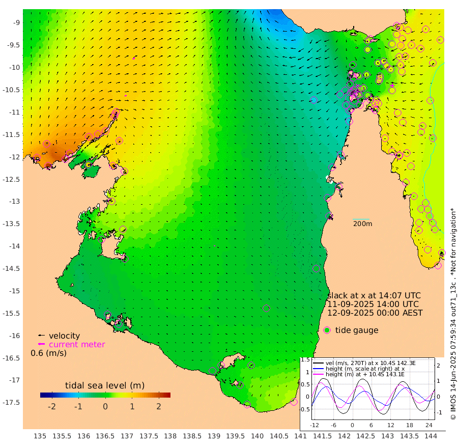18cm/s 83T +3cm/s rms + 7cm/s -42T. ARA-GOC87 57m 9cm/s -131T +3cm/s rms + 2cm/s -2T. ARA-GOC87 60m 22cm/s 65T +2cm/s rms + 3cm/s 61T. ARA-GOC87 47m 83cm Daru 90cm Bobo Island 55cm Meer Island Barge 71cm Bramble Cay 77cm Unnamed Cay 90cm Pearce Cay 80cm Stephens Island 70cm Merrie England Shoals 75cm Mutacomal Reef 73cm Darnley Island Barge 62cm East Cay 77cm Yorke Island Barge 79cm Rennel Island 80cm Aureed Island 74cm Dungeness Reef 62cm Zagai Island 59cm Yam Island 46cm Dauan Island 36cm Saibai Island 47cm Phipi Reef 71cm Warrior Reef - West 11cm Mabuiag Island Barge 72cm Half Way Island 69cm Coconut Island 75cm Dugong Islet 63cm Poll Island 58cm Kirkcaldie Reef 48cm Suarji Island 55cm Sue Islet -25cm Hawkesbury Island 26cm Alert Patches 36cm Twin Island -19cm Badu Island 37cm St Pauls (Moa Island) -2cm Kubin (Moa Island) 13cm Ince Point -3cm Thursday Island 2cm Nardana Patches -11cm Turtle Head -20cm Round Island -35cm Goods Island -69cm Booby Island -54cm White Rocks Area -99cm Carpentaria 34cm Papou Point -63cm Bampfield Head -71cm Crab Island -64cm Red Wallis Island -26cm Packe Island 76cm Harrington Reef -41cm Herald Camp 4cm Sharp Point -11cm Red Island Point 10cm Possession Island 36cm Alpha Rock 55cm Frederick Point 77cm Wyborn Reef Light 73cm Tetley Island 49cm Triangle Reef 80cm Turtle Head Island 52cm Maclennan Cay 37cm Raine Island 72cm Mcsweeny Reef 64cm Collette Reef 46cm Shadwell Reef 71cm Hannibal Island 71cm Round Point -92cm Vrilya Point 55cm Cape Grenville 62cm Hicks Island 62cm Sir Charles Hardy Island 19cm Harvey Island 48cm Kay Reef 47cm Rocky Island 39cm Chapman Island 38cm Ham Reef 44cm Jubilee Reef 39cm Night Island 36cm Unnamed Reef No. 3 48cm Morris Island 38cm 1st 3 Mile Opening 41cm Creech Reef 53cm Fife Island 54cm Eden Reef 42cm Stanley Island 59cm Normanby River 166cm Yabooma Island 209cm Hutchison River 166cm Elcho Island 162cm North West Crocodile Island 127cm Cape Wessel 155cm Stevens Island 145cm Guluwuru Island 135cm Hopeful Bay 131cm Auster Point 141cm Two Island Bay 200cm Cadell Strait 111cm Mallison Island 130cm Melville Bay (Gove Harbour) 133cm Truant Island 87cm Cape Arnhem 62cm Cape Grey 46cm Hawk Island 5cm Milner Bay (Groote Eylandt) 3cm Cape Beatrice -40cm West Island -52cm Centre Island -8cm Mornington Island -10cm West Wellesley Islands 22cm Bountiful Island 28cm Albert River Mouth 22cm Sweers Island 21cm Karumba -10cm Nassau River Offshore -20cm Christmas Creek -41cm Archer River -42cm Boyd Point -41cm Weipa (Humbug Point) -72cm Pennefather River -74cm Cullen Point