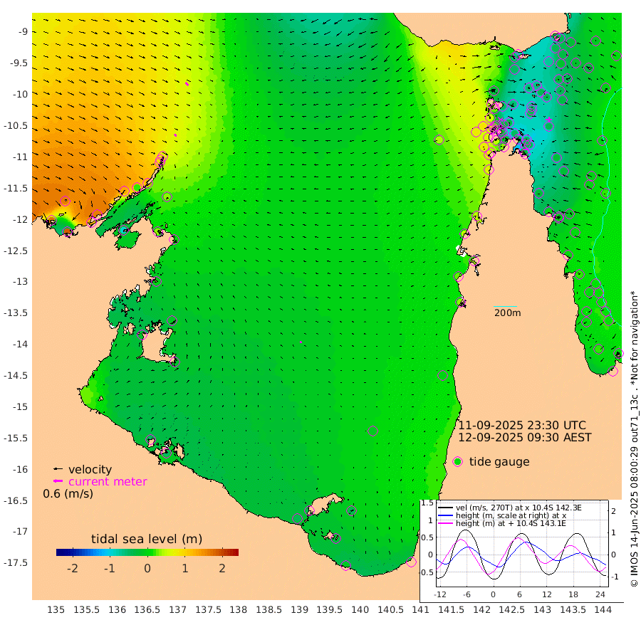20cm/s 142T +3cm/s rms + 7cm/s -42T. ARA-GOC87 57m 12cm/s -24T +3cm/s rms + 2cm/s -2T. ARA-GOC87 60m 24cm/s 132T +2cm/s rms + 3cm/s 61T. ARA-GOC87 47m -47cm Daru -38cm Bobo Island -4cm Meer Island Barge -8cm Bramble Cay -33cm Unnamed Cay -18cm Pearce Cay -21cm Stephens Island -24cm Merrie England Shoals -43cm Mutacomal Reef -30cm Darnley Island Barge 4cm East Cay -44cm Yorke Island Barge -29cm Rennel Island -39cm Aureed Island -41cm Dungeness Reef -67cm Zagai Island -59cm Yam Island -60cm Dauan Island -76cm Saibai Island -51cm Phipi Reef -69cm Warrior Reef - West -33cm Mabuiag Island Barge -30cm Half Way Island -39cm Coconut Island -43cm Dugong Islet -46cm Poll Island -44cm Kirkcaldie Reef -54cm Suarji Island -65cm Sue Islet 59cm Hawkesbury Island -36cm Alert Patches -37cm Twin Island 47cm Badu Island -48cm St Pauls (Moa Island) 28cm Kubin (Moa Island) -18cm Ince Point -2cm Thursday Island -7cm Nardana Patches 25cm Turtle Head 34cm Round Island 66cm Goods Island 80cm Booby Island 83cm White Rocks Area 38cm Carpentaria -32cm Papou Point 65cm Bampfield Head 77cm Crab Island 77cm Red Wallis Island 50cm Packe Island -41cm Harrington Reef 46cm Herald Camp -28cm Sharp Point 31cm Red Island Point -10cm Possession Island -50cm Alpha Rock -40cm Frederick Point -44cm Wyborn Reef Light -47cm Tetley Island -7cm Triangle Reef -29cm Turtle Head Island -3cm Maclennan Cay 19cm Raine Island -28cm Mcsweeny Reef -25cm Collette Reef -7cm Shadwell Reef -24cm Hannibal Island 0cm Round Point 68cm Vrilya Point -8cm Cape Grenville -1cm Hicks Island -12cm Sir Charles Hardy Island -3cm Harvey Island 2cm Kay Reef 7cm Rocky Island 17cm Chapman Island 9cm Ham Reef 7cm Jubilee Reef 8cm Night Island 14cm Unnamed Reef No. 3 12cm Morris Island 11cm 1st 3 Mile Opening 9cm Creech Reef 14cm Fife Island 18cm Eden Reef 10cm Stanley Island 15cm Normanby River 171cm Yabooma Island 181cm Hutchison River 163cm Elcho Island 161cm North West Crocodile Island 70cm Cape Wessel 133cm Stevens Island 20cm Guluwuru Island 122cm Hopeful Bay 96cm Auster Point 92cm Two Island Bay 127cm Cadell Strait -95cm Mallison Island 33cm Melville Bay (Gove Harbour) 35cm Truant Island 9cm Cape Arnhem -6cm Cape Grey -9cm Hawk Island -18cm Milner Bay (Groote Eylandt) -20cm Cape Beatrice -49cm West Island -46cm Centre Island -40cm Mornington Island -43cm West Wellesley Islands -42cm Bountiful Island -12cm Albert River Mouth -24cm Sweers Island -10cm Karumba -13cm Nassau River Offshore -2cm Christmas Creek 31cm Archer River 23cm Boyd Point 41cm Weipa (Humbug Point) 47cm Pennefather River 49cm Cullen Point
