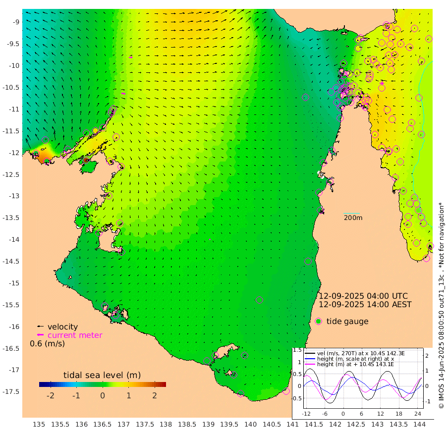 36cm/s 99T +3cm/s rms + 7cm/s -42T. ARA-GOC87 57m 12cm/s 151T +3cm/s rms + 2cm/s -2T. ARA-GOC87 60m 30cm/s 85T +2cm/s rms + 3cm/s 61T. ARA-GOC87 47m 92cm Daru 94cm Bobo Island 56cm Meer Island Barge 64cm Bramble Cay 77cm Unnamed Cay 84cm Pearce Cay 78cm Stephens Island 72cm Merrie England Shoals 77cm Mutacomal Reef 81cm Darnley Island Barge 51cm East Cay 87cm Yorke Island Barge 75cm Rennel Island 88cm Aureed Island 82cm Dungeness Reef 87cm Zagai Island 68cm Yam Island 62cm Dauan Island 57cm Saibai Island 72cm Phipi Reef 87cm Warrior Reef - West 20cm Mabuiag Island Barge 77cm Half Way Island 85cm Coconut Island 76cm Dugong Islet 74cm Poll Island 72cm Kirkcaldie Reef 64cm Suarji Island 74cm Sue Islet -54cm Hawkesbury Island 47cm Alert Patches 52cm Twin Island -21cm Badu Island 57cm St Pauls (Moa Island) -11cm Kubin (Moa Island) 26cm Ince Point 10cm Thursday Island 15cm Nardana Patches -7cm Turtle Head -24cm Round Island -43cm Goods Island -65cm Booby Island -69cm White Rocks Area -55cm Carpentaria 43cm Papou Point -52cm Bampfield Head -52cm Crab Island -65cm Red Wallis Island -27cm Packe Island 83cm Harrington Reef -51cm Herald Camp 18cm Sharp Point -18cm Red Island Point 24cm Possession Island 48cm Alpha Rock 67cm Frederick Point 83cm Wyborn Reef Light 80cm Tetley Island 49cm Triangle Reef 88cm Turtle Head Island 46cm Maclennan Cay 34cm Raine Island 76cm Mcsweeny Reef 70cm Collette Reef 51cm Shadwell Reef 77cm Hannibal Island 60cm Round Point -52cm Vrilya Point 52cm Cape Grenville 54cm Hicks Island 51cm Sir Charles Hardy Island 18cm Harvey Island 41cm Kay Reef 39cm Rocky Island 31cm Chapman Island 30cm Ham Reef 39cm Jubilee Reef 40cm Night Island 30cm Unnamed Reef No. 3 40cm Morris Island 41cm 1st 3 Mile Opening 40cm Creech Reef 44cm Fife Island 44cm Eden Reef 38cm Stanley Island 38cm Normanby River -36cm Yabooma Island -8cm Hutchison River -23cm Elcho Island -35cm North West Crocodile Island 27cm Cape Wessel 5cm Stevens Island 92cm Guluwuru Island -6cm Hopeful Bay 17cm Auster Point 18cm Two Island Bay 49cm Cadell Strait 214cm Mallison Island 70cm Melville Bay (Gove Harbour) 76cm Truant Island 63cm Cape Arnhem 38cm Cape Grey 26cm Hawk Island 1cm Milner Bay (Groote Eylandt) -9cm Cape Beatrice -31cm West Island -29cm Centre Island -5cm Mornington Island -13cm West Wellesley Islands -22cm Bountiful Island -30cm Albert River Mouth -23cm Sweers Island -32cm Karumba -7cm Nassau River Offshore -2cm Christmas Creek -19cm Archer River -19cm Boyd Point -30cm Weipa (Humbug Point) -21cm Pennefather River -47cm Cullen Point