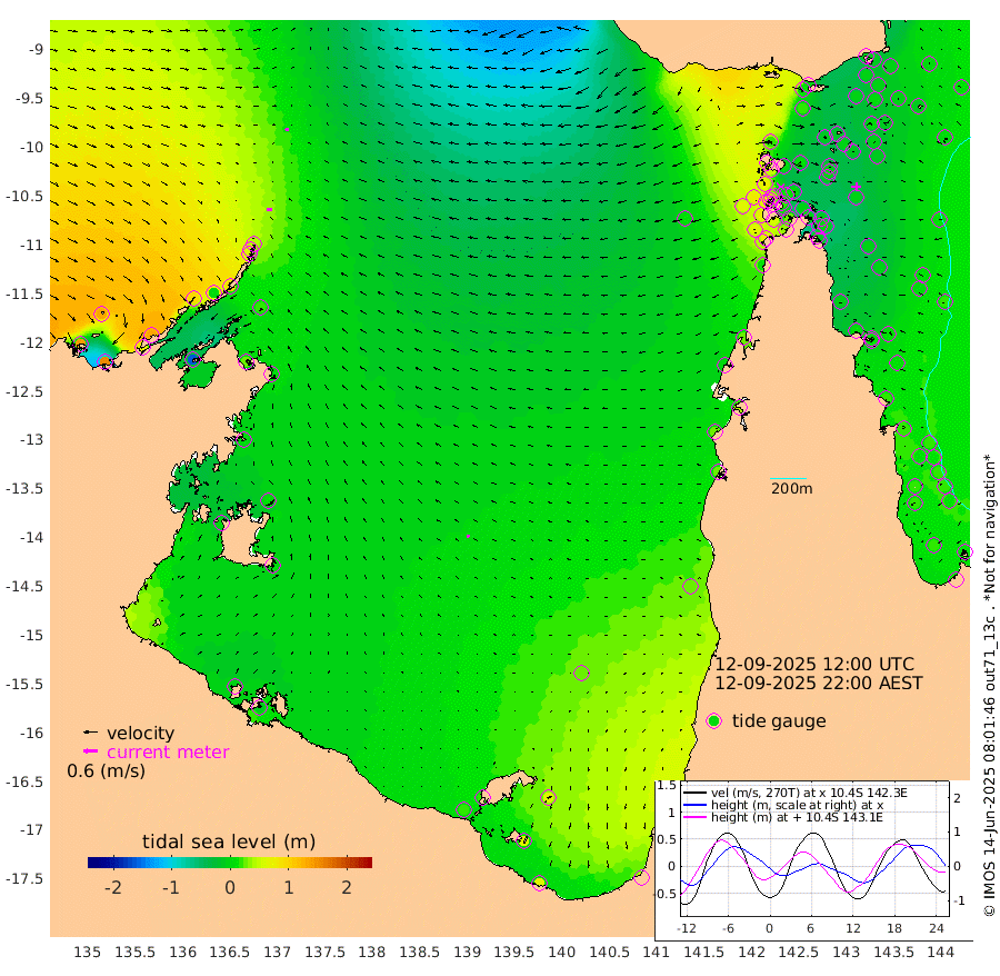 23cm/s -94T +3cm/s rms + 7cm/s -42T. ARA-GOC87 57m 12cm/s -96T +3cm/s rms + 2cm/s -2T. ARA-GOC87 60m 17cm/s -103T +2cm/s rms + 3cm/s 61T. ARA-GOC87 47m -12cm Daru -10cm Bobo Island 5cm Meer Island Barge 6cm Bramble Cay -3cm Unnamed Cay 4cm Pearce Cay -1cm Stephens Island -5cm Merrie England Shoals -7cm Mutacomal Reef -9cm Darnley Island Barge 12cm East Cay -13cm Yorke Island Barge 1cm Rennel Island -6cm Aureed Island 0cm Dungeness Reef -16cm Zagai Island -8cm Yam Island 10cm Dauan Island -6cm Saibai Island 17cm Phipi Reef -6cm Warrior Reef - West 15cm Mabuiag Island Barge -10cm Half Way Island -8cm Coconut Island -7cm Dugong Islet -4cm Poll Island -12cm Kirkcaldie Reef 14cm Suarji Island -18cm Sue Islet 68cm Hawkesbury Island 10cm Alert Patches 3cm Twin Island 57cm Badu Island 1cm St Pauls (Moa Island) 48cm Kubin (Moa Island) 17cm Ince Point 25cm Thursday Island 24cm Nardana Patches 48cm Turtle Head 57cm Round Island 70cm Goods Island 67cm Booby Island 78cm White Rocks Area 15cm Carpentaria 1cm Papou Point 74cm Bampfield Head 40cm Crab Island 61cm Red Wallis Island 55cm Packe Island -8cm Harrington Reef 68cm Herald Camp -12cm Sharp Point 36cm Red Island Point 25cm Possession Island -5cm Alpha Rock -2cm Frederick Point -7cm Wyborn Reef Light -8cm Tetley Island 8cm Triangle Reef -9cm Turtle Head Island 11cm Maclennan Cay 16cm Raine Island -3cm Mcsweeny Reef -3cm Collette Reef 4cm Shadwell Reef -4cm Hannibal Island 12cm Round Point 15cm Vrilya Point 7cm Cape Grenville 11cm Hicks Island 14cm Sir Charles Hardy Island 1cm Harvey Island 11cm Kay Reef 18cm Rocky Island 22cm Chapman Island 15cm Ham Reef 11cm Jubilee Reef 10cm Night Island 16cm Unnamed Reef No. 3 17cm Morris Island 16cm 1st 3 Mile Opening 13cm Creech Reef 15cm Fife Island 19cm Eden Reef 12cm Stanley Island 19cm Normanby River 142cm Yabooma Island 154cm Hutchison River 133cm Elcho Island 133cm North West Crocodile Island 44cm Cape Wessel 92cm Stevens Island 1cm Guluwuru Island 95cm Hopeful Bay 67cm Auster Point 59cm Two Island Bay 74cm Cadell Strait -158cm Mallison Island 23cm Melville Bay (Gove Harbour) 17cm Truant Island 2cm Cape Arnhem 6cm Cape Grey 11cm Hawk Island 1cm Milner Bay (Groote Eylandt) 6cm Cape Beatrice -7cm West Island -12cm Centre Island 16cm Mornington Island 18cm West Wellesley Islands 65cm Bountiful Island 65cm Albert River Mouth 65cm Sweers Island 66cm Karumba 28cm Nassau River Offshore 23cm Christmas Creek 28cm Archer River 23cm Boyd Point 45cm Weipa (Humbug Point) 0cm Pennefather River 26cm Cullen Point