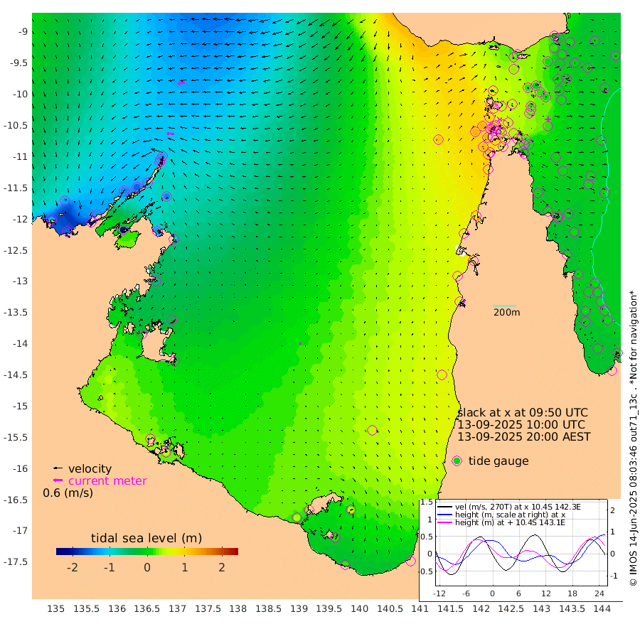 48cm/s -88T +3cm/s rms + 7cm/s -42T. ARA-GOC87 57m 12cm/s -178T +3cm/s rms + 2cm/s -2T. ARA-GOC87 60m 51cm/s -99T +2cm/s rms + 3cm/s 61T. ARA-GOC87 47m 3cm Daru -12cm Bobo Island -7cm Meer Island Barge -3cm Bramble Cay 9cm Unnamed Cay -6cm Pearce Cay -2cm Stephens Island 12cm Merrie England Shoals 18cm Mutacomal Reef -7cm Darnley Island Barge -4cm East Cay -3cm Yorke Island Barge 11cm Rennel Island -1cm Aureed Island 16cm Dungeness Reef 7cm Zagai Island 21cm Yam Island 27cm Dauan Island 22cm Saibai Island 35cm Phipi Reef 12cm Warrior Reef - West 54cm Mabuiag Island Barge 8cm Half Way Island 12cm Coconut Island 17cm Dugong Islet 23cm Poll Island 26cm Kirkcaldie Reef 52cm Suarji Island 21cm Sue Islet 102cm Hawkesbury Island 64cm Alert Patches 49cm Twin Island 87cm Badu Island 48cm St Pauls (Moa Island) 79cm Kubin (Moa Island) 66cm Ince Point 78cm Thursday Island 74cm Nardana Patches 90cm Turtle Head 93cm Round Island 106cm Goods Island 122cm Booby Island 122cm White Rocks Area 108cm Carpentaria 34cm Papou Point 127cm Bampfield Head 94cm Crab Island 116cm Red Wallis Island 99cm Packe Island 19cm Harrington Reef 113cm Herald Camp 13cm Sharp Point 71cm Red Island Point 65cm Possession Island 43cm Alpha Rock 33cm Frederick Point 13cm Wyborn Reef Light 16cm Tetley Island 2cm Triangle Reef 8cm Turtle Head Island 4cm Maclennan Cay 0cm Raine Island 6cm Mcsweeny Reef 6cm Collette Reef 4cm Shadwell Reef 3cm Hannibal Island 2cm Round Point 93cm Vrilya Point 11cm Cape Grenville -1cm Hicks Island 5cm Sir Charles Hardy Island 0cm Harvey Island 10cm Kay Reef 3cm Rocky Island 5cm Chapman Island 2cm Ham Reef -1cm Jubilee Reef 3cm Night Island 5cm Unnamed Reef No. 3 2cm Morris Island 6cm 1st 3 Mile Opening 3cm Creech Reef -4cm Fife Island -6cm Eden Reef 6cm Stanley Island -2cm Normanby River -121cm Yabooma Island -156cm Hutchison River -131cm Elcho Island -123cm North West Crocodile Island -127cm Cape Wessel -139cm Stevens Island -155cm Guluwuru Island -117cm Hopeful Bay -122cm Auster Point -138cm Two Island Bay -195cm Cadell Strait -217cm Mallison Island -128cm Melville Bay (Gove Harbour) -137cm Truant Island -94cm Cape Arnhem -58cm Cape Grey -40cm Hawk Island -13cm Milner Bay (Groote Eylandt) 2cm Cape Beatrice 44cm West Island 45cm Centre Island 34cm Mornington Island 44cm West Wellesley Islands 48cm Bountiful Island 16cm Albert River Mouth 17cm Sweers Island 26cm Karumba 51cm Nassau River Offshore 60cm Christmas Creek 67cm Archer River 69cm Boyd Point 79cm Weipa (Humbug Point) 66cm Pennefather River 90cm Cullen Point