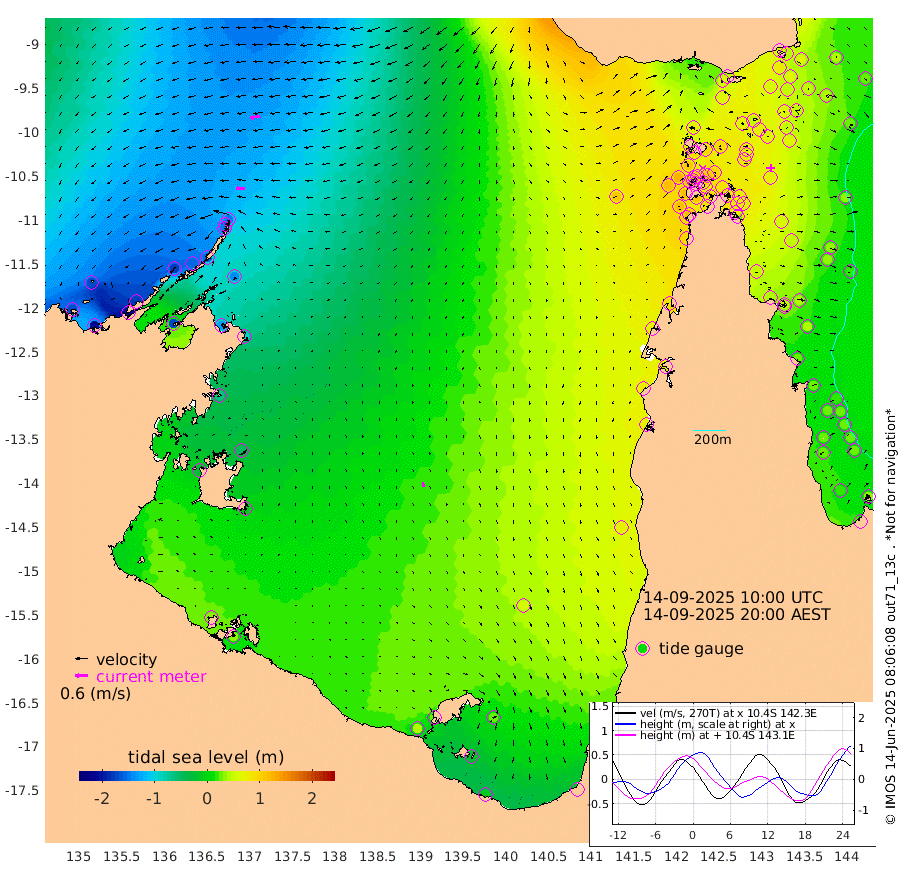 42cm/s -90T +3cm/s rms + 7cm/s -42T. ARA-GOC87 57m 22cm/s 171T +3cm/s rms + 2cm/s -2T. ARA-GOC87 60m 50cm/s -99T +2cm/s rms + 3cm/s 61T. ARA-GOC87 47m 61cm Daru 43cm Bobo Island 24cm Meer Island Barge 38cm Bramble Cay 61cm Unnamed Cay 47cm Pearce Cay 48cm Stephens Island 66cm Merrie England Shoals 75cm Mutacomal Reef 40cm Darnley Island Barge 28cm East Cay 48cm Yorke Island Barge 63cm Rennel Island 50cm Aureed Island 69cm Dungeness Reef 51cm Zagai Island 67cm Yam Island 55cm Dauan Island 47cm Saibai Island 66cm Phipi Reef 58cm Warrior Reef - West 74cm Mabuiag Island Barge 63cm Half Way Island 65cm Coconut Island 74cm Dugong Islet 73cm Poll Island 81cm Kirkcaldie Reef 92cm Suarji Island 70cm Sue Islet 107cm Hawkesbury Island 105cm Alert Patches 92cm Twin Island 94cm Badu Island 91cm St Pauls (Moa Island) 95cm Kubin (Moa Island) 98cm Ince Point 104cm Thursday Island 101cm Nardana Patches 108cm Turtle Head 99cm Round Island 111cm Goods Island 119cm Booby Island 120cm White Rocks Area 109cm Carpentaria 71cm Papou Point 119cm Bampfield Head 94cm Crab Island 117cm Red Wallis Island 112cm Packe Island 80cm Harrington Reef 114cm Herald Camp 27cm Sharp Point 87cm Red Island Point 90cm Possession Island 85cm Alpha Rock 84cm Frederick Point 68cm Wyborn Reef Light 70cm Tetley Island 31cm Triangle Reef 68cm Turtle Head Island 35cm Maclennan Cay 20cm Raine Island 56cm Mcsweeny Reef 51cm Collette Reef 34cm Shadwell Reef 52cm Hannibal Island 43cm Round Point 97cm Vrilya Point 48cm Cape Grenville 33cm Hicks Island 38cm Sir Charles Hardy Island 13cm Harvey Island 41cm Kay Reef 27cm Rocky Island 24cm Chapman Island 22cm Ham Reef 24cm Jubilee Reef 27cm Night Island 27cm Unnamed Reef No. 3 28cm Morris Island 30cm 1st 3 Mile Opening 29cm Creech Reef 23cm Fife Island 20cm Eden Reef 34cm Stanley Island 27cm Normanby River -168cm Yabooma Island -204cm Hutchison River -179cm Elcho Island -170cm North West Crocodile Island -146cm Cape Wessel -173cm Stevens Island -152cm Guluwuru Island -155cm Hopeful Bay -147cm Auster Point -161cm Two Island Bay -216cm Cadell Strait -170cm Mallison Island -133cm Melville Bay (Gove Harbour) -141cm Truant Island -94cm Cape Arnhem -62cm Cape Grey -47cm Hawk Island -25cm Milner Bay (Groote Eylandt) -8cm Cape Beatrice 36cm West Island 35cm Centre Island 29cm Mornington Island 40cm West Wellesley Islands 29cm Bountiful Island -14cm Albert River Mouth -19cm Sweers Island -1cm Karumba 55cm Nassau River Offshore 71cm Christmas Creek 72cm Archer River 75cm Boyd Point 79cm Weipa (Humbug Point) 75cm Pennefather River 89cm Cullen Point