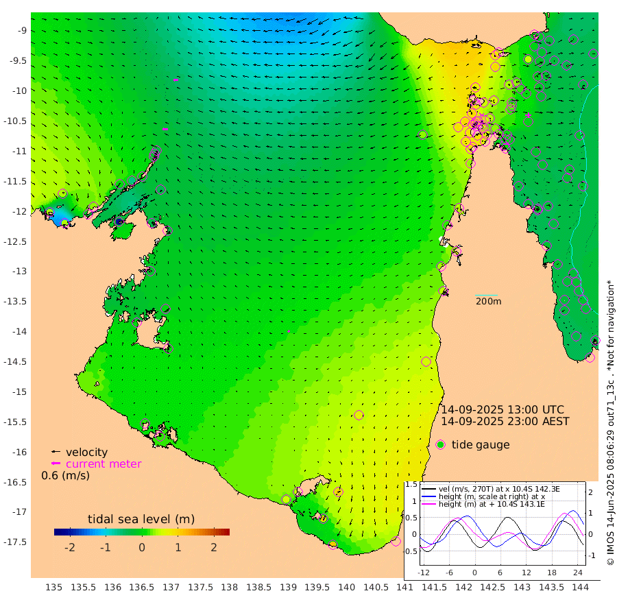 37cm/s -90T +3cm/s rms + 7cm/s -42T. ARA-GOC87 57m 16cm/s -123T +3cm/s rms + 2cm/s -2T. ARA-GOC87 60m 35cm/s -96T +2cm/s rms + 3cm/s 61T. ARA-GOC87 47m -3cm Daru -15cm Bobo Island -31cm Meer Island Barge -27cm Bramble Cay -18cm Unnamed Cay -13cm Pearce Cay -25cm Stephens Island -25cm Merrie England Shoals -4cm Mutacomal Reef -33cm Darnley Island Barge -28cm East Cay -22cm Yorke Island Barge -4cm Rennel Island -10cm Aureed Island 15cm Dungeness Reef 32cm Zagai Island 39cm Yam Island 90cm Dauan Island 67cm Saibai Island 95cm Phipi Reef 51cm Warrior Reef - West 74cm Mabuiag Island Barge -17cm Half Way Island 7cm Coconut Island -4cm Dugong Islet 26cm Poll Island 16cm Kirkcaldie Reef 65cm Suarji Island 14cm Sue Islet 92cm Hawkesbury Island 57cm Alert Patches 47cm Twin Island 99cm Badu Island 57cm St Pauls (Moa Island) 82cm Kubin (Moa Island) 65cm Ince Point 70cm Thursday Island 71cm Nardana Patches 88cm Turtle Head 88cm Round Island 95cm Goods Island 89cm Booby Island 95cm White Rocks Area 31cm Carpentaria 42cm Papou Point 87cm Bampfield Head 65cm Crab Island 86cm Red Wallis Island 88cm Packe Island -2cm Harrington Reef 93cm Herald Camp 13cm Sharp Point 67cm Red Island Point 60cm Possession Island 32cm Alpha Rock 26cm Frederick Point -1cm Wyborn Reef Light 6cm Tetley Island -12cm Triangle Reef -14cm Turtle Head Island -20cm Maclennan Cay -21cm Raine Island -17cm Mcsweeny Reef -21cm Collette Reef -22cm Shadwell Reef -28cm Hannibal Island -23cm Round Point 37cm Vrilya Point -26cm Cape Grenville -24cm Hicks Island -21cm Sir Charles Hardy Island -9cm Harvey Island -31cm Kay Reef -22cm Rocky Island -19cm Chapman Island -25cm Ham Reef -27cm Jubilee Reef -22cm Night Island -24cm Unnamed Reef No. 3 -25cm Morris Island -22cm 1st 3 Mile Opening -27cm Creech Reef -24cm Fife Island -36cm Eden Reef -32cm Stanley Island -36cm Normanby River 38cm Yabooma Island 43cm Hutchison River 36cm Elcho Island 42cm North West Crocodile Island -34cm Cape Wessel 1cm Stevens Island -61cm Guluwuru Island 7cm Hopeful Bay -15cm Auster Point -27cm Two Island Bay -25cm Cadell Strait -205cm Mallison Island -34cm Melville Bay (Gove Harbour) -44cm Truant Island -32cm Cape Arnhem -16cm Cape Grey 0cm Hawk Island 1cm Milner Bay (Groote Eylandt) 15cm Cape Beatrice 19cm West Island 16cm Centre Island 58cm Mornington Island 56cm West Wellesley Islands 100cm Bountiful Island 112cm Albert River Mouth 102cm Sweers Island 116cm Karumba 69cm Nassau River Offshore 60cm Christmas Creek 49cm Archer River 43cm Boyd Point 63cm Weipa (Humbug Point) 22cm Pennefather River 48cm Cullen Point