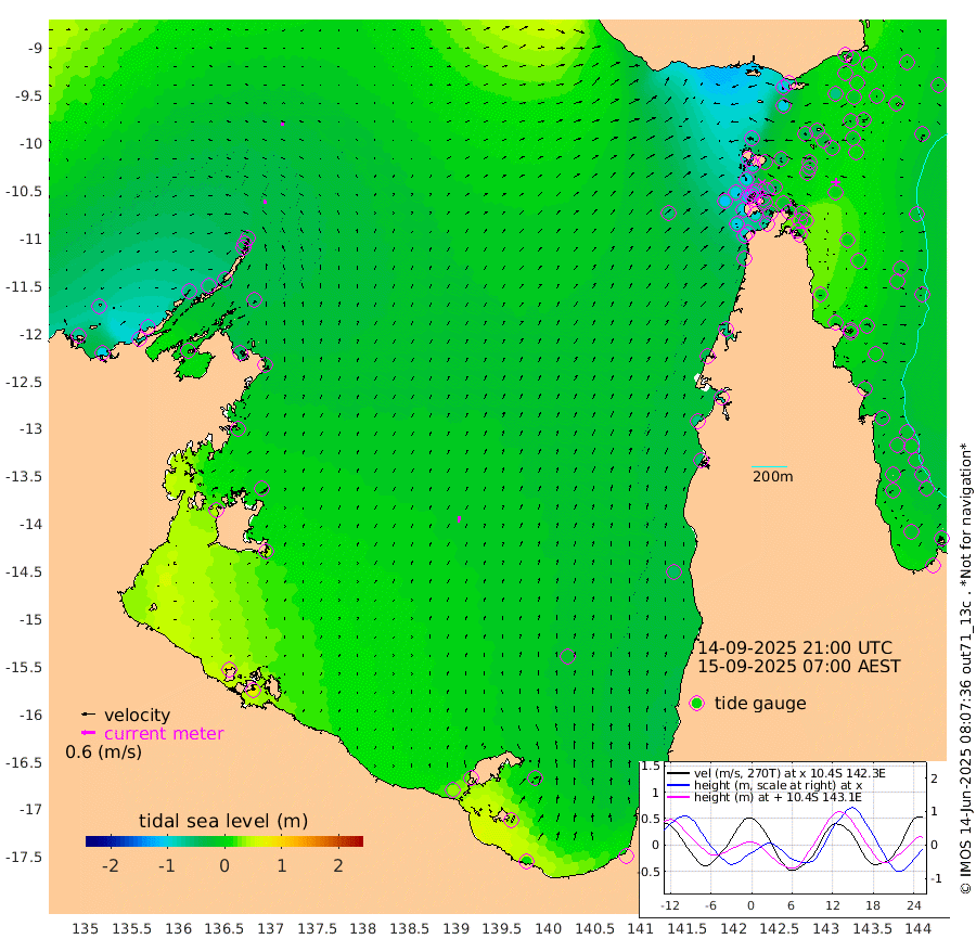 18cm/s -13T +3cm/s rms + 7cm/s -42T. ARA-GOC87 57m 27cm/s 9T +3cm/s rms + 2cm/s -2T. ARA-GOC87 60m 15cm/s -1T +2cm/s rms + 3cm/s 61T. ARA-GOC87 47m -12cm Daru -10cm Bobo Island -13cm Meer Island Barge -6cm Bramble Cay 0cm Unnamed Cay -17cm Pearce Cay -4cm Stephens Island 10cm Merrie England Shoals 1cm Mutacomal Reef -5cm Darnley Island Barge -11cm East Cay -7cm Yorke Island Barge -8cm Rennel Island -15cm Aureed Island -26cm Dungeness Reef -44cm Zagai Island -38cm Yam Island -106cm Dauan Island -83cm Saibai Island -100cm Phipi Reef -62cm Warrior Reef - West -71cm Mabuiag Island Barge 0cm Half Way Island -19cm Coconut Island -5cm Dugong Islet -28cm Poll Island -17cm Kirkcaldie Reef -50cm Suarji Island -20cm Sue Islet -99cm Hawkesbury Island -48cm Alert Patches -41cm Twin Island -117cm Badu Island -50cm St Pauls (Moa Island) -90cm Kubin (Moa Island) -60cm Ince Point -67cm Thursday Island -68cm Nardana Patches -92cm Turtle Head -84cm Round Island -110cm Goods Island -106cm Booby Island -98cm White Rocks Area -55cm Carpentaria -39cm Papou Point -99cm Bampfield Head -83cm Crab Island -98cm Red Wallis Island -97cm Packe Island -1cm Harrington Reef -94cm Herald Camp -4cm Sharp Point -68cm Red Island Point -52cm Possession Island -20cm Alpha Rock -26cm Frederick Point -6cm Wyborn Reef Light -10cm Tetley Island -23cm Triangle Reef -4cm Turtle Head Island -15cm Maclennan Cay -23cm Raine Island -5cm Mcsweeny Reef -4cm Collette Reef -14cm Shadwell Reef -1cm Hannibal Island -7cm Round Point -59cm Vrilya Point 0cm Cape Grenville -11cm Hicks Island -21cm Sir Charles Hardy Island 0cm Harvey Island -2cm Kay Reef -18cm Rocky Island -24cm Chapman Island -17cm Ham Reef -17cm Jubilee Reef -15cm Night Island -18cm Unnamed Reef No. 3 -16cm Morris Island -23cm 1st 3 Mile Opening -17cm Creech Reef -16cm Fife Island -20cm Eden Reef -8cm Stanley Island -3cm Normanby River -75cm Yabooma Island -104cm Hutchison River -79cm Elcho Island -71cm North West Crocodile Island -33cm Cape Wessel -55cm Stevens Island -45cm Guluwuru Island -51cm Hopeful Bay -42cm Auster Point -37cm Two Island Bay -79cm Cadell Strait 0cm Mallison Island -46cm Melville Bay (Gove Harbour) -46cm Truant Island -30cm Cape Arnhem -4cm Cape Grey 4cm Hawk Island 42cm Milner Bay (Groote Eylandt) 39cm Cape Beatrice 75cm West Island 78cm Centre Island 27cm Mornington Island 34cm West Wellesley Islands 6cm Bountiful Island 14cm Albert River Mouth 35cm Sweers Island 13cm Karumba -19cm Nassau River Offshore -46cm Christmas Creek -60cm Archer River -63cm Boyd Point -81cm Weipa (Humbug Point) -43cm Pennefather River -65cm Cullen Point