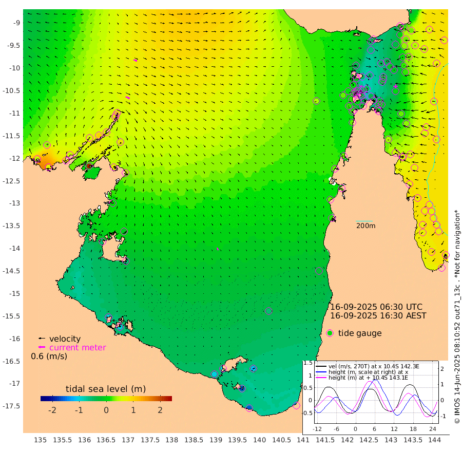 40cm/s 114T +3cm/s rms + 7cm/s -42T. ARA-GOC87 57m 23cm/s 155T +3cm/s rms + 2cm/s -2T. ARA-GOC87 60m 32cm/s 111T +2cm/s rms + 3cm/s 61T. ARA-GOC87 47m 1cm Daru 17cm Bobo Island 69cm Meer Island Barge 54cm Bramble Cay 26cm Unnamed Cay 32cm Pearce Cay 40cm Stephens Island 29cm Merrie England Shoals -1cm Mutacomal Reef 52cm Darnley Island Barge 66cm East Cay 30cm Yorke Island Barge 11cm Rennel Island 20cm Aureed Island -6cm Dungeness Reef -31cm Zagai Island -38cm Yam Island -41cm Dauan Island -33cm Saibai Island -54cm Phipi Reef -36cm Warrior Reef - West -40cm Mabuiag Island Barge 16cm Half Way Island -7cm Coconut Island 4cm Dugong Islet -25cm Poll Island -21cm Kirkcaldie Reef -55cm Suarji Island -19cm Sue Islet 10cm Hawkesbury Island -41cm Alert Patches -37cm Twin Island -3cm Badu Island -48cm St Pauls (Moa Island) -8cm Kubin (Moa Island) -34cm Ince Point -26cm Thursday Island -30cm Nardana Patches -13cm Turtle Head -14cm Round Island 14cm Goods Island 25cm Booby Island 11cm White Rocks Area 39cm Carpentaria -36cm Papou Point 22cm Bampfield Head 18cm Crab Island 18cm Red Wallis Island 1cm Packe Island -8cm Harrington Reef 5cm Herald Camp -26cm Sharp Point -12cm Red Island Point -32cm Possession Island -35cm Alpha Rock -24cm Frederick Point -3cm Wyborn Reef Light -11cm Tetley Island 50cm Triangle Reef 12cm Turtle Head Island 59cm Maclennan Cay 71cm Raine Island 29cm Mcsweeny Reef 37cm Collette Reef 57cm Shadwell Reef 44cm Hannibal Island 54cm Round Point 29cm Vrilya Point 53cm Cape Grenville 58cm Hicks Island 71cm Sir Charles Hardy Island 16cm Harvey Island 68cm Kay Reef 70cm Rocky Island 78cm Chapman Island 76cm Ham Reef 74cm Jubilee Reef 61cm Night Island 75cm Unnamed Reef No. 3 73cm Morris Island 73cm 1st 3 Mile Opening 75cm Creech Reef 70cm Fife Island 97cm Eden Reef 77cm Stanley Island 80cm Normanby River 52cm Yabooma Island 66cm Hutchison River 50cm Elcho Island 37cm North West Crocodile Island 76cm Cape Wessel 60cm Stevens Island 103cm Guluwuru Island 57cm Hopeful Bay 65cm Auster Point 73cm Two Island Bay 103cm Cadell Strait 218cm Mallison Island 76cm Melville Bay (Gove Harbour) 86cm Truant Island 54cm Cape Arnhem 12cm Cape Grey -12cm Hawk Island -53cm Milner Bay (Groote Eylandt) -63cm Cape Beatrice -102cm West Island -103cm Centre Island -104cm Mornington Island -102cm West Wellesley Islands -120cm Bountiful Island -158cm Albert River Mouth -167cm Sweers Island -159cm Karumba -60cm Nassau River Offshore -17cm Christmas Creek 18cm Archer River 28cm Boyd Point 27cm Weipa (Humbug Point) 25cm Pennefather River 25cm Cullen Point