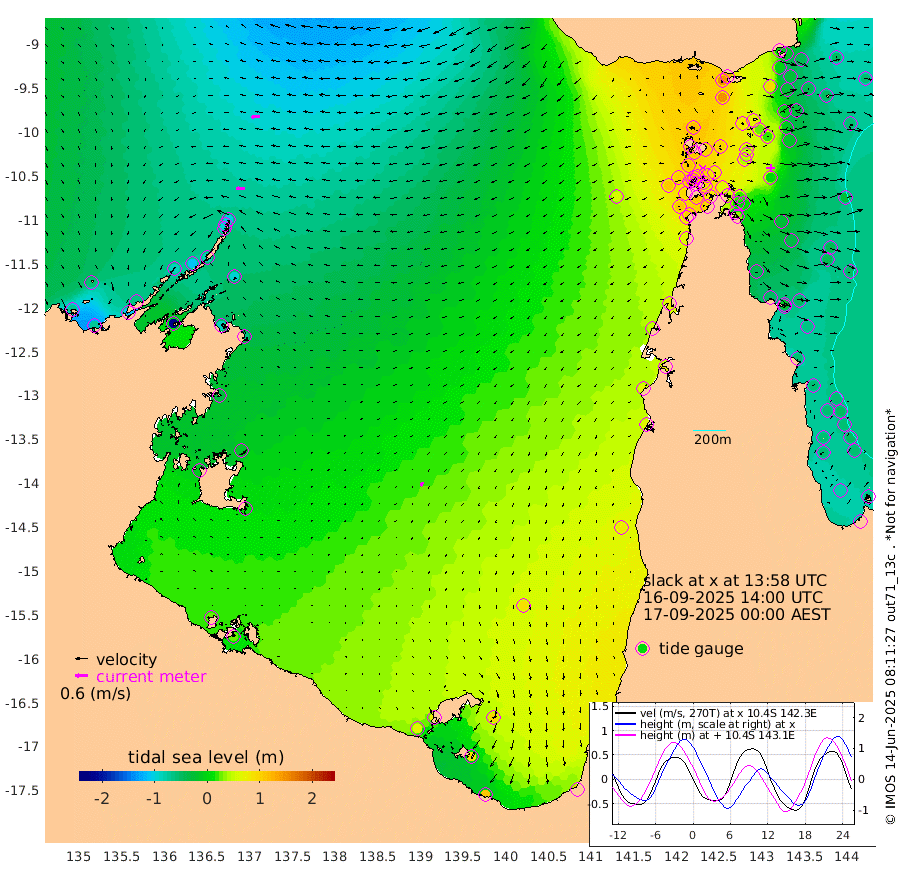 42cm/s -91T +3cm/s rms + 7cm/s -42T. ARA-GOC87 57m 20cm/s -150T +3cm/s rms + 2cm/s -2T. ARA-GOC87 60m 44cm/s -96T +2cm/s rms + 3cm/s 61T. ARA-GOC87 47m 7cm Daru -15cm Bobo Island -56cm Meer Island Barge -51cm Bramble Cay -28cm Unnamed Cay -23cm Pearce Cay -40cm Stephens Island -38cm Merrie England Shoals -1cm Mutacomal Reef -46cm Darnley Island Barge -58cm East Cay -23cm Yorke Island Barge -7cm Rennel Island -11cm Aureed Island 29cm Dungeness Reef 72cm Zagai Island 78cm Yam Island 150cm Dauan Island 125cm Saibai Island 149cm Phipi Reef 96cm Warrior Reef - West 119cm Mabuiag Island Barge -16cm Half Way Island 20cm Coconut Island 4cm Dugong Islet 51cm Poll Island 43cm Kirkcaldie Reef 98cm Suarji Island 44cm Sue Islet 112cm Hawkesbury Island 94cm Alert Patches 82cm Twin Island 131cm Badu Island 102cm St Pauls (Moa Island) 109cm Kubin (Moa Island) 103cm Ince Point 106cm Thursday Island 108cm Nardana Patches 117cm Turtle Head 105cm Round Island 113cm Goods Island 107cm Booby Island 105cm White Rocks Area 55cm Carpentaria 77cm Papou Point 90cm Bampfield Head 89cm Crab Island 105cm Red Wallis Island 111cm Packe Island 6cm Harrington Reef 109cm Herald Camp 34cm Sharp Point 94cm Red Island Point 85cm Possession Island 61cm Alpha Rock 51cm Frederick Point 4cm Wyborn Reef Light 17cm Tetley Island -28cm Triangle Reef -11cm Turtle Head Island -42cm Maclennan Cay -48cm Raine Island -26cm Mcsweeny Reef -33cm Collette Reef -42cm Shadwell Reef -44cm Hannibal Island -51cm Round Point 66cm Vrilya Point -51cm Cape Grenville -50cm Hicks Island -47cm Sir Charles Hardy Island -16cm Harvey Island -63cm Kay Reef -53cm Rocky Island -54cm Chapman Island -56cm Ham Reef -55cm Jubilee Reef -46cm Night Island -54cm Unnamed Reef No. 3 -57cm Morris Island -50cm 1st 3 Mile Opening -55cm Creech Reef -56cm Fife Island -77cm Eden Reef -65cm Stanley Island -77cm Normanby River -68cm Yabooma Island -71cm Hutchison River -65cm Elcho Island -54cm North West Crocodile Island -101cm Cape Wessel -89cm Stevens Island -106cm Guluwuru Island -83cm Hopeful Bay -91cm Auster Point -100cm Two Island Bay -107cm Cadell Strait -219cm Mallison Island -83cm Melville Bay (Gove Harbour) -95cm Truant Island -60cm Cape Arnhem -37cm Cape Grey -18cm Hawk Island -11cm Milner Bay (Groote Eylandt) 9cm Cape Beatrice 28cm West Island 25cm Centre Island 69cm Mornington Island 64cm West Wellesley Islands 92cm Bountiful Island 106cm Albert River Mouth 85cm Sweers Island 113cm Karumba 83cm Nassau River Offshore 80cm Christmas Creek 64cm Archer River 60cm Boyd Point 74cm Weipa (Humbug Point) 48cm Pennefather River 70cm Cullen Point