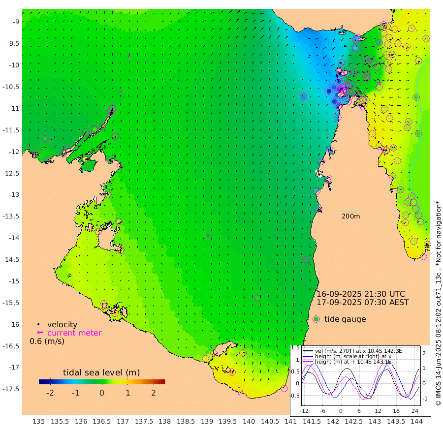 21cm/s 16T +3cm/s rms + 7cm/s -42T. ARA-GOC87 57m 28cm/s -4T +3cm/s rms + 2cm/s -2T. ARA-GOC87 60m 24cm/s 29T +2cm/s rms + 3cm/s 61T. ARA-GOC87 47m 32cm Daru 42cm Bobo Island 38cm Meer Island Barge 51cm Bramble Cay 51cm Unnamed Cay 41cm Pearce Cay 54cm Stephens Island 62cm Merrie England Shoals 42cm Mutacomal Reef 49cm Darnley Island Barge 45cm East Cay 40cm Yorke Island Barge 39cm Rennel Island 36cm Aureed Island 10cm Dungeness Reef -34cm Zagai Island -35cm Yam Island -125cm Dauan Island -109cm Saibai Island -102cm Phipi Reef -51cm Warrior Reef - West -109cm Mabuiag Island Barge 43cm Half Way Island 17cm Coconut Island 32cm Dugong Islet -8cm Poll Island 0cm Kirkcaldie Reef -41cm Suarji Island -10cm Sue Islet -163cm Hawkesbury Island -56cm Alert Patches -46cm Twin Island -169cm Badu Island -62cm St Pauls (Moa Island) -130cm Kubin (Moa Island) -84cm Ince Point -100cm Thursday Island -98cm Nardana Patches -126cm Turtle Head -127cm Round Island -159cm Goods Island -173cm Booby Island -155cm White Rocks Area -130cm Carpentaria -52cm Papou Point -156cm Bampfield Head -144cm Crab Island -162cm Red Wallis Island -139cm Packe Island 39cm Harrington Reef -151cm Herald Camp -12cm Sharp Point -107cm Red Island Point -69cm Possession Island -24cm Alpha Rock -12cm Frederick Point 31cm Wyborn Reef Light 19cm Tetley Island 16cm Triangle Reef 34cm Turtle Head Island 30cm Maclennan Cay 21cm Raine Island 45cm Mcsweeny Reef 45cm Collette Reef 31cm Shadwell Reef 56cm Hannibal Island 52cm Round Point -129cm Vrilya Point 51cm Cape Grenville 42cm Hicks Island 30cm Sir Charles Hardy Island 16cm Harvey Island 48cm Kay Reef 31cm Rocky Island 23cm Chapman Island 24cm Ham Reef 28cm Jubilee Reef 30cm Night Island 26cm Unnamed Reef No. 3 35cm Morris Island 23cm 1st 3 Mile Opening 30cm Creech Reef 40cm Fife Island 41cm Eden Reef 43cm Stanley Island 56cm Normanby River -21cm Yabooma Island -28cm Hutchison River -19cm Elcho Island -20cm North West Crocodile Island 12cm Cape Wessel 2cm Stevens Island 16cm Guluwuru Island 3cm Hopeful Bay 7cm Auster Point 8cm Two Island Bay -8cm Cadell Strait 67cm Mallison Island 12cm Melville Bay (Gove Harbour) 12cm Truant Island 13cm Cape Arnhem 31cm Cape Grey 38cm Hawk Island 65cm Milner Bay (Groote Eylandt) 61cm Cape Beatrice 82cm West Island 84cm Centre Island 68cm Mornington Island 74cm West Wellesley Islands 63cm Bountiful Island 84cm Albert River Mouth 112cm Sweers Island 76cm Karumba 11cm Nassau River Offshore -33cm Christmas Creek -72cm Archer River -89cm Boyd Point -102cm Weipa (Humbug Point) -84cm Pennefather River -121cm Cullen Point