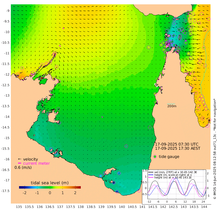 34cm/s 117T +3cm/s rms + 7cm/s -42T. ARA-GOC87 57m 25cm/s 157T +3cm/s rms + 2cm/s -2T. ARA-GOC87 60m 27cm/s 116T +2cm/s rms + 3cm/s 61T. ARA-GOC87 47m 12cm Daru 28cm Bobo Island 87cm Meer Island Barge 77cm Bramble Cay 47cm Unnamed Cay 49cm Pearce Cay 60cm Stephens Island 54cm Merrie England Shoals 18cm Mutacomal Reef 69cm Darnley Island Barge 89cm East Cay 43cm Yorke Island Barge 29cm Rennel Island 31cm Aureed Island 2cm Dungeness Reef -42cm Zagai Island -43cm Yam Island -64cm Dauan Island -54cm Saibai Island -75cm Phipi Reef -47cm Warrior Reef - West -50cm Mabuiag Island Barge 33cm Half Way Island 1cm Coconut Island 19cm Dugong Islet -22cm Poll Island -16cm Kirkcaldie Reef -59cm Suarji Island -18cm Sue Islet 24cm Hawkesbury Island -39cm Alert Patches -36cm Twin Island -2cm Badu Island -54cm St Pauls (Moa Island) -2cm Kubin (Moa Island) -34cm Ince Point -25cm Thursday Island -30cm Nardana Patches -9cm Turtle Head -7cm Round Island 24cm Goods Island 37cm Booby Island 27cm White Rocks Area 47cm Carpentaria -39cm Papou Point 36cm Bampfield Head 25cm Crab Island 31cm Red Wallis Island 12cm Packe Island 7cm Harrington Reef 18cm Herald Camp -30cm Sharp Point -6cm Red Island Point -29cm Possession Island -31cm Alpha Rock -18cm Frederick Point 11cm Wyborn Reef Light 1cm Tetley Island 65cm Triangle Reef 27cm Turtle Head Island 78cm Maclennan Cay 88cm Raine Island 47cm Mcsweeny Reef 56cm Collette Reef 75cm Shadwell Reef 66cm Hannibal Island 80cm Round Point 36cm Vrilya Point 78cm Cape Grenville 79cm Hicks Island 93cm Sir Charles Hardy Island 23cm Harvey Island 95cm Kay Reef 91cm Rocky Island 100cm Chapman Island 97cm Ham Reef 94cm Jubilee Reef 79cm Night Island 97cm Unnamed Reef No. 3 96cm Morris Island 91cm 1st 3 Mile Opening 95cm Creech Reef 92cm Fife Island 123cm Eden Reef 102cm Stanley Island 109cm Normanby River 70cm Yabooma Island 79cm Hutchison River 62cm Elcho Island 50cm North West Crocodile Island 81cm Cape Wessel 70cm Stevens Island 95cm Guluwuru Island 70cm Hopeful Bay 72cm Auster Point 79cm Two Island Bay 105cm Cadell Strait 205cm Mallison Island 71cm Melville Bay (Gove Harbour) 82cm Truant Island 47cm Cape Arnhem 7cm Cape Grey -17cm Hawk Island -59cm Milner Bay (Groote Eylandt) -65cm Cape Beatrice -105cm West Island -107cm Centre Island -111cm Mornington Island -105cm West Wellesley Islands -122cm Bountiful Island -170cm Albert River Mouth -178cm Sweers Island -168cm Karumba -60cm Nassau River Offshore -15cm Christmas Creek 24cm Archer River 33cm Boyd Point 34cm Weipa (Humbug Point) 28cm Pennefather River 32cm Cullen Point