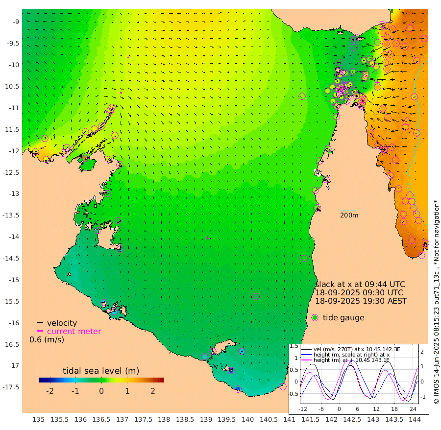 22cm/s 123T +3cm/s rms + 7cm/s -42T. ARA-GOC87 57m 32cm/s 164T +3cm/s rms + 2cm/s -2T. ARA-GOC87 60m 13cm/s 132T +2cm/s rms + 3cm/s 61T. ARA-GOC87 47m 110cm Daru 123cm Bobo Island 132cm Meer Island Barge 148cm Bramble Cay 140cm Unnamed Cay 144cm Pearce Cay 147cm Stephens Island 151cm Merrie England Shoals 124cm Mutacomal Reef 141cm Darnley Island Barge 146cm East Cay 125cm Yorke Island Barge 127cm Rennel Island 119cm Aureed Island 95cm Dungeness Reef 26cm Zagai Island 35cm Yam Island -29cm Dauan Island -26cm Saibai Island -24cm Phipi Reef 26cm Warrior Reef - West -13cm Mabuiag Island Barge 129cm Half Way Island 96cm Coconut Island 120cm Dugong Islet 69cm Poll Island 79cm Kirkcaldie Reef 27cm Suarji Island 62cm Sue Islet 53cm Hawkesbury Island 42cm Alert Patches 47cm Twin Island 20cm Badu Island 24cm St Pauls (Moa Island) 39cm Kubin (Moa Island) 30cm Ince Point 30cm Thursday Island 26cm Nardana Patches 36cm Turtle Head 27cm Round Island 47cm Goods Island 44cm Booby Island 48cm White Rocks Area 37cm Carpentaria 28cm Papou Point 46cm Bampfield Head 26cm Crab Island 46cm Red Wallis Island 51cm Packe Island 120cm Harrington Reef 41cm Herald Camp -9cm Sharp Point 34cm Red Island Point 30cm Possession Island 50cm Alpha Rock 77cm Frederick Point 114cm Wyborn Reef Light 102cm Tetley Island 112cm Triangle Reef 133cm Turtle Head Island 128cm Maclennan Cay 117cm Raine Island 134cm Mcsweeny Reef 132cm Collette Reef 121cm Shadwell Reef 148cm Hannibal Island 157cm Round Point 32cm Vrilya Point 146cm Cape Grenville 138cm Hicks Island 146cm Sir Charles Hardy Island 44cm Harvey Island 150cm Kay Reef 131cm Rocky Island 132cm Chapman Island 127cm Ham Reef 129cm Jubilee Reef 118cm Night Island 131cm Unnamed Reef No. 3 138cm Morris Island 123cm 1st 3 Mile Opening 133cm Creech Reef 139cm Fife Island 160cm Eden Reef 145cm Stanley Island 162cm Normanby River 51cm Yabooma Island 58cm Hutchison River 37cm Elcho Island 30cm North West Crocodile Island 61cm Cape Wessel 51cm Stevens Island 72cm Guluwuru Island 47cm Hopeful Bay 53cm Auster Point 58cm Two Island Bay 79cm Cadell Strait 158cm Mallison Island 54cm Melville Bay (Gove Harbour) 63cm Truant Island 33cm Cape Arnhem 0cm Cape Grey -18cm Hawk Island -63cm Milner Bay (Groote Eylandt) -60cm Cape Beatrice -91cm West Island -99cm Centre Island -90cm Mornington Island -82cm West Wellesley Islands -102cm Bountiful Island -163cm Albert River Mouth -172cm Sweers Island -153cm Karumba -35cm Nassau River Offshore 6cm Christmas Creek 30cm Archer River 36cm Boyd Point 35cm Weipa (Humbug Point) 27cm Pennefather River 28cm Cullen Point