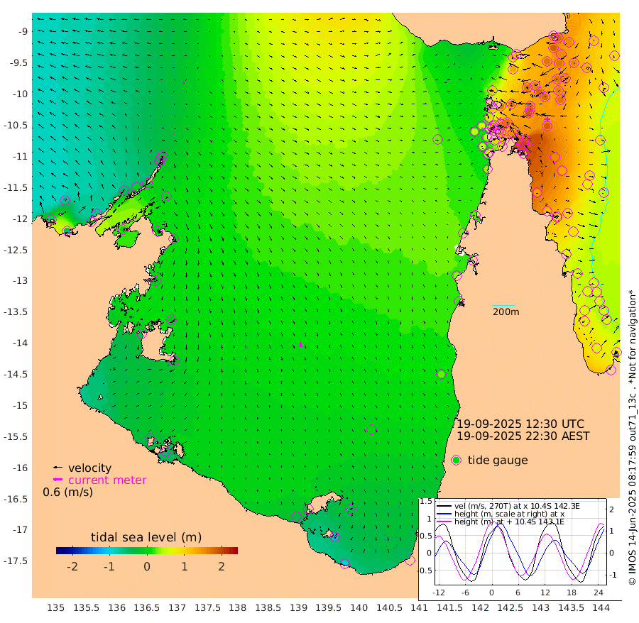 6cm/s -135T +3cm/s rms + 7cm/s -42T. ARA-GOC87 57m 34cm/s 169T +3cm/s rms + 2cm/s -2T. ARA-GOC87 60m 15cm/s -101T +2cm/s rms + 3cm/s 61T. ARA-GOC87 47m 179cm Daru 173cm Bobo Island 83cm Meer Island Barge 119cm Bramble Cay 157cm Unnamed Cay 171cm Pearce Cay 151cm Stephens Island 155cm Merrie England Shoals 180cm Mutacomal Reef 133cm Darnley Island Barge 96cm East Cay 154cm Yorke Island Barge 170cm Rennel Island 165cm Aureed Island 175cm Dungeness Reef 155cm Zagai Island 166cm Yam Island 124cm Dauan Island 111cm Saibai Island 131cm Phipi Reef 169cm Warrior Reef - West 107cm Mabuiag Island Barge 170cm Half Way Island 176cm Coconut Island 184cm Dugong Islet 176cm Poll Island 180cm Kirkcaldie Reef 169cm Suarji Island 164cm Sue Islet 93cm Hawkesbury Island 164cm Alert Patches 170cm Twin Island 85cm Badu Island 170cm St Pauls (Moa Island) 112cm Kubin (Moa Island) 142cm Ince Point 128cm Thursday Island 130cm Nardana Patches 110cm Turtle Head 85cm Round Island 76cm Goods Island 51cm Booby Island 62cm White Rocks Area 29cm Carpentaria 147cm Papou Point 49cm Bampfield Head 37cm Crab Island 64cm Red Wallis Island 104cm Packe Island 200cm Harrington Reef 75cm Herald Camp 47cm Sharp Point 100cm Red Island Point 126cm Possession Island 157cm Alpha Rock 183cm Frederick Point 182cm Wyborn Reef Light 183cm Tetley Island 90cm Triangle Reef 192cm Turtle Head Island 91cm Maclennan Cay 51cm Raine Island 151cm Mcsweeny Reef 131cm Collette Reef 82cm Shadwell Reef 139cm Hannibal Island 126cm Round Point 30cm Vrilya Point 109cm Cape Grenville 100cm Hicks Island 98cm Sir Charles Hardy Island 35cm Harvey Island 86cm Kay Reef 67cm Rocky Island 55cm Chapman Island 54cm Ham Reef 64cm Jubilee Reef 67cm Night Island 59cm Unnamed Reef No. 3 70cm Morris Island 57cm 1st 3 Mile Opening 66cm Creech Reef 78cm Fife Island 64cm Eden Reef 68cm Stanley Island 81cm Normanby River -60cm Yabooma Island -54cm Hutchison River -67cm Elcho Island -61cm North West Crocodile Island -23cm Cape Wessel -49cm Stevens Island -2cm Guluwuru Island -58cm Hopeful Bay -35cm Auster Point -29cm Two Island Bay -23cm Cadell Strait 6cm Mallison Island -8cm Melville Bay (Gove Harbour) -6cm Truant Island -5cm Cape Arnhem -16cm Cape Grey -19cm Hawk Island -51cm Milner Bay (Groote Eylandt) -37cm Cape Beatrice -41cm West Island -51cm Centre Island -31cm Mornington Island -30cm West Wellesley Islands -50cm Bountiful Island -98cm Albert River Mouth -113cm Sweers Island -78cm Karumba 6cm Nassau River Offshore 29cm Christmas Creek 22cm Archer River 33cm Boyd Point 23cm Weipa (Humbug Point) 24cm Pennefather River 28cm Cullen Point