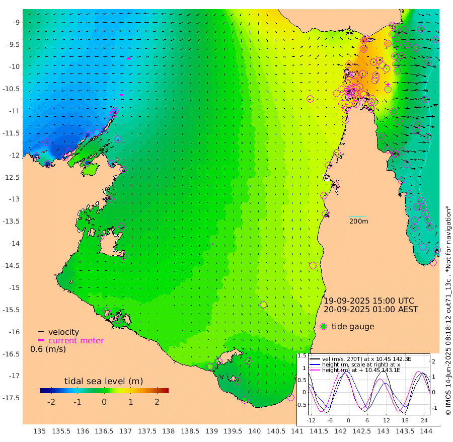 30cm/s -90T +3cm/s rms + 7cm/s -42T. ARA-GOC87 57m 24cm/s 180T +3cm/s rms + 2cm/s -2T. ARA-GOC87 60m 38cm/s -94T +2cm/s rms + 3cm/s 61T. ARA-GOC87 47m 37cm Daru 15cm Bobo Island -49cm Meer Island Barge -44cm Bramble Cay -9cm Unnamed Cay -1cm Pearce Cay -19cm Stephens Island -22cm Merrie England Shoals 23cm Mutacomal Reef -22cm Darnley Island Barge -55cm East Cay 8cm Yorke Island Barge 15cm Rennel Island 17cm Aureed Island 56cm Dungeness Reef 106cm Zagai Island 112cm Yam Island 165cm Dauan Island 149cm Saibai Island 157cm Phipi Reef 126cm Warrior Reef - West 133cm Mabuiag Island Barge 17cm Half Way Island 47cm Coconut Island 39cm Dugong Islet 81cm Poll Island 80cm Kirkcaldie Reef 116cm Suarji Island 84cm Sue Islet 103cm Hawkesbury Island 115cm Alert Patches 110cm Twin Island 115cm Badu Island 134cm St Pauls (Moa Island) 108cm Kubin (Moa Island) 120cm Ince Point 117cm Thursday Island 120cm Nardana Patches 110cm Turtle Head 93cm Round Island 89cm Goods Island 84cm Booby Island 74cm White Rocks Area 64cm Carpentaria 108cm Papou Point 62cm Bampfield Head 78cm Crab Island 87cm Red Wallis Island 99cm Packe Island 43cm Harrington Reef 96cm Herald Camp 50cm Sharp Point 99cm Red Island Point 98cm Possession Island 89cm Alpha Rock 82cm Frederick Point 31cm Wyborn Reef Light 46cm Tetley Island -23cm Triangle Reef 28cm Turtle Head Island -37cm Maclennan Cay -57cm Raine Island -6cm Mcsweeny Reef -19cm Collette Reef -39cm Shadwell Reef -30cm Hannibal Island -48cm Round Point 72cm Vrilya Point -45cm Cape Grenville -45cm Hicks Island -45cm Sir Charles Hardy Island -12cm Harvey Island -65cm Kay Reef -59cm Rocky Island -68cm Chapman Island -61cm Ham Reef -57cm Jubilee Reef -48cm Night Island -62cm Unnamed Reef No. 3 -64cm Morris Island -57cm 1st 3 Mile Opening -58cm Creech Reef -62cm Fife Island -86cm Eden Reef -69cm Stanley Island -81cm Normanby River -163cm Yabooma Island -176cm Hutchison River -159cm Elcho Island -144cm North West Crocodile Island -130cm Cape Wessel -160cm Stevens Island -112cm Guluwuru Island -156cm Hopeful Bay -136cm Auster Point -131cm Two Island Bay -152cm Cadell Strait -164cm Mallison Island -104cm Melville Bay (Gove Harbour) -111cm Truant Island -69cm Cape Arnhem -48cm Cape Grey -36cm Hawk Island -30cm Milner Bay (Groote Eylandt) -12cm Cape Beatrice 16cm West Island 14cm Centre Island 32cm Mornington Island 25cm West Wellesley Islands 18cm Bountiful Island 10cm Albert River Mouth -11cm Sweers Island 28cm Karumba 47cm Nassau River Offshore 55cm Christmas Creek 43cm Archer River 52cm Boyd Point 48cm Weipa (Humbug Point) 53cm Pennefather River 67cm Cullen Point