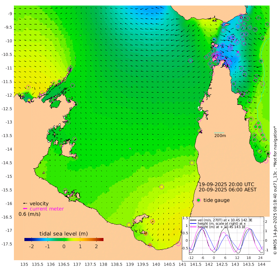 6cm/s -53T +3cm/s rms + 7cm/s -42T. ARA-GOC87 57m 16cm/s -64T +3cm/s rms + 2cm/s -2T. ARA-GOC87 60m 5cm/s 9T +2cm/s rms + 3cm/s 61T. ARA-GOC87 47m -95cm Daru -86cm Bobo Island -3cm Meer Island Barge -21cm Bramble Cay -63cm Unnamed Cay -69cm Pearce Cay -53cm Stephens Island -52cm Merrie England Shoals -91cm Mutacomal Reef -44cm Darnley Island Barge -2cm East Cay -72cm Yorke Island Barge -78cm Rennel Island -81cm Aureed Island -100cm Dungeness Reef -128cm Zagai Island -132cm Yam Island -117cm Dauan Island -115cm Saibai Island -102cm Phipi Reef -127cm Warrior Reef - West -114cm Mabuiag Island Barge -82cm Half Way Island -105cm Coconut Island -100cm Dugong Islet -122cm Poll Island -116cm Kirkcaldie Reef -140cm Suarji Island -120cm Sue Islet -75cm Hawkesbury Island -128cm Alert Patches -135cm Twin Island -76cm Badu Island -149cm St Pauls (Moa Island) -97cm Kubin (Moa Island) -121cm Ince Point -112cm Thursday Island -115cm Nardana Patches -85cm Turtle Head -84cm Round Island -57cm Goods Island -48cm Booby Island -52cm White Rocks Area -61cm Carpentaria -128cm Papou Point -69cm Bampfield Head -32cm Crab Island -54cm Red Wallis Island -78cm Packe Island -116cm Harrington Reef -73cm Herald Camp -46cm Sharp Point -72cm Red Island Point -111cm Possession Island -127cm Alpha Rock -127cm Frederick Point -107cm Wyborn Reef Light -117cm Tetley Island -20cm Triangle Reef -112cm Turtle Head Island -13cm Maclennan Cay 23cm Raine Island -61cm Mcsweeny Reef -42cm Collette Reef -4cm Shadwell Reef -40cm Hannibal Island -22cm Round Point -30cm Vrilya Point -17cm Cape Grenville -12cm Hicks Island -11cm Sir Charles Hardy Island -7cm Harvey Island 7cm Kay Reef 15cm Rocky Island 27cm Chapman Island 21cm Ham Reef 15cm Jubilee Reef 8cm Night Island 23cm Unnamed Reef No. 3 16cm Morris Island 16cm 1st 3 Mile Opening 15cm Creech Reef 15cm Fife Island 34cm Eden Reef 21cm Stanley Island 19cm Normanby River 51cm Yabooma Island 55cm Hutchison River 58cm Elcho Island 55cm North West Crocodile Island 2cm Cape Wessel 37cm Stevens Island -2cm Guluwuru Island 50cm Hopeful Bay 17cm Auster Point 8cm Two Island Bay 34cm Cadell Strait 18cm Mallison Island 3cm Melville Bay (Gove Harbour) -6cm Truant Island -3cm Cape Arnhem 7cm Cape Grey 16cm Hawk Island 24cm Milner Bay (Groote Eylandt) 32cm Cape Beatrice 26cm West Island 31cm Centre Island 78cm Mornington Island 79cm West Wellesley Islands 102cm Bountiful Island 151cm Albert River Mouth 149cm Sweers Island 142cm Karumba 70cm Nassau River Offshore 46cm Christmas Creek 31cm Archer River -2cm Boyd Point 15cm Weipa (Humbug Point) -3cm Pennefather River -26cm Cullen Point