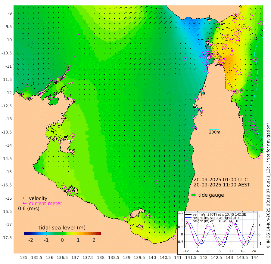 19cm/s 54T +3cm/s rms + 7cm/s -42T. ARA-GOC87 57m 25cm/s 7T +3cm/s rms + 2cm/s -2T. ARA-GOC87 60m 23cm/s 56T +2cm/s rms + 3cm/s 61T. ARA-GOC87 47m 96cm Daru 100cm Bobo Island 19cm Meer Island Barge 44cm Bramble Cay 74cm Unnamed Cay 83cm Pearce Cay 71cm Stephens Island 73cm Merrie England Shoals 91cm Mutacomal Reef 59cm Darnley Island Barge 24cm East Cay 77cm Yorke Island Barge 83cm Rennel Island 91cm Aureed Island 87cm Dungeness Reef 88cm Zagai Island 77cm Yam Island 17cm Dauan Island 20cm Saibai Island 39cm Phipi Reef 77cm Warrior Reef - West 7cm Mabuiag Island Barge 84cm Half Way Island 99cm Coconut Island 88cm Dugong Islet 89cm Poll Island 86cm Kirkcaldie Reef 92cm Suarji Island 79cm Sue Islet -102cm Hawkesbury Island 57cm Alert Patches 68cm Twin Island -71cm Badu Island 70cm St Pauls (Moa Island) -42cm Kubin (Moa Island) 26cm Ince Point 2cm Thursday Island 8cm Nardana Patches -36cm Turtle Head -51cm Round Island -93cm Goods Island -122cm Booby Island -99cm White Rocks Area -97cm Carpentaria 59cm Papou Point -99cm Bampfield Head -102cm Crab Island -109cm Red Wallis Island -64cm Packe Island 112cm Harrington Reef -99cm Herald Camp 27cm Sharp Point -33cm Red Island Point 27cm Possession Island 68cm Alpha Rock 86cm Frederick Point 98cm Wyborn Reef Light 97cm Tetley Island 20cm Triangle Reef 98cm Turtle Head Island 19cm Maclennan Cay -7cm Raine Island 72cm Mcsweeny Reef 57cm Collette Reef 16cm Shadwell Reef 63cm Hannibal Island 44cm Round Point -103cm Vrilya Point 34cm Cape Grenville 30cm Hicks Island 13cm Sir Charles Hardy Island 12cm Harvey Island 13cm Kay Reef 1cm Rocky Island -12cm Chapman Island -13cm Ham Reef -2cm Jubilee Reef 7cm Night Island -9cm Unnamed Reef No. 3 3cm Morris Island -4cm 1st 3 Mile Opening -1cm Creech Reef 11cm Fife Island -9cm Eden Reef -1cm Stanley Island 8cm Normanby River -33cm Yabooma Island -21cm Hutchison River -24cm Elcho Island -26cm North West Crocodile Island 16cm Cape Wessel -1cm Stevens Island 32cm Guluwuru Island -16cm Hopeful Bay 8cm Auster Point 1cm Two Island Bay -1cm Cadell Strait 25cm Mallison Island 29cm Melville Bay (Gove Harbour) 33cm Truant Island 32cm Cape Arnhem 40cm Cape Grey 39cm Hawk Island 58cm Milner Bay (Groote Eylandt) 48cm Cape Beatrice 62cm West Island 64cm Centre Island 48cm Mornington Island 46cm West Wellesley Islands 38cm Bountiful Island 51cm Albert River Mouth 74cm Sweers Island 44cm Karumba -3cm Nassau River Offshore -37cm Christmas Creek -74cm Archer River -77cm Boyd Point -94cm Weipa (Humbug Point) -73cm Pennefather River -100cm Cullen Point