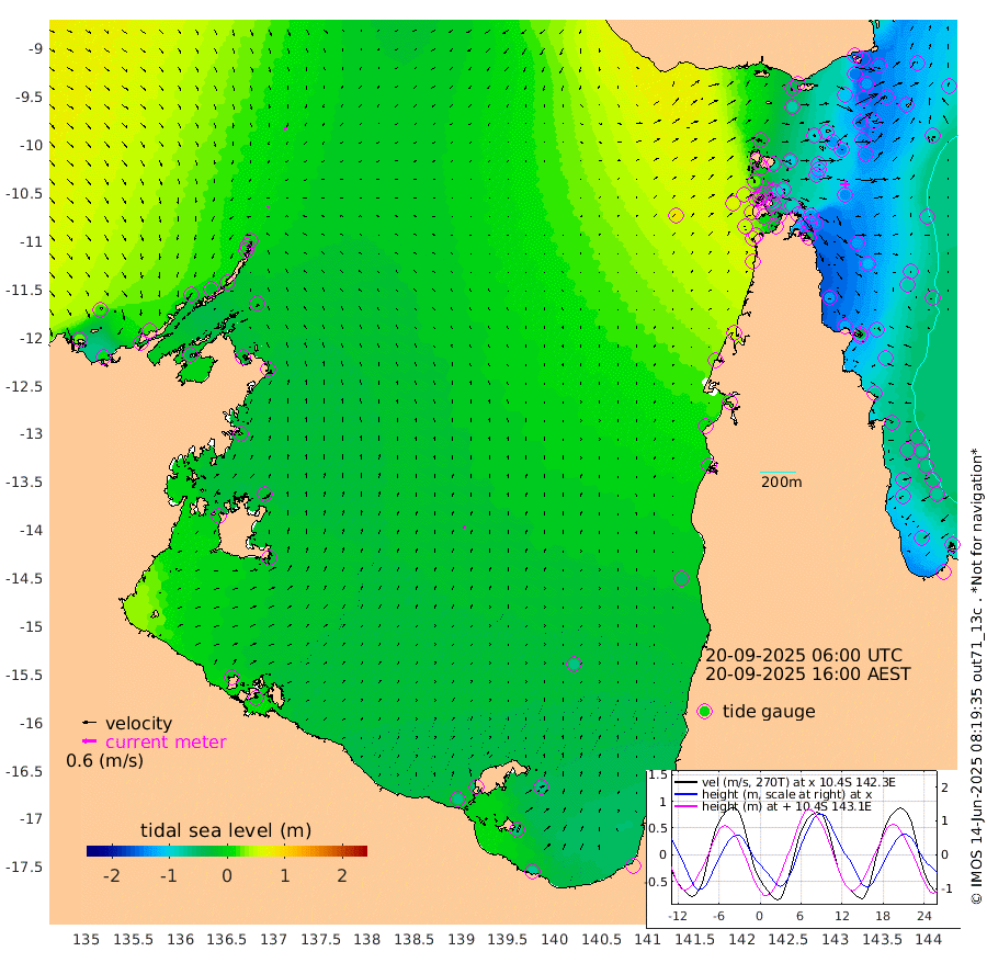 5cm/s -167T +3cm/s rms + 7cm/s -42T. ARA-GOC87 57m 15cm/s 24T +3cm/s rms + 2cm/s -2T. ARA-GOC87 60m 10cm/s 167T +2cm/s rms + 3cm/s 61T. ARA-GOC87 47m -147cm Daru -152cm Bobo Island -83cm Meer Island Barge -117cm Bramble Cay -135cm Unnamed Cay -153cm Pearce Cay -137cm Stephens Island -141cm Merrie England Shoals -147cm Mutacomal Reef -120cm Darnley Island Barge -99cm East Cay -129cm Yorke Island Barge -143cm Rennel Island -141cm Aureed Island -134cm Dungeness Reef -98cm Zagai Island -97cm Yam Island -44cm Dauan Island -33cm Saibai Island -75cm Phipi Reef -109cm Warrior Reef - West -17cm Mabuiag Island Barge -139cm Half Way Island -138cm Coconut Island -140cm Dugong Islet -120cm Poll Island -125cm Kirkcaldie Reef -100cm Suarji Island -104cm Sue Islet 30cm Hawkesbury Island -84cm Alert Patches -91cm Twin Island 19cm Badu Island -82cm St Pauls (Moa Island) -4cm Kubin (Moa Island) -52cm Ince Point -30cm Thursday Island -35cm Nardana Patches -15cm Turtle Head 18cm Round Island 29cm Goods Island 65cm Booby Island 46cm White Rocks Area 88cm Carpentaria -70cm Papou Point 75cm Bampfield Head 51cm Crab Island 49cm Red Wallis Island 1cm Packe Island -157cm Harrington Reef 47cm Herald Camp -24cm Sharp Point -20cm Red Island Point -44cm Possession Island -84cm Alpha Rock -119cm Frederick Point -139cm Wyborn Reef Light -133cm Tetley Island -79cm Triangle Reef -143cm Turtle Head Island -83cm Maclennan Cay -59cm Raine Island -131cm Mcsweeny Reef -119cm Collette Reef -79cm Shadwell Reef -131cm Hannibal Island -123cm Round Point 59cm Vrilya Point -104cm Cape Grenville -98cm Hicks Island -86cm Sir Charles Hardy Island -33cm Harvey Island -88cm Kay Reef -72cm Rocky Island -63cm Chapman Island -57cm Ham Reef -66cm Jubilee Reef -70cm Night Island -65cm Unnamed Reef No. 3 -76cm Morris Island -58cm 1st 3 Mile Opening -69cm Creech Reef -89cm Fife Island -78cm Eden Reef -74cm Stanley Island -91cm Normanby River 28cm Yabooma Island 8cm Hutchison River 22cm Elcho Island 18cm North West Crocodile Island 7cm Cape Wessel 10cm Stevens Island -21cm Guluwuru Island 17cm Hopeful Bay 11cm Auster Point 14cm Two Island Bay -19cm Cadell Strait -43cm Mallison Island -17cm Melville Bay (Gove Harbour) -13cm Truant Island -14cm Cape Arnhem -14cm Cape Grey -20cm Hawk Island -1cm Milner Bay (Groote Eylandt) -17cm Cape Beatrice -12cm West Island -7cm Centre Island -67cm Mornington Island -64cm West Wellesley Islands -62cm Bountiful Island -69cm Albert River Mouth -64cm Sweers Island -80cm Karumba -67cm Nassau River Offshore -49cm Christmas Creek -7cm Archer River 15cm Boyd Point 19cm Weipa (Humbug Point) 23cm Pennefather River 55cm Cullen Point