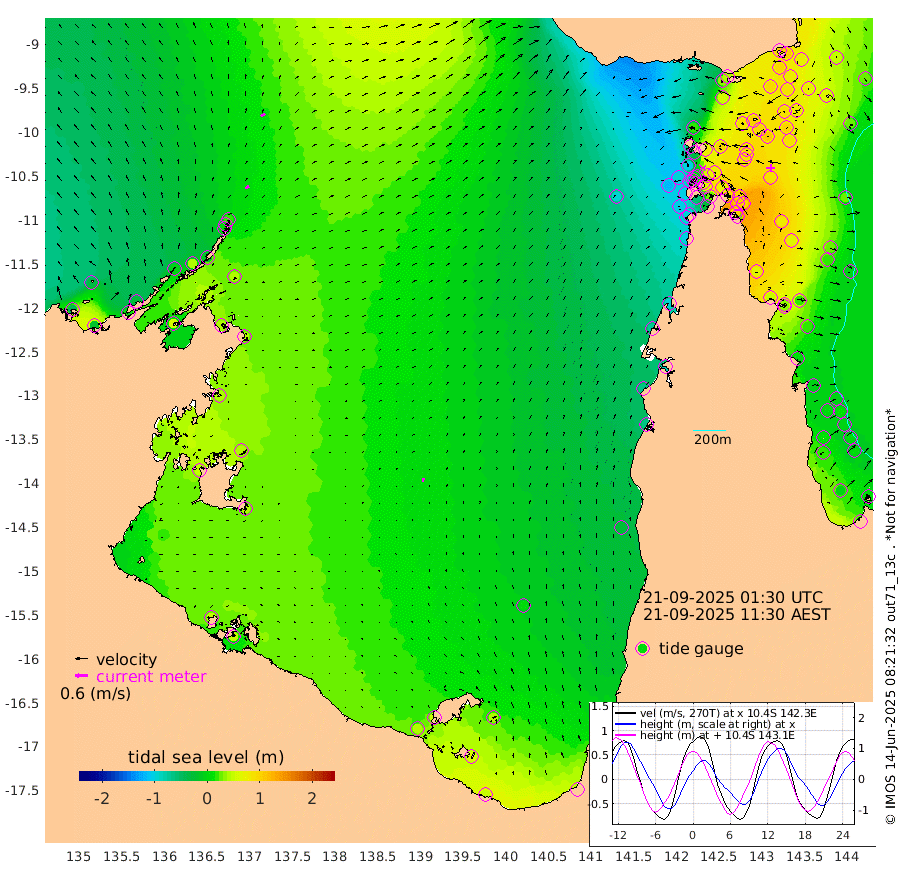 21cm/s 67T +3cm/s rms + 7cm/s -42T. ARA-GOC87 57m 19cm/s 9T +3cm/s rms + 2cm/s -2T. ARA-GOC87 60m 24cm/s 63T +2cm/s rms + 3cm/s 61T. ARA-GOC87 47m 101cm Daru 107cm Bobo Island 25cm Meer Island Barge 48cm Bramble Cay 76cm Unnamed Cay 89cm Pearce Cay 75cm Stephens Island 72cm Merrie England Shoals 92cm Mutacomal Reef 64cm Darnley Island Barge 29cm East Cay 82cm Yorke Island Barge 85cm Rennel Island 98cm Aureed Island 92cm Dungeness Reef 99cm Zagai Island 84cm Yam Island 37cm Dauan Island 39cm Saibai Island 56cm Phipi Reef 91cm Warrior Reef - West 16cm Mabuiag Island Barge 85cm Half Way Island 105cm Coconut Island 90cm Dugong Islet 94cm Poll Island 89cm Kirkcaldie Reef 99cm Suarji Island 85cm Sue Islet -98cm Hawkesbury Island 62cm Alert Patches 74cm Twin Island -59cm Badu Island 76cm St Pauls (Moa Island) -37cm Kubin (Moa Island) 31cm Ince Point 7cm Thursday Island 14cm Nardana Patches -29cm Turtle Head -50cm Round Island -86cm Goods Island -117cm Booby Island -97cm White Rocks Area -95cm Carpentaria 64cm Papou Point -98cm Bampfield Head -97cm Crab Island -104cm Red Wallis Island -58cm Packe Island 114cm Harrington Reef -98cm Herald Camp 29cm Sharp Point -27cm Red Island Point 30cm Possession Island 70cm Alpha Rock 90cm Frederick Point 100cm Wyborn Reef Light 99cm Tetley Island 27cm Triangle Reef 98cm Turtle Head Island 24cm Maclennan Cay -1cm Raine Island 75cm Mcsweeny Reef 61cm Collette Reef 21cm Shadwell Reef 66cm Hannibal Island 47cm Round Point -101cm Vrilya Point 36cm Cape Grenville 33cm Hicks Island 20cm Sir Charles Hardy Island 13cm Harvey Island 16cm Kay Reef 7cm Rocky Island -4cm Chapman Island -6cm Ham Reef 4cm Jubilee Reef 12cm Night Island -2cm Unnamed Reef No. 3 8cm Morris Island 1cm 1st 3 Mile Opening 5cm Creech Reef 17cm Fife Island -2cm Eden Reef 2cm Stanley Island 11cm Normanby River -41cm Yabooma Island -21cm Hutchison River -28cm Elcho Island -32cm North West Crocodile Island 18cm Cape Wessel -4cm Stevens Island 45cm Guluwuru Island -19cm Hopeful Bay 6cm Auster Point -2cm Two Island Bay 7cm Cadell Strait 55cm Mallison Island 38cm Melville Bay (Gove Harbour) 42cm Truant Island 40cm Cape Arnhem 43cm Cape Grey 39cm Hawk Island 50cm Milner Bay (Groote Eylandt) 41cm Cape Beatrice 49cm West Island 50cm Centre Island 46cm Mornington Island 43cm West Wellesley Islands 38cm Bountiful Island 47cm Albert River Mouth 66cm Sweers Island 40cm Karumba 2cm Nassau River Offshore -27cm Christmas Creek -63cm Archer River -67cm Boyd Point -84cm Weipa (Humbug Point) -68cm Pennefather River -96cm Cullen Point